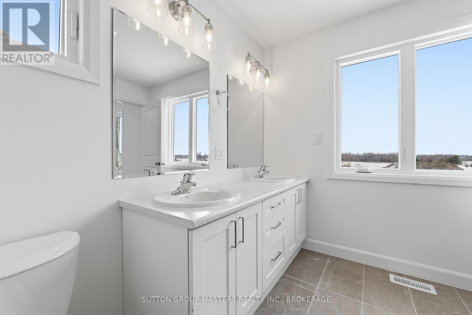 *Take Advantage of the 13% HST Rebate (Reflected in the listing price)* - Welcome to this gorgeous new listing located in Amherstview, Ontario. This "Barkley" model build on a 40 foot lot with double car garage is ready for occupancy and is perfect for those looking for a modernized and comfortable home. With a total square footage of 1,975, 3 bedrooms (with the option to make it a 4 bedroom) and 2.5 bathrooms, this home will be a must see and sure to please! Upon entering the main level you will find features throughout that include a Ceramic tile foyer, 9'flat ceilings, quartz kitchen countertops with soft close drawers and doors, a main floor powder room, an open concept living area, and a mudroom with an entrance to the garage. On the second level is where you will find 3 (or 4) generous sized bedrooms including the primary bedroom with a gorgeous ensuite bathroom and walk-in closet. The home features tiled flooring in all wet rooms and hardwood flooring on the main floor, hallways, living room, dining room, and kitchen with carpet on the stairs and the second floor, and separate entrance to the basement for an in-law potential. Paved driveway, sodded lots, and more. Do not miss out on your opportunity to own this stunning home! (id:64974)