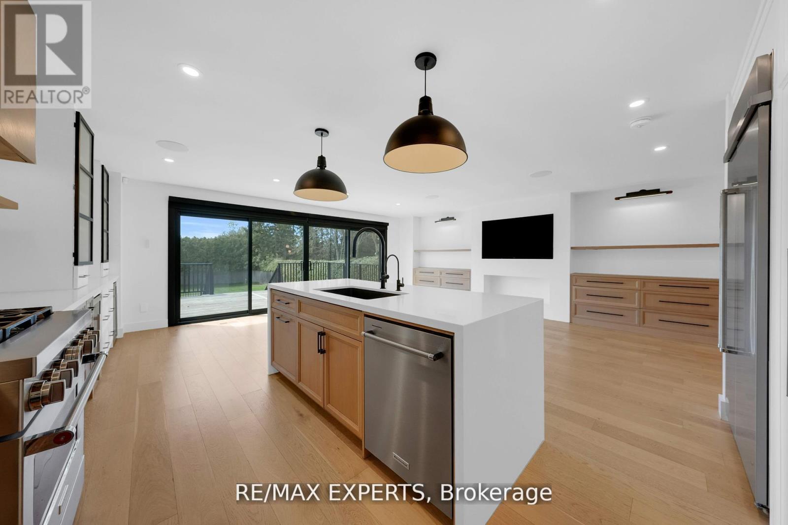 Step into a truly exceptional opportunity to own a fully renovated, custom-built home in the highly sought-after community of Thornton. Originally built in 1986, this impressive 4-bedroom split-level home has been completely transformed into a pristine, like-new residence that seamlessly blends sophistication, functionality, and exceptional craftsmanship. Meticulously rebuilt back to the studs by the award-winning Sandgate Construction team, every detail of this home has been thoughtfully upgraded to deliver the highest standards of quality, efficiency, and modern design. Luxury Living Spaces The heart of the home is a spectacular chef's kitchen featuring custom cabinetry, premium finishes, and a hidden walk-in pantry. A dramatic 16-foot sliding door leads to a spacious 14 x24 ft cedar deck built on helical piles with bespoke railings - perfect for entertaining or relaxing outdoors. Main living areas showcase beautiful solid wood flooring, while the bathrooms and laundry room feature modern tile with heated floors for added comfort. Bedrooms feature custom designer feature walls, and Cat5 wiring has been installed throughout the home for seamless connectivity. Private Outdoor Setting Significant investment has been made in professional landscaping, including new fencing, mature trees, and shrubs, creating a peaceful and private outdoor retreat. Future Expansion Opportunity Previously Approved building and plumbing permits for a 448 sq ft primary bedroom addition with ensuite, designed to open directly to the garden and filled with natural light - offering an incredible opportunity to further customize this remarkable home. Prime Location with Excellent Access. 4 minutes to Highway 400. 13 minutes to Barrie South GO Station (Mapleview) for train access to Toronto. Approximately 1 hour to Toronto This extraordinary home delivers the perfect blend of modern luxury, thoughtful design, and small-town charm - a rare opportunity! (id:64974)