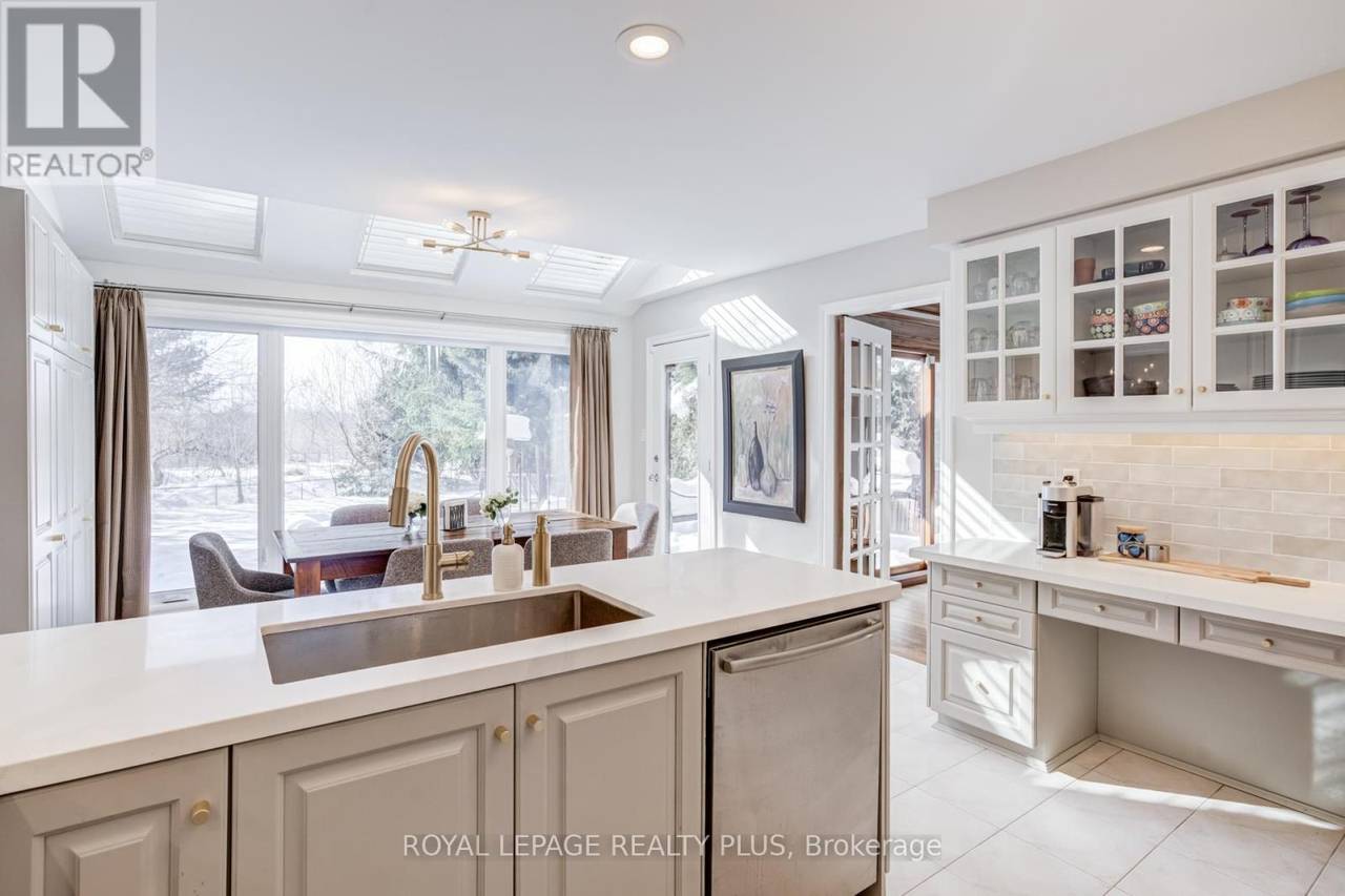 Elegant family home tucked away in quiet enclave adjacent to the Credit River and steps from Erindale Park. Backing onto large estate property, this home offers a cottage-like setting with privacy year round. Nestled away from main roads so that chirping birds form the soundtrack to outdoor relaxation. Approximately 4570 sq ft of finished living space including a fully finished basement. Flowing layout great for large-scale entertaining and mindful of modern family life with space for work from home, study and family fun. Large renovated kitchen boasts greenhouse breakfast area with skylights & walk out to interlock patio with gas bbq hook up and gas fire-pit to extend the outdoor season. Main floor family room has stone gas fireplace, walk out & picture perfect views of the yard and trees. Spectacular Primary bedroom retreat combined with sitting area/nursery offers peaceful views of the natural setting. Upgraded ensuite with skylight, double sinks, separate glass shower and soaker tub. Spacious walk-in closet plus large double closet. Three additional oversized bedrooms with plenty of closet space. Finished basement is bright with lots of above ground windows. 5th bedroom with sitting area and ensuite privileges ideal for nanny, grandparents or teen. Rec room with fireplace, wet bar with cantina and sunny games room round out the space. Meticulously maintained and upgraded with long list of recent improvements including mechanicals, roof, windows, ensuite, kitchen, fresh neutral paint throughout. This quiet pocket of homes is centrally located with 16 minute walk of UTM. Many good schools in the area; public and private, including Erindale Academy (ESL and University prep). Shopping opportunities and amenities of all types nearby. Easy access to Miss Transit, GO Train, 403 & QEW. Path under Dundas for safe and easy access to Erindale Park. (id:64974)