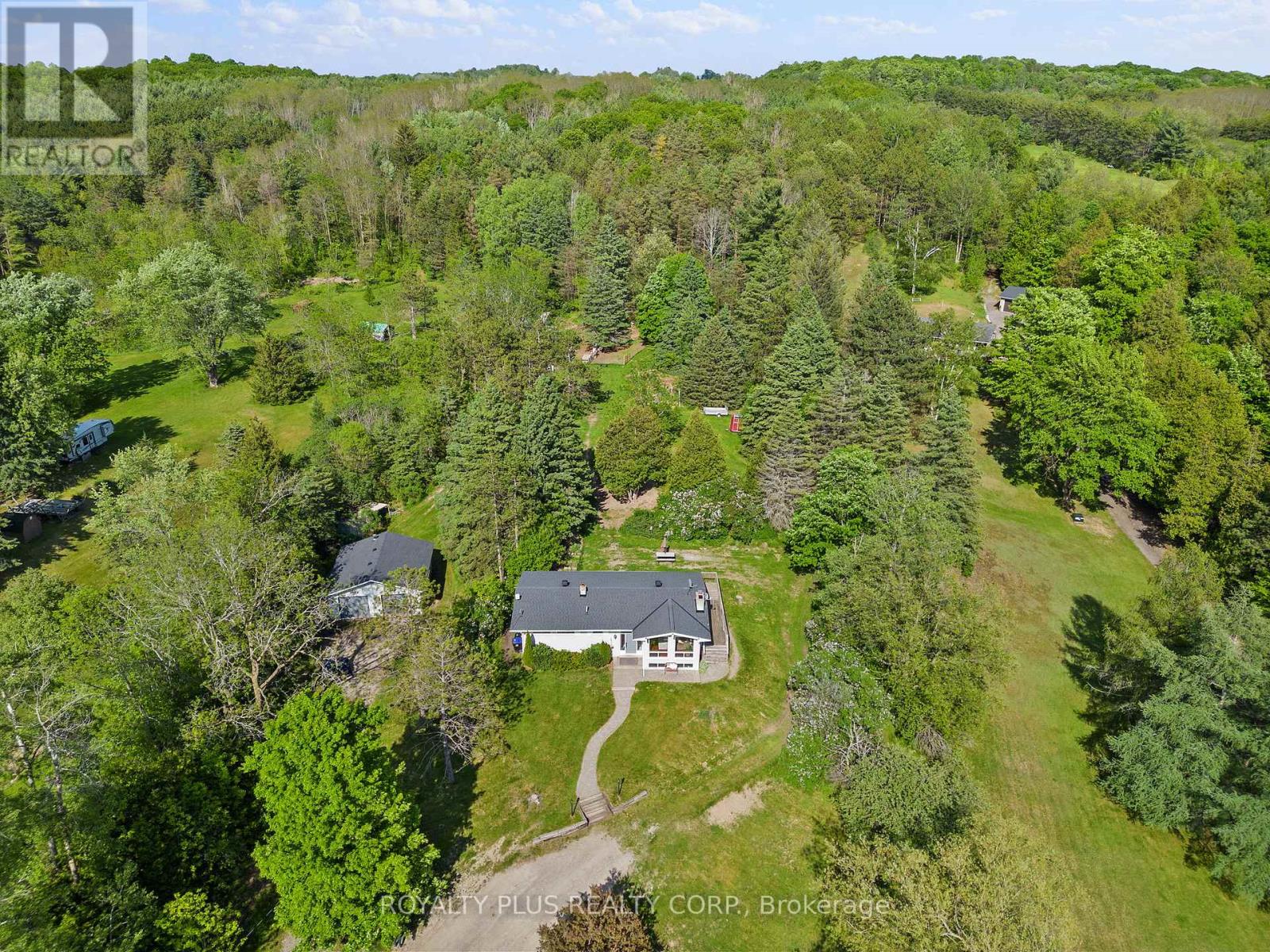Beautiful Raised Bungalow On Just Over 10 Acres Of Paradise Offering Tranquility, Rolling Hills & Stunning Views. Open-Concept Living Room & Kitchen With Southern Exposure, Natural Light & Walkout To Wraparound Deck. The Finished Bsmt Features A Spacious Rec Room With Fieldstone Fireplace. Oversized Detached Insulated 2-Car Garage With Wood Stove. Explore The Trail Ideal For Hiking, ATVs, Snowmobiling & Foraging, Plus A Spring-Fed Pond Naturally Stocked With Smallmouth Bass. Zoned Countryside & Oak Ridges Moraine With Forest Management Tax Credit. This Home Has Been Updated With New Windows (2020 & 2022), Kitchen Appliances (2020 & 2022), Redesigned Kitchen Cabinets (2021), UV & Reverse Osmosis Water Systems (2021), A/C (2021), Updated Bathroom & Vinyl Flooring (2021-2022), Fresh Paint (2022), Finished Basement With Insulation, Pot Lights & Vinyl Plank Flooring (2022), New Pressure Tank (2023), New Basement Bathroom (2024), New Septic (2024) & New Oil Tank (2025). Also Includes New Washer & Dryer (2020), Updated Electrical Panel (2020) & Wood Fireplace Damper (2022). Easy Commute To Hwys 50, 400 & 27 - 30 Mins To Barrie, 40 Mins To The Airport & 1 Hr To The GTA. (id:64974)