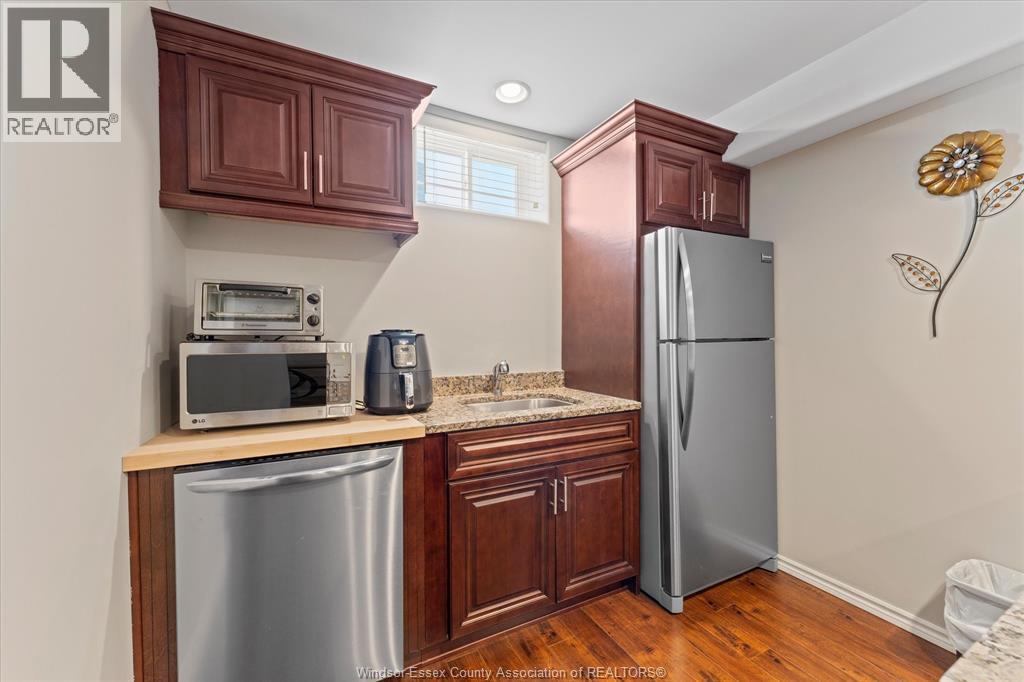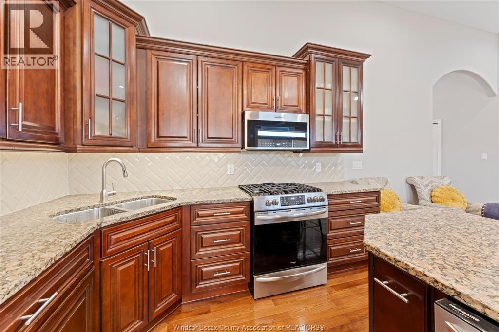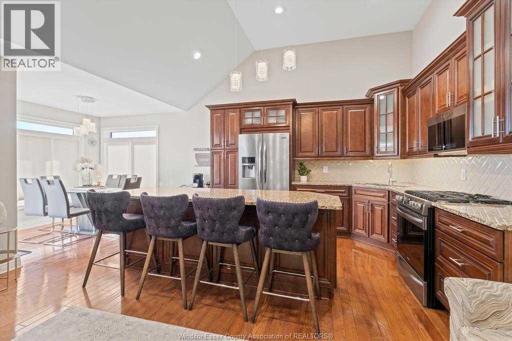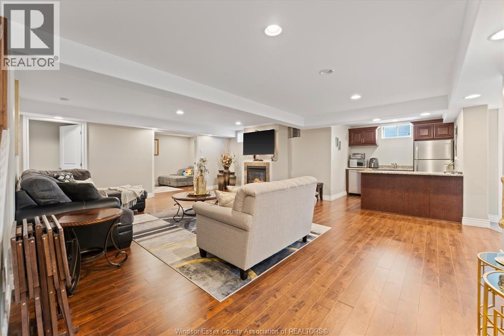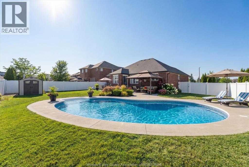 Location, Space, and versatility! Welcome to this beautiful brick ranch in a prime Lasalle location. This spacious open concept home features a welcoming foyer leading to a bright living room with fireplace and modern kitchen with a large island, perfect for entertaining. The main floor offers 2 bedrooms plus a primary bedroom with ensuite, den/office, an additional full bath, a half bath, & convenient main floor laundry. The fully finished basement provides exceptional living space with 3 bedrooms, an office, second kitchen, large family room with fire place, full bath, second laundry, storage & utility rooms, plus grade entrance to the backyard ideal for extended family or in law potential. Enjoy the fully fenced yard with heated inground pool on a large corner lot. All located steps to schools, St. Clair College, new Windsor crossing commercial development, US border & 401. (id:64974)