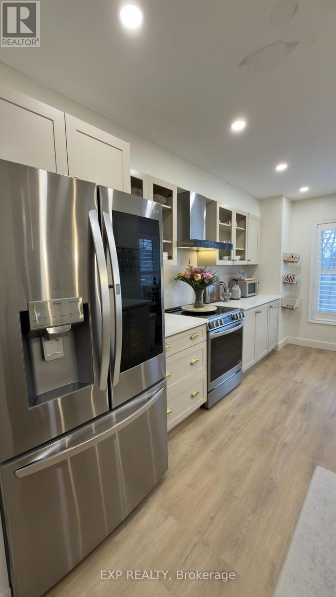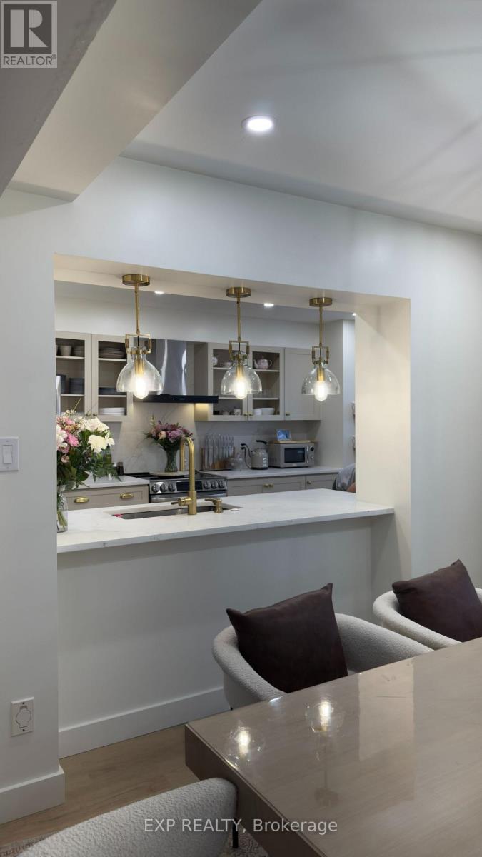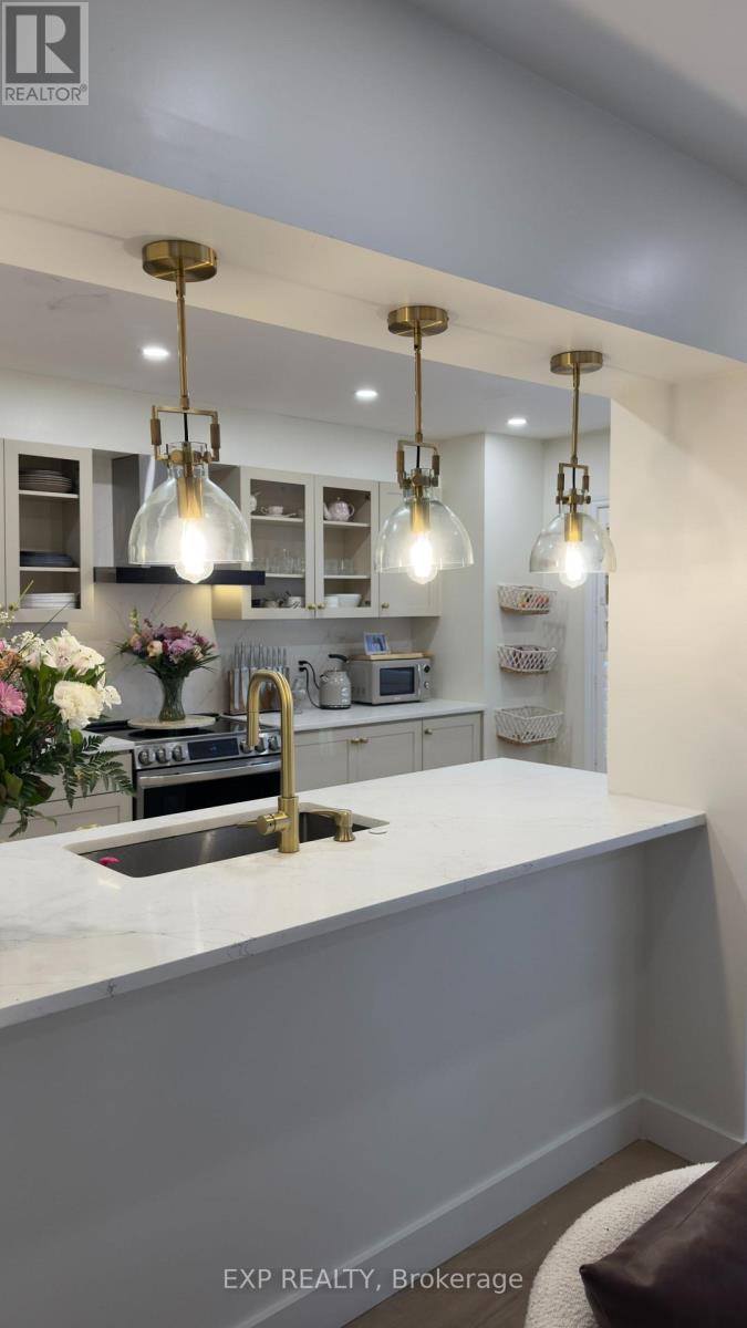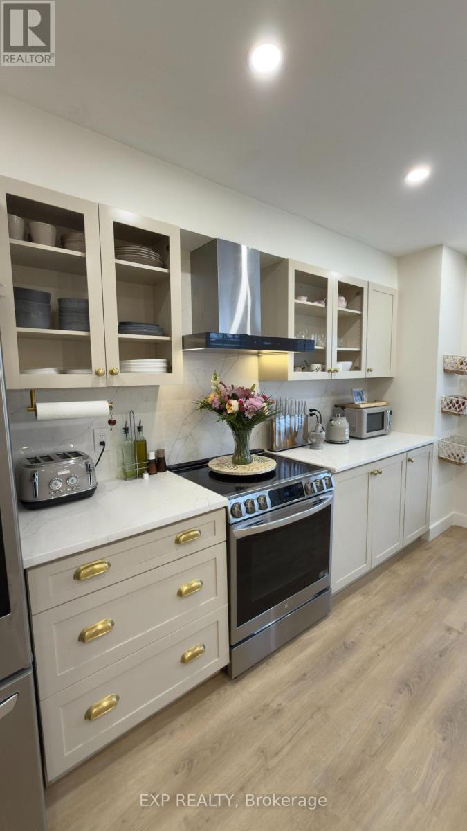 Welcome to this beautifully maintained 3-storey home, complete with a single-car garage and ideally situated close to transit, shopping, and everyday amenities.The main floor features newly installed tile flooring, including in the washroom and laundry room. The second and third floors have been upgraded with modern vinyl flooring, adding both style and durability throughout.The kitchen is a true highlight, offering ample cabinet space, stainless steel appliances, quartz countertops, and a stylish backsplash. All cabinetry has been professionally painted, creating a fresh, cohesive look that flows seamlessly into the dining and living areas-perfect for both everyday living and entertaining.Washrooms have been tastefully updated with new sinks, quartz countertops, and vinyl flooring. Pot lights have been installed throughout the home, including the staircase and garage, providing a bright and contemporary feel.Step outside to the large balcony, complete with an awning-an ideal space for relaxing or hosting guests while enjoying added privacy.Upstairs, you'll find three generously sized bedrooms along with a full bathroom. Perfect for first-time buyers or those looking to downsize, this home offers an exceptional blend of style, comfort, and convenience. (id:64974)