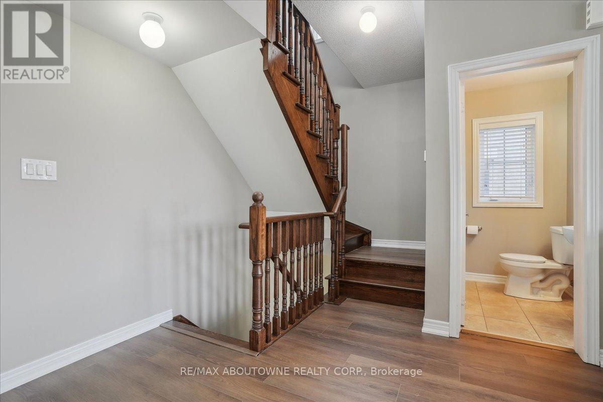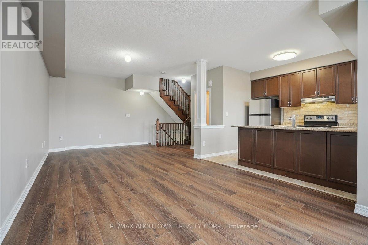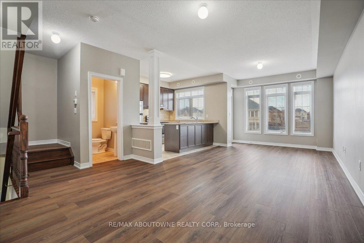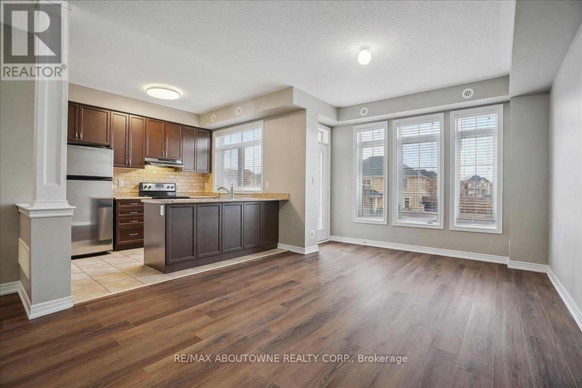 Fabulous Fernbrook end-unit, three-storey freehold townhome for rent in Oakville's desirable Westmount community! This family-friendly area is surrounded by parks and walking trails, perfect for outdoor living.The home features a modern stone and stucco facade and a single attached garage with inside entry. The sunlit second level offers a kitchen with stainless steel appliances, open to the great room and dining area with brand-new luxury vinyl flooring. A garden door leads to a private balcony overlooking the front yard.The third level includes two spacious bedrooms, a four-piece main bathroom, and a laundry closet with a new stacked washer and dryer. Neutral decor provides the perfect canvas for your personal style. Ideally located near schools, parks, shopping, a hospital, community center, public transit, highways, and all amenities, this home is ready to welcome you! (id:64974)