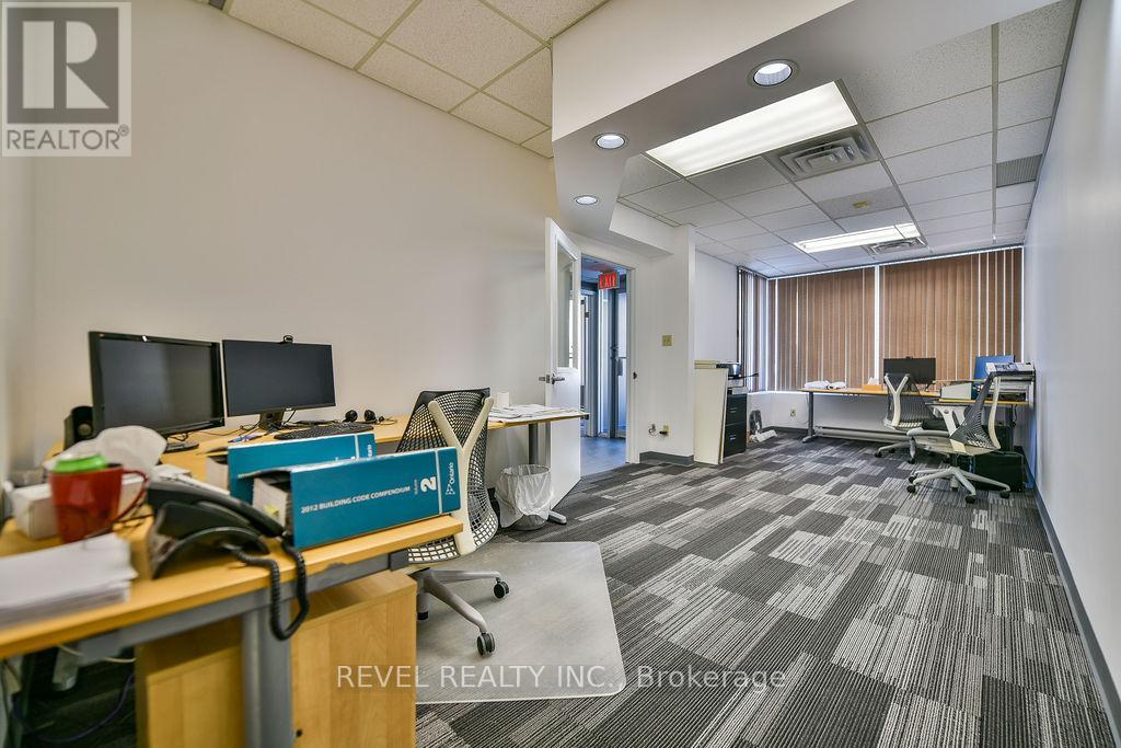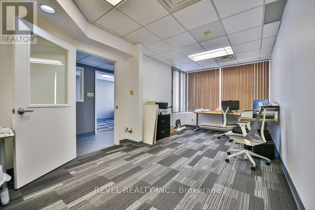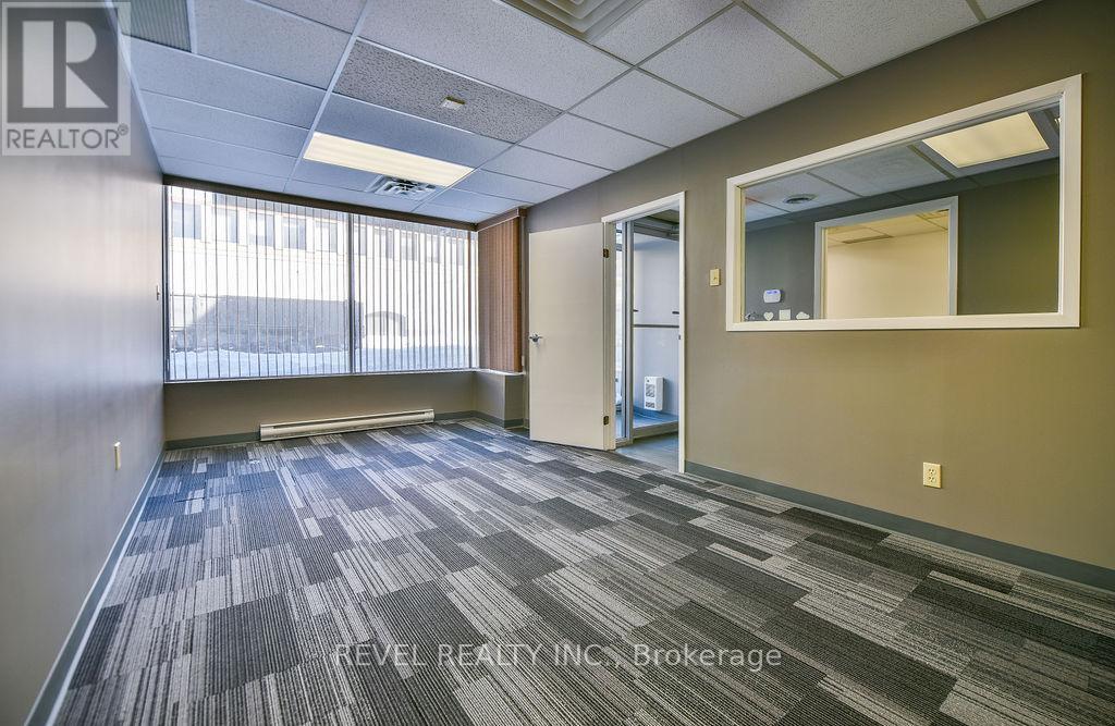 Offering 2,054 sq ft of versatile commercial space, this property features 5 private offices and an impressive 27' x 26' boardroom, ideal for meetings or shared use. The layout includes two 2-piece bathrooms, a convenient kitchenette, and a basement for additional storage accessed through the front right office, along with dedicated utility and furnace rooms and central air for year-round comfort. The front portion of the building, including all offices, has been fully renovated, providing a modern and professional setting. With incredible flexibility, this space presents a range of opportunities-lease individual offices with minimal updates, divide into left and right wings with a shared boardroom, or generate additional income by renting out the boardroom separately. Situated on a main artery with great visibility and offering two parking spaces off the alley, this is a must-see opportunity for investors or business owners alike. (id:64974)