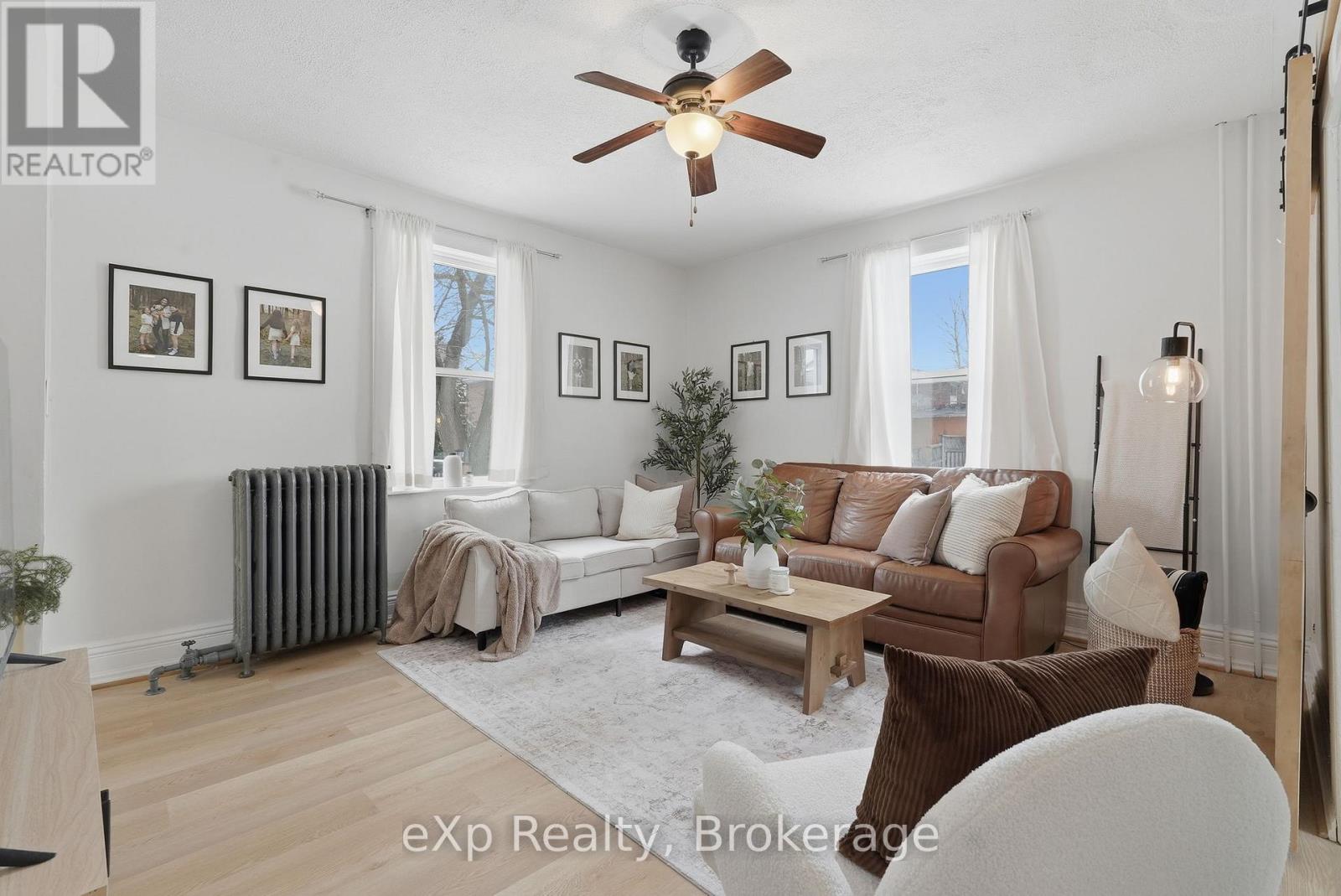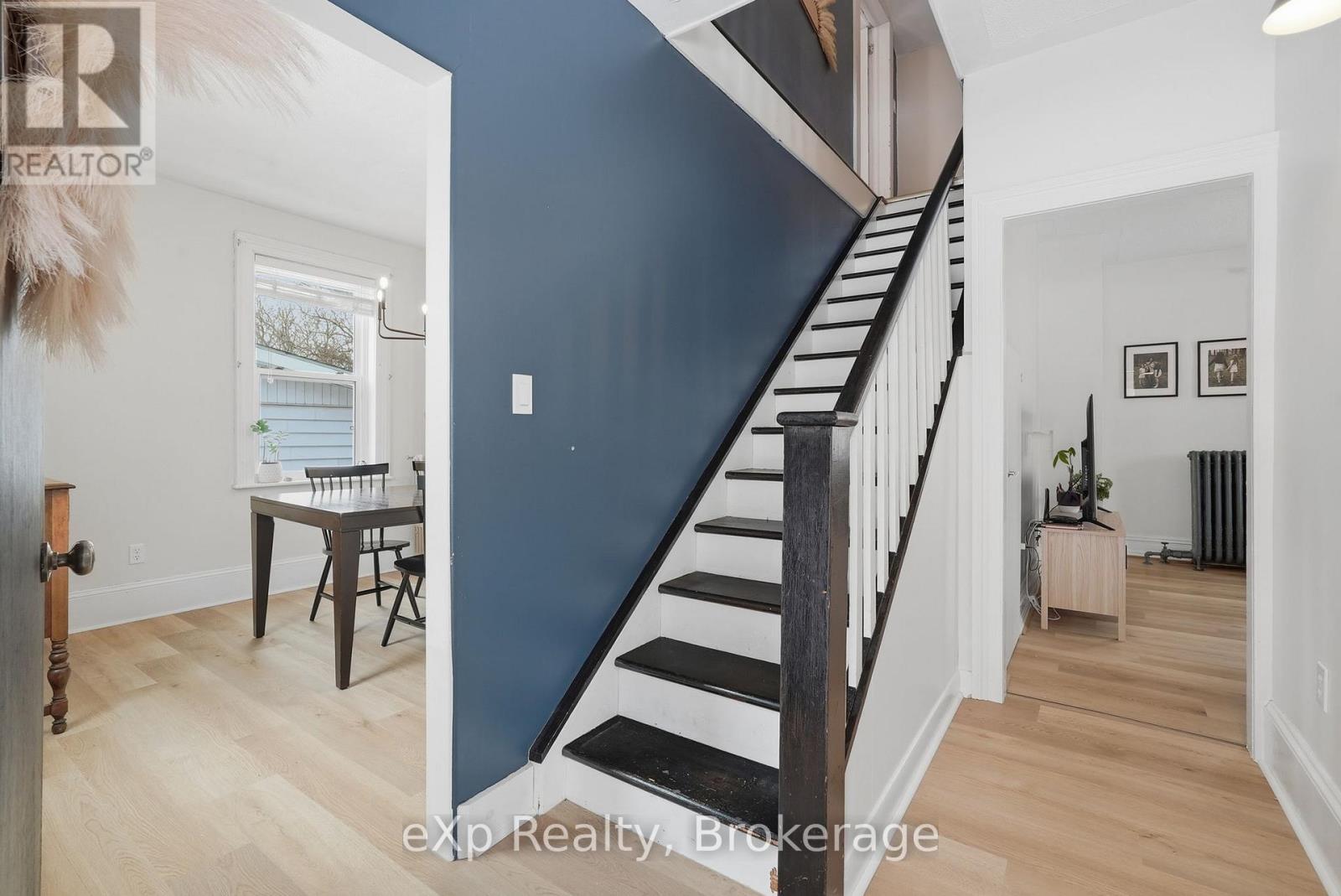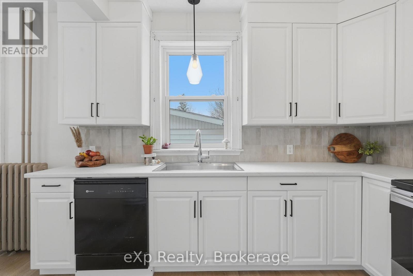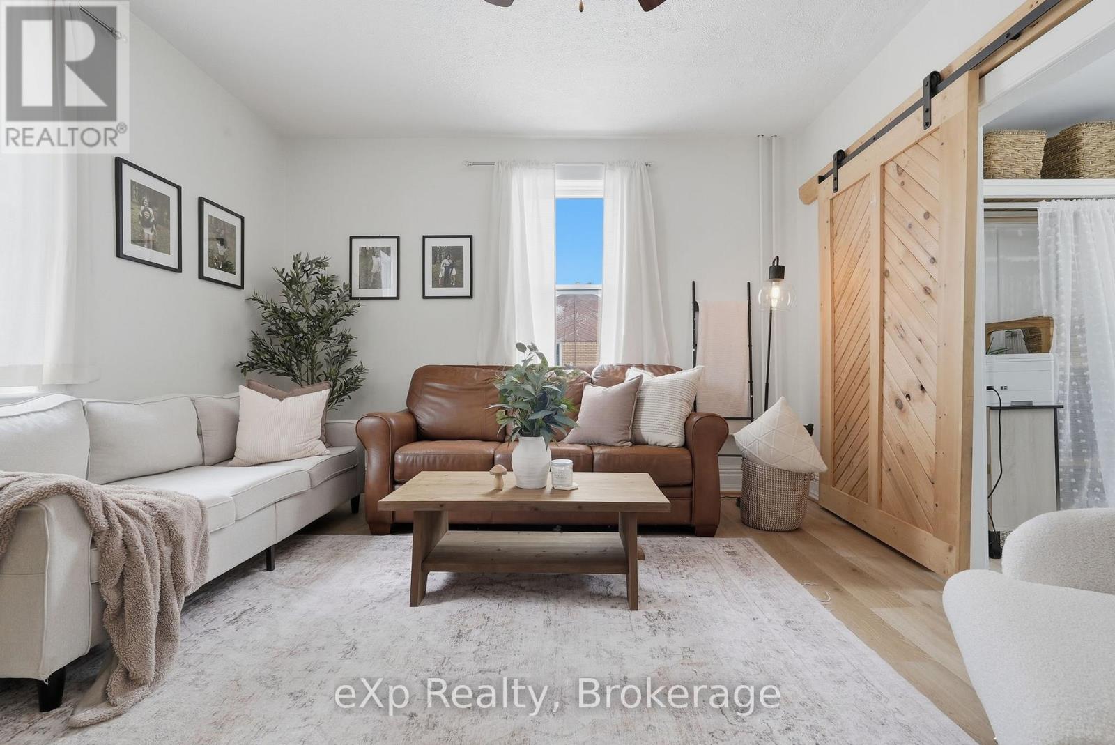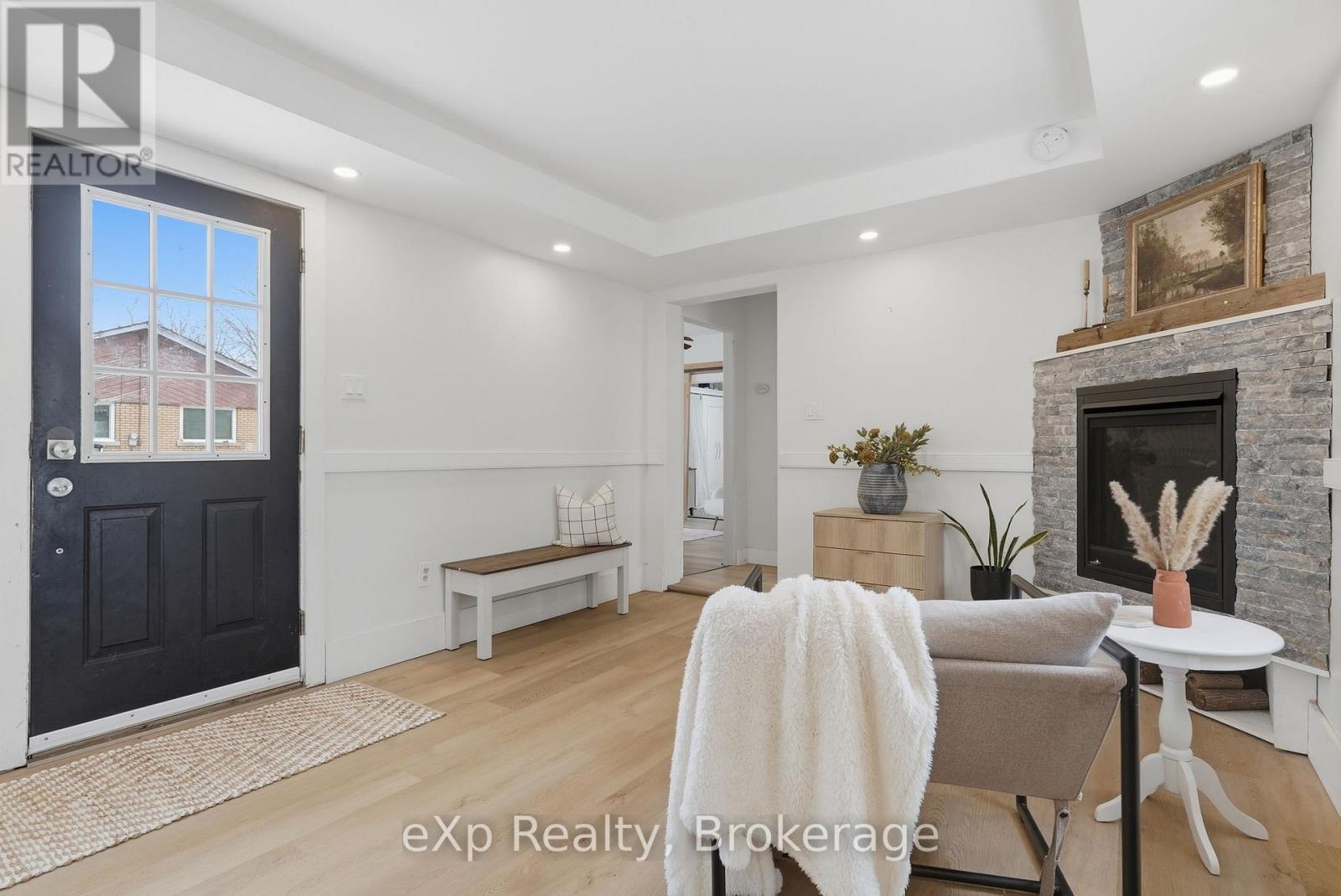 Step into a fully transformed family home that effortlessly blends modern style with everyday functionality - all in a location that truly checks every box. This move-in ready home showcases quality updates both inside and out, offering the peace of mind today's buyers are looking for. Oversized windows throughout pour in natural light, creating bright, uplifting spaces that feel as good as they look. The layout is designed with flexibility in mind, featuring two spacious Bedrooms on the second level and a versatile main level room that can easily serve as a third Bedroom, home office, or guest space. Two full Bathrooms add convenience and comfort for busy households. The main level family room is warm and inviting, complete with a cozy gas fireplace that sets the tone for relaxing nights in. Step outside to a large back deck shaded by a mature maple tree that offers natural coverage and a peaceful setting for morning coffee or evening unwinding. Outside, the home continues to impress with extensive exterior updates that enhance both curb appeal and long-term value. Perfectly positioned in a sought-after, family-friendly neighbourhood, you're just a short walk to schools, parks, sports fields, the hospital, medical centre, and arena. Completely turnkey-this is the kind of home buyers wait for! Updates: all new main level flooring, professionally refinished kitchen with new countertops, backsplash and hardware (2025), siding professionally painted, soffit, fascia, eavestroughs (2024), Front porch and re-designed front flower beds (2022), second level windows (2021/2022), upstairs bedroom and hallway flooring (2021). (id:64974)