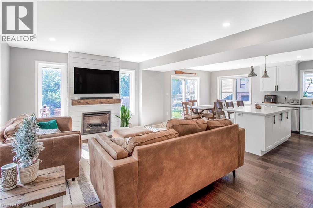 This beautifully maintained 2.5-bath home offers approximately 1,500 sq ft of thoughtfully designed living space, enhanced with modern upgrades throughout. Enjoy LED pot lights inside and out, an HRV fresh-air system, and a whole-home water filtration system complete with sediment, iron, and softener filters for added comfort and peace of mind. The bright, open-concept main floor showcases engineered hardwood flooring, a cozy electric fireplace in the living room, and a stylish centre-island kitchen ideal for both everyday living and entertaining. A double-door walk-in pantry provides exceptional storage, while the large front porch adds inviting curb appeal. Upstairs, the spacious primary retreat features a private ensuite and stunning sunset views over the lake. Additional bedrooms offer convenient ensuite privileges, making the layout perfect for families or guests. The unfinished basement presents a fantastic opportunity to customize—whether you envision a home office, gym, or recreation space. Step outside to a backyard patio with outdoor pot lights, offering the perfect spot to relax or entertain. An attached garage and double-wide driveway accommodate up to four vehicles with ease. Situated on a quiet road for added privacy, this move-in-ready home delivers an exceptional blend of comfort, style, and value. (id:64974)