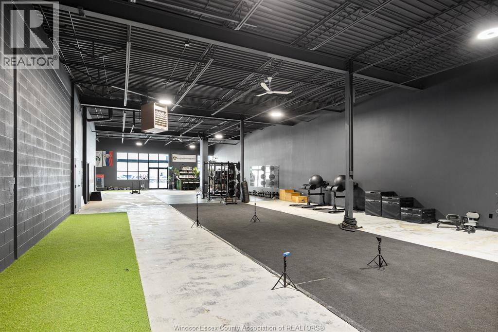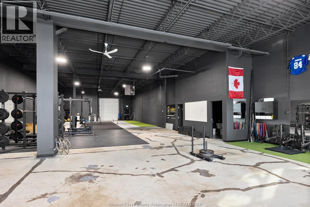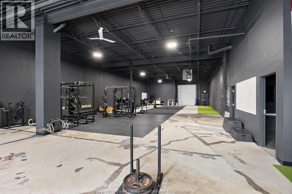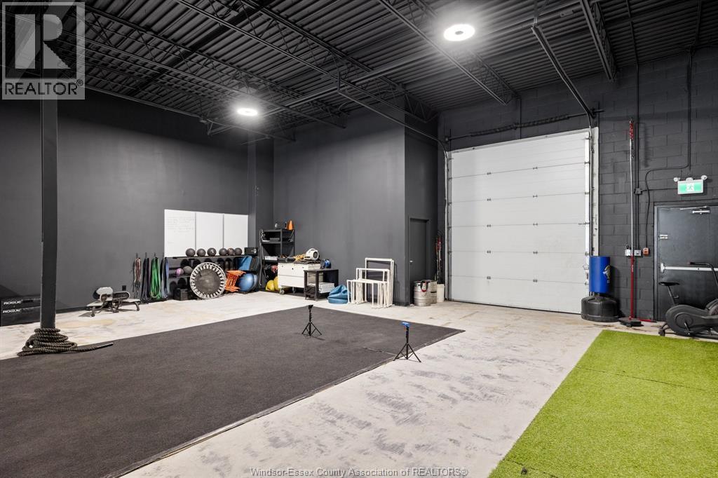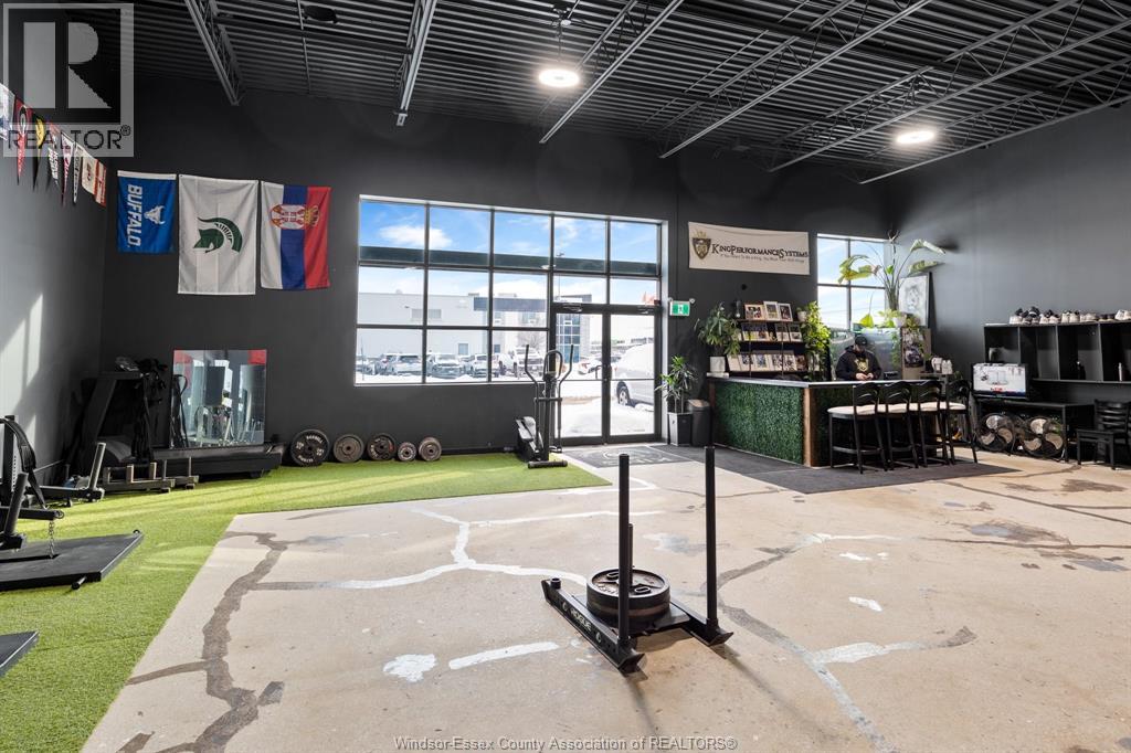 Modern and clean warehouse/flex space available in an excellent central location with easy access to the expressway. The 4,032 sq ft unit offers 16 ft clear height and one grade-level overhead door. Two new washrooms. Walls and ceiling are painted black with modern lighting throughout. Currently built out for a fitness-related use. Flexible zoning allows for a wide range of potential uses. See the docs section for the floor plan. Landlord is willing to add tenant improvements. Call us with your requirements. CAMs for 2026 are budgeted at $3.15 per sq ft and include water. (id:64974)