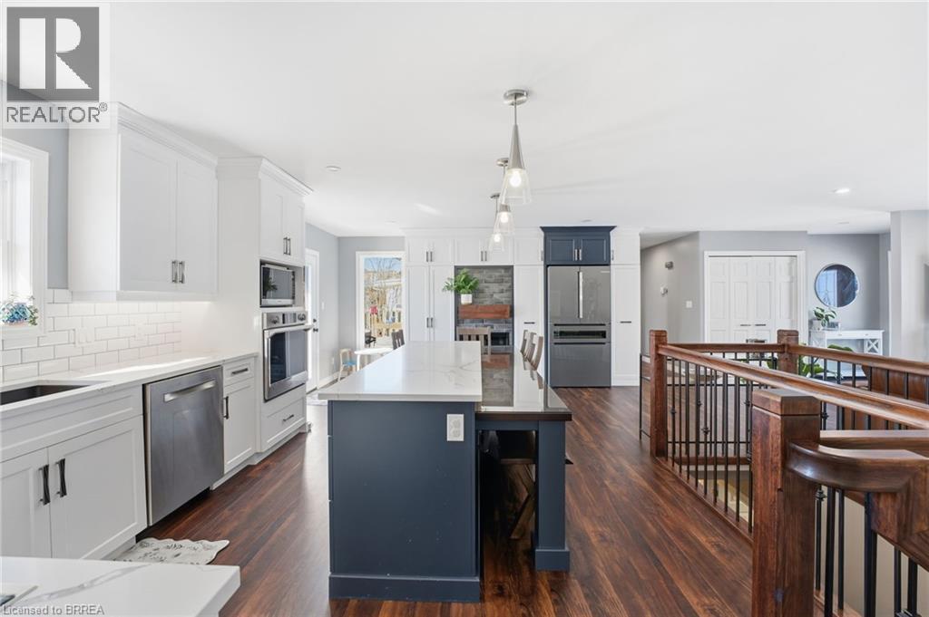 Welcome to 256 Howard Street in the charming town of Waterford! This well-maintained brick bungalow offers 3 bedrooms and 3 bathrooms, showcasing pride of ownership throughout. The open-concept main floor is ideal for entertaining and features a custom kitchen with quartz countertops, backsplash, island, soft-close cabinetry, built-in appliances, and an electric fireplace. A garden door leads to the rear deck, perfect for summer enjoyment. The main level also includes convenient laundry, a 3-piece bath with soaker tub, and a stylish main bath with heated floors, custom vanity, and a walk-in glass shower. Three spacious bedrooms complete the main floor. Inside access from the garage leads to the finished basement, offering an office, additional 3-piece bathroom, large recreation area with kitchenette, plus storage and utility rooms. The manageable backyard features a wood deck and garden shed. Numerous upgrades include flooring, kitchen, bathrooms, furnace, central air, on-demand water heater, water softener, windows, and doors. Ideally located within the Waterford District School zone, close to schools, adorable small-town shopping and restaurants, picturesque trails, and many other amenities this lovely town of Waterford has to offer. Book your private showing today! (id:64974)