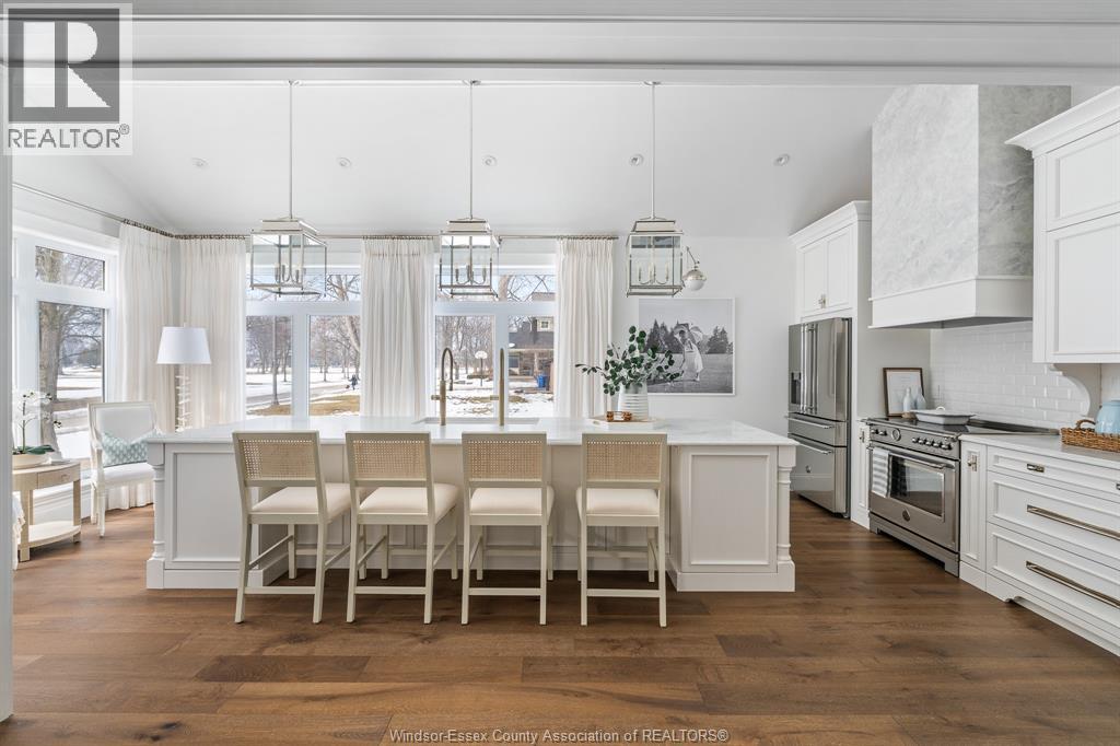 Recently featured in House & Home magazine, this Hampton’s-inspired designer residence offers a rare opportunity to live overlooking the 11th fairway of Beach Grove Golf & Country Club on one of St. Clair Beach’s most coveted streets. This approx 2300 sf ranch w/ a fully finished lower level offers nearly 4600 sf of beautifully finished living space, comprehensively rebuilt & redesigned w/ exceptional craftsmanship & material consistency throughout. Set on a premium 75’x176’ lot on Pentilly Rd — a street where homes rarely become available — the home captures panoramic golf course views from the main living spaces. The main level showcases soaring vaulted ceilings, expansive windows, & exceptional detail throughout. Custom millwork, designer wallpaper, louvered doors w/ glass hardware, high-end lighting, & marble-appointed bathrooms elevate every space. The showpiece kitchen features vaulted ceilings, oversized windows, a 13-ft island, Bertazzoni Heritage appliances, custom cabinetry, ogee-edge counters, Rejuvenation hardware, a full quartz range hood, & coffee bar. The living room is anchored by an XL Town & Country gas fireplace w/ cast concrete mantle & framed by panoramic windows capturing sweeping golf course views. The primary suite is a private retreat w/ vaulted ceilings, custom walk-in, & spa-inspired ensuite w/ marble finishes & Rubinet polished nickel fixtures. The fully finished lower level doubles the living space w/ independent temperature controls, 2 XL bedrooms w/ egress windows, full bath, spacious family room w/ fireplace, & designer laundry room. Extensive upgrades include furnace, A/C, HRV, tankless hot water, plumbing, electrical, insulation, & Crestron automation. Attached heated 2 car epoxy garage, new driveway, patios, landscaping, & irrigation complete this exceptional Beach Grove home. A rare opportunity to own a fully redesigned residence on Pentilly Rd, a forever street in St Clair Beach. (id:64974)