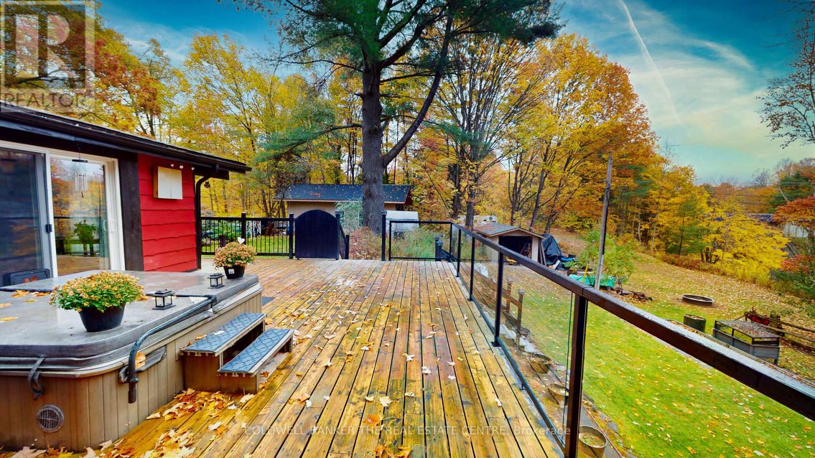 Experience the ultimate Trent-Severn lifestyle. 1. Prime Waterfront Lifestyle: Capture the essence of the Trent-Severn Waterway. This property backs onto protected Parks Canada land, offering captivating views of Lock 42 and passing boats. For a nominal annual fee ($53.50), enjoy a water intake pipe for property irrigation and a private dock at the shoreline. All this within walking distance to local Lock 42 restaurant and minutes from the charming village of Washago. 2. Iconic Viceroy Design: Experience the bright, airy elegance of a Viceroy bungalow. The open-concept main floor features dramatic pine cathedral ceiling, oak hardwood flooring, and a cozy wood-burning fireplace. A seamless transition leads to an expansive wrap-around deck with glass railings-perfect for blending indoor and outdoor entertaining. 3. Versatile Living Space: This smart 1+2 bedroom layout includes three full bathrooms and a main-floor laundry for ultimate convenience. The fully finished walk-out basement doubles your living space, offering two additional bedrooms, a beautifully renovated bathroom, and a spacious rec room anchored by a second wood fireplace. 4. Incredible Storage & Privacy: The backyard is a landscaped oasis, accessible by vehicle via a private lane. Hobbyists will love the massive 36' x 20' detached garage/shop (16' ceilings), plus a secondary 12' x 20' lower-level garage. Thoughtful additions include a 4-year-old 10'x20' chicken coop, a 9'x10' storage shed, a secure outdoor dog pen, and a relaxing hot tub. 5. Extensive Modern Updates: Move in with peace of mind thanks to significant investments: an 80ft drilled well, updated septic, 12 yr old roof, and R20 insulation/venting. Additional upgrades include electrical, drainage, two renovated bathrooms, and select energy-efficient windows and patio doors. (id:64974)
