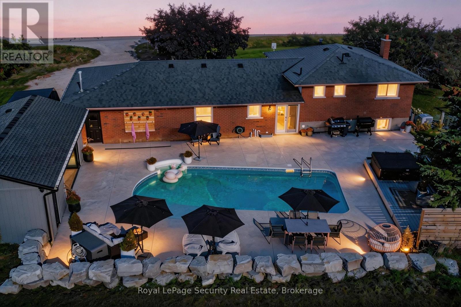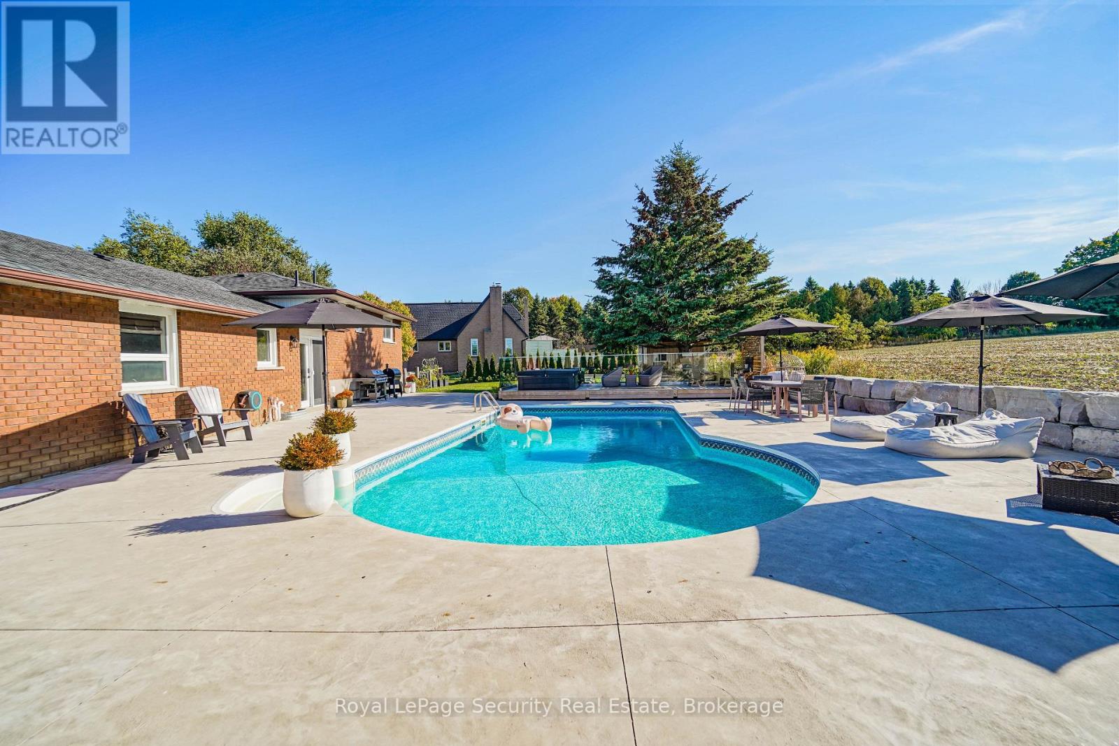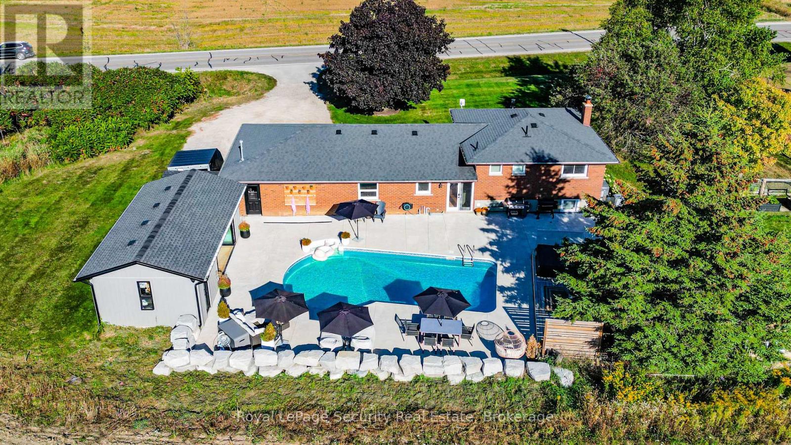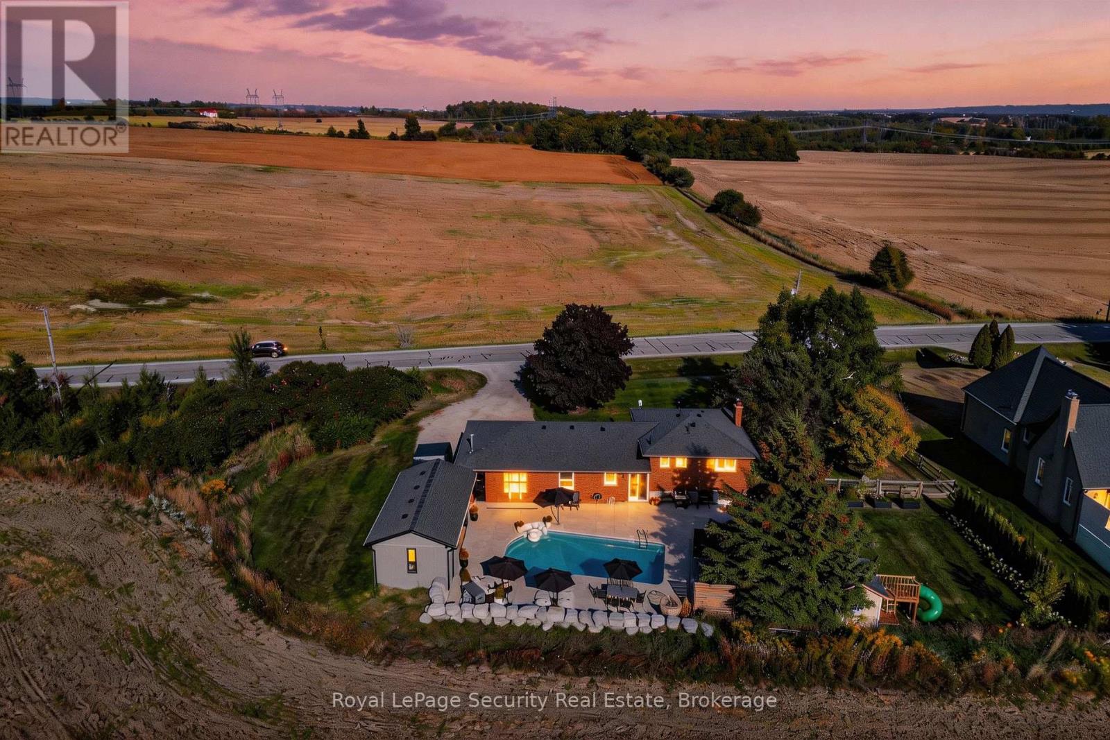 Experience rural living at its finest in this beautifully finished 4-level side-split, set on approximately half an acre with breathtaking field views both front and back. Enjoy stunning sunrises and sunsets from your own private retreat, just minutes to Schomberg, Beeton and Tottenham, and with convenient access to Highway 400 in under 10 minutes. This meticulously maintained 3-bedroom home features a fully renovated interior, including a stunning kitchen with an impressive 8-foot centre island, perfect for entertaining. Hardwood flooring -no carpeting anywhere-complemented by three cozy fireplaces located in the living room, family room, and primary bedroom. Two fully updated bathrooms offer a spa-like experience with heated floors, while custom closet organizers add functionality and style. Step outside to your personal backyard oasis featuring a heated saltwater pool, expansive pool deck, outdoor hot tub, and a spectacular pool house with a fully opening glass wall-ideal for seamless indoor-outdoor living. If golf's your game this property is minutes away from the Championship Course at "The Club at Bond Head" (2x 18 hole courses) Additional highlights include gardens, a storage shed, and a heated 2-car garage. Equipped with a propane generator for backup power, this home offers peace of mind along with exceptional comfort and lifestyle. A rare opportunity to enjoy country living with modern upgrades and easy access to nearby amenities. (id:64974)