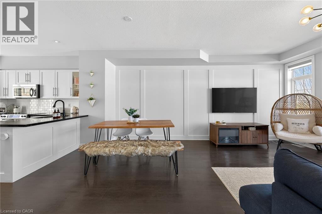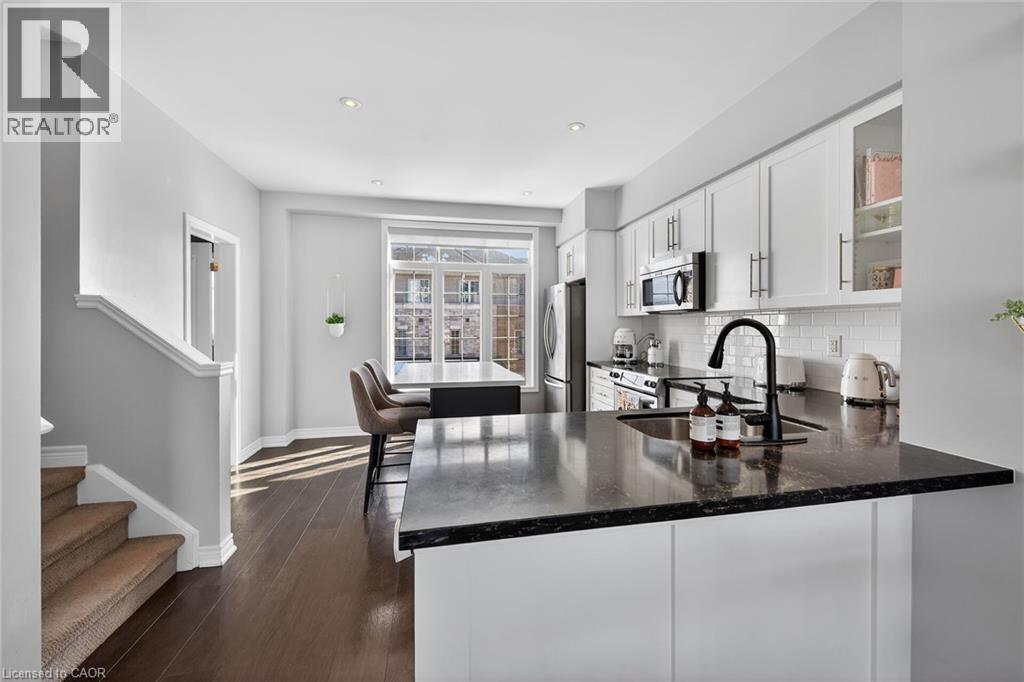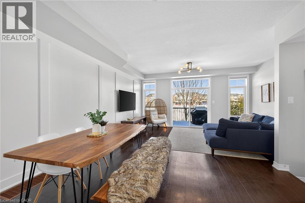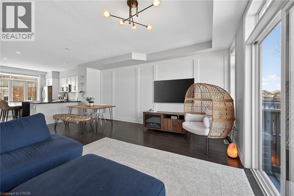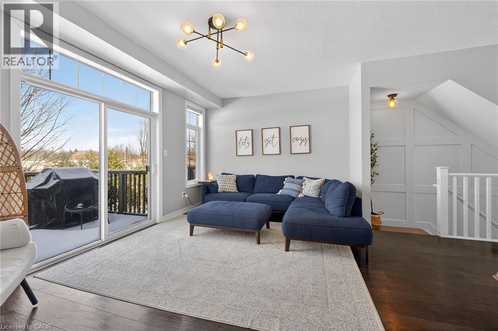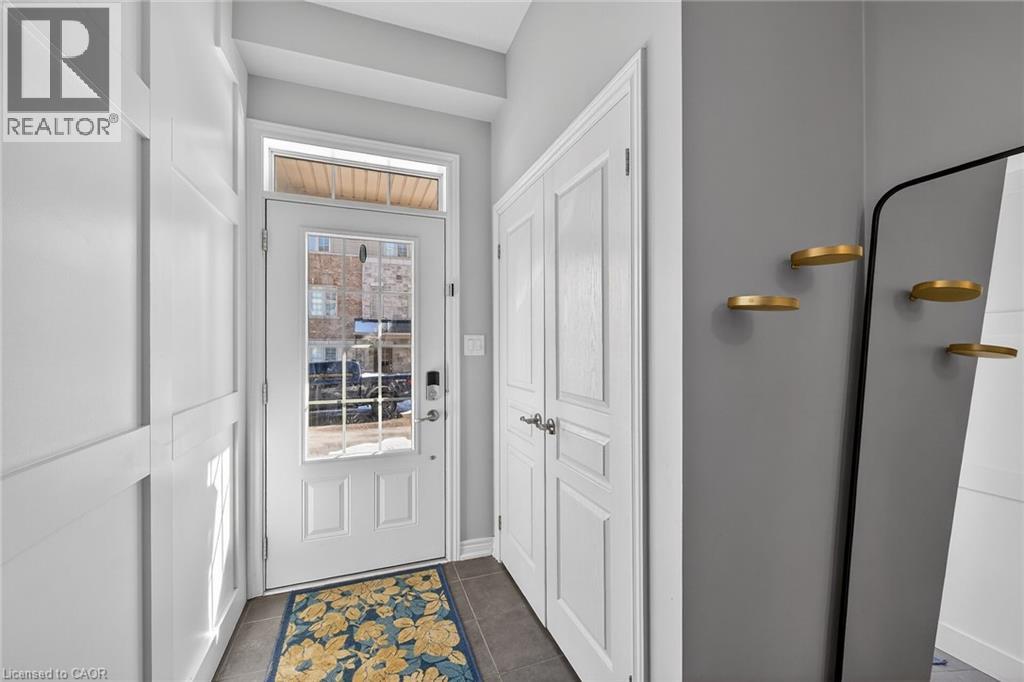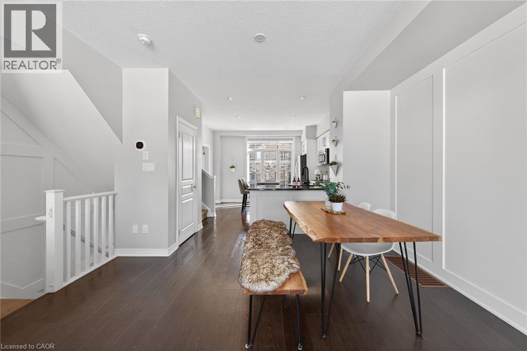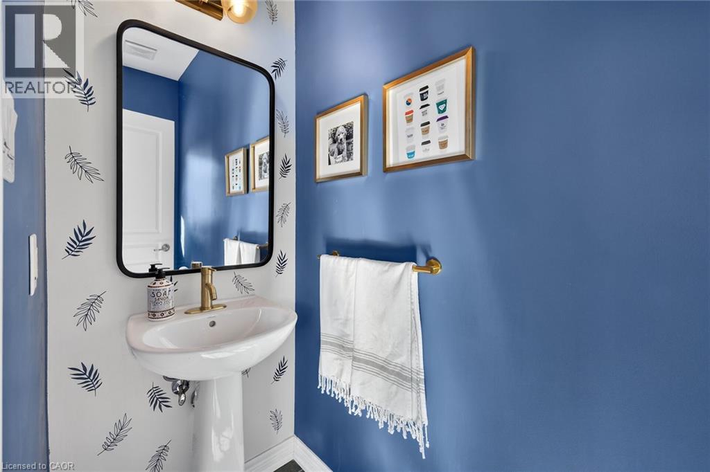 Ideally located in the heart of Waterdown, this refined 3-bedroom, 2.5-bath residence offers walkable access to shops, dining, parks, and downtown amenities, with seasonal highlights right outside your door. The entry level features direct garage access, a full bath, a versatile bedroom or office, and a walkout to a private patio. The main living level showcases custom millwork, plank flooring, a designer powder room, pantry, and an elegant kitchen with breakfast bar. The sunlit living space opens to a secluded, tree-lined deck—perfect for quiet mornings or evening unwinding. Upstairs, two spacious bedrooms include a well-appointed primary with custom built-ins, a statement feature wall, and semi-ensuite access. A generous main bath and convenient laundry complete the home. The unfinished lower level offers excellent potential for additional living space. A rare opportunity to enjoy style, comfort, and convenience in one exceptional location. (id:64974)