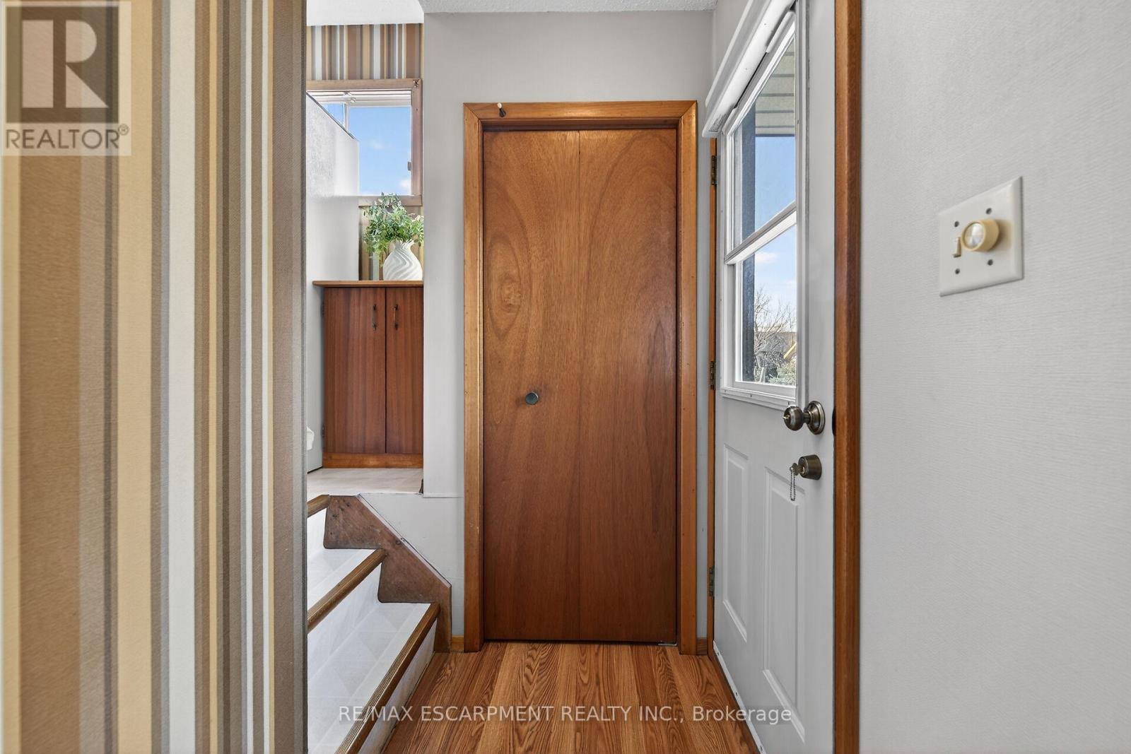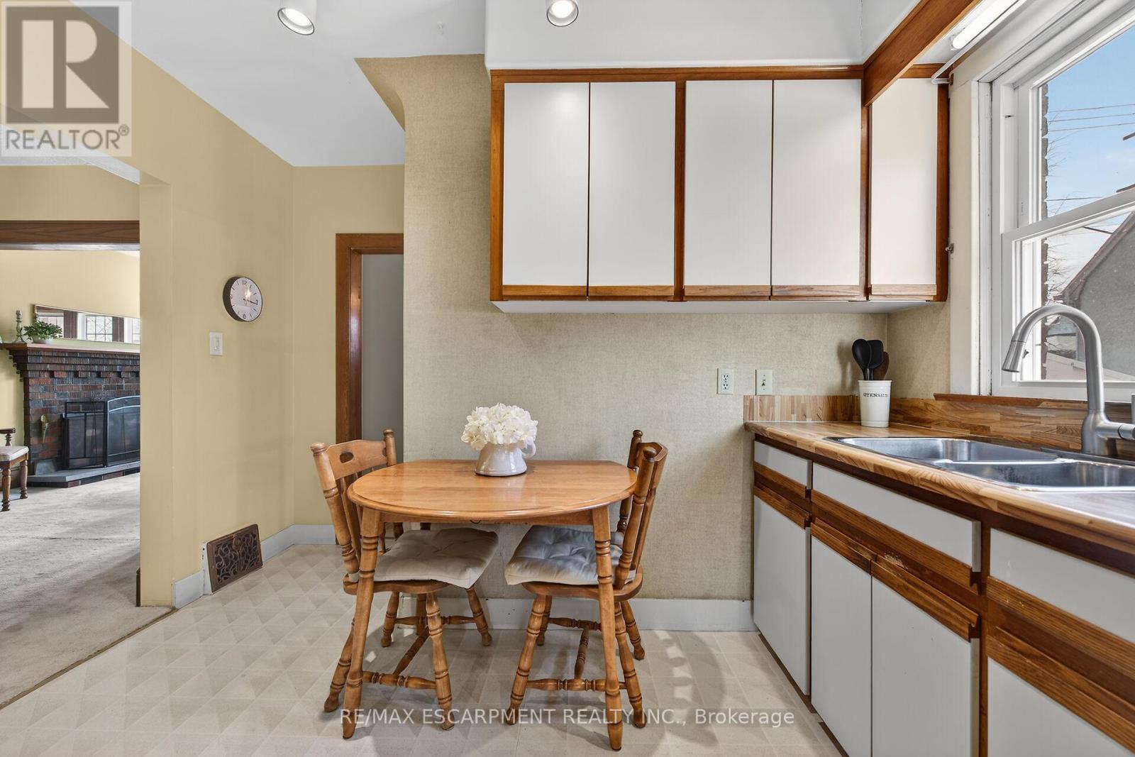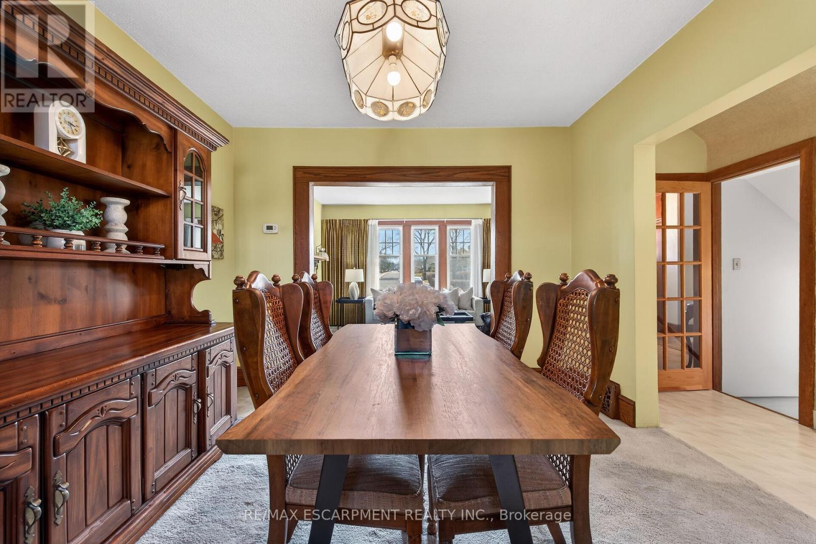 LOCATION, LOCATION, LOCATION! Situated in highly desirable Hamilton Mountain, this immaculately maintained 2-storey, 4-bedroom home is within walking distance to top-rated schools, parks, & all amenities, w/quick access to Downtown Hamilton, Red Hill Valley Parkway, Lincoln M. Alexander Parkway, Hwy 403 & the QEW. Step into timeless character & charm beautifully showcasing original craftsmanship throughout. From the handmade gumwood doors & trim to the original vents, this home is full of old-school elegance & warmth. A stunning wooden staircase leads to the upper level, while the main floor offers inviting principal rooms including a formal dining room w/custom interior window overlooking the sunken family room. Enjoy cozy evenings by the wood-burning fireplace in the living room or relax in the bright sunken family room featuring a gas fireplace & an abundance of natural light. The eat-in kitchen offers ample cabinetry & functional space for everyday living. Both the main & upper levels are equipped with 4-piece bathrooms for added convenience. Upstairs, one of the bedrooms opens onto a spacious exclusive patio, ready to be transformed w/your own personal vision & style. The large unfinished basement w/separate side entry offers incredible potential for future customization & features interior waterproofing for added peace of mind. Complete w/generous backyard & shed w/hydro, this lovingly cared-for home is a rare blend of character, space & opportunity. (id:64974)