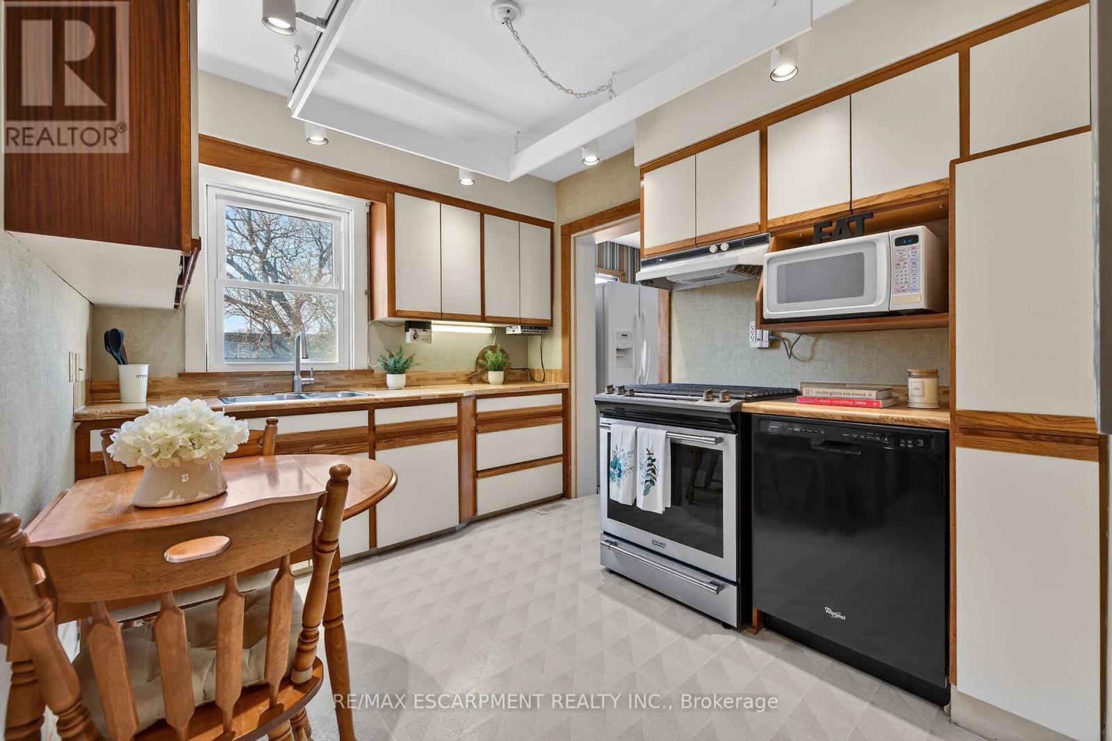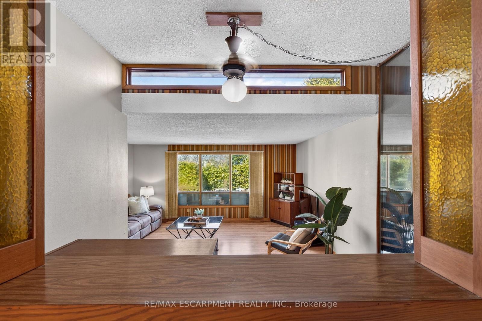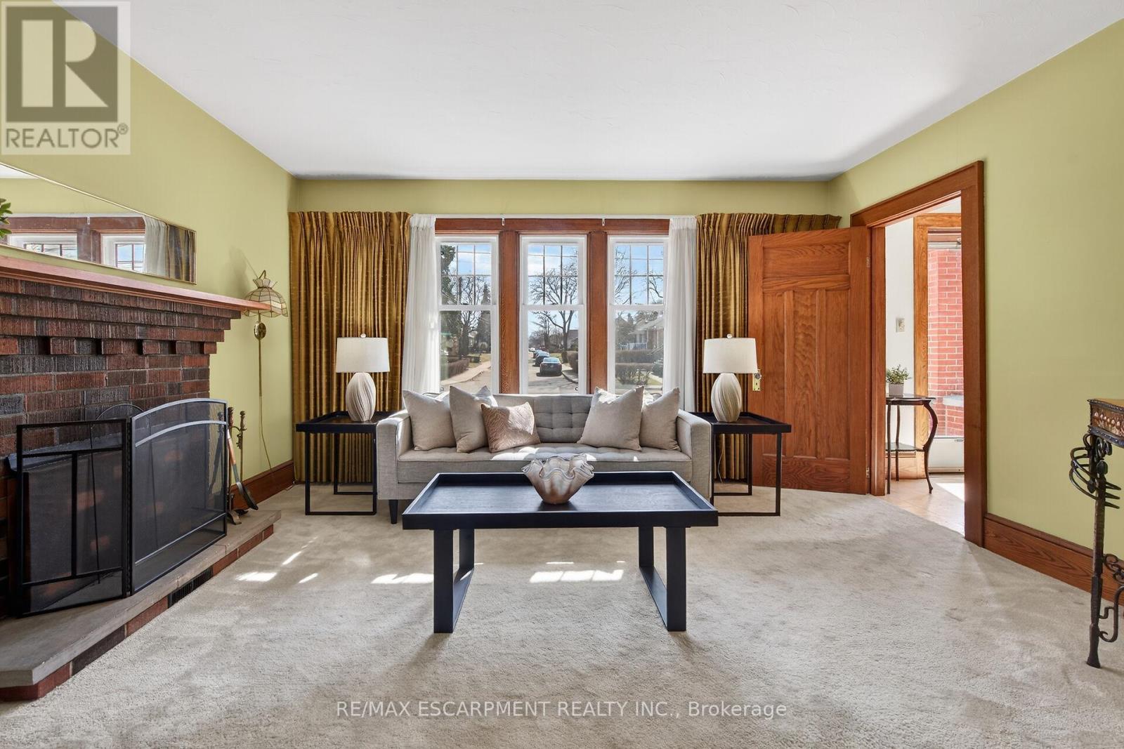 LOCATION, LOCATION, LOCATION! Situated in highly desirable Hamilton Mountain, this immaculately maintained 2-storey, 4-bedroom home is within walking distance to top-rated schools, parks, & all amenities, w/quick access to Downtown Hamilton, Red Hill Valley Parkway, Lincoln M. Alexander Parkway, Hwy 403 & the QEW. Step into timeless character & charm beautifully showcasing original craftsmanship throughout. From the handmade gumwood doors & trim to the original vents, this home is full of old-school elegance & warmth. A stunning wooden staircase leads to the upper level, while the main floor offers inviting principal rooms including a formal dining room w/custom interior window overlooking the sunken family room. Enjoy cozy evenings by the wood-burning fireplace in the living room or relax in the bright sunken family room featuring a gas fireplace & an abundance of natural light. The eat-in kitchen offers ample cabinetry & functional space for everyday living. Both the main & upper levels are equipped with 4-piece bathrooms for added convenience. Upstairs, one of the bedrooms opens onto a spacious exclusive patio, ready to be transformed w/your own personal vision & style. The large unfinished basement w/separate side entry offers incredible potential for future customization & features interior waterproofing for added peace of mind. Complete w/generous backyard & shed w/hydro, this lovingly cared-for home is a rare blend of character, space & opportunity. (id:64974)