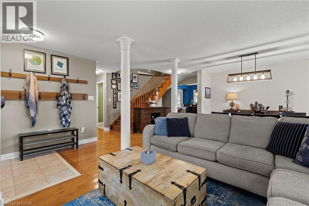 Stunning family home in a sought-after neighbourhood, ideally located beside a park and playground and directly across from a scenic golf course. This beautifully maintained 4+1 bedroom home offers a bright and functional layout designed for both everyday living and entertaining. The modern eat-in kitchen features quartz countertops, a stylish backsplash, stainless steel appliances, and a large island with seating. Sliding doors lead to a private patio, perfect for outdoor dining and summer BBQs. The main floor also includes spacious living and dining areas, a cozy family room with a gas fireplace, convenient main floor laundry, and inside access to the double car garage. Upstairs you will find four generous bedrooms, including a spacious primary retreat with a walk-in closet and a luxurious 5-piece ensuite. The fully finished basement provides additional living space with a large recreation room, an extra bedroom, a 3-piece bathroom, and a dedicated home office ideal for remote work or studying. A cold room and ample storage add extra functionality. The fully fenced backyard offers a great patio space with a gazebo, perfect for entertaining or relaxing outdoors. Conveniently located just minutes from the QEW, Highway 406, Niagara College, schools, shopping, restaurants, entertainment, and public transit, this home offers the perfect blend of comfort, space, and convenience for modern family living. (id:64974)