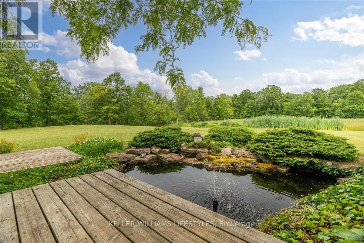 Discover the space and serenity of this private 40 acre riverfront property, offering a beautiful balance of country living and everyday comfort. Set well back in a quiet setting, the home built in 2008, provides privacy and a true connection to the outdoors. Equestrian enthusiasts will appreciate the five stall insulated barn that is well equipped with hydro, water, and storage for up to 300 small square bales. A 50 amp RV outlet and halogen floodlight add extra functionality. Approximately 27 acres are workable, with 23 acres of hay and the remaining land in open pasture, creating excellent potential for hobby farming or added income. Enjoy direct access to the river for canoeing, fishing, or simply taking in the peaceful views. The surrounding hardwood bush attracts deer, eagles, foxes, and other wildlife, making this property ideal for nature lovers. Whether you are seeking a hobby farm, a family country escape, or a private retreat, the possibilities here are wide open. Inside, enjoy cozy evenings by the wood burning fireplace, or gather outdoors around a campfire beneath star filled skies. Hydro access near the treed area allows for outdoor entertaining or seasonal lighting displays. Begin your mornings with coffee in the screened in front porch and unwind on the cedar back deck overlooking a peaceful fish pond. The full basement offers generous additional space for living, storage, or hobbies. Municipal water, septic, propane, and fibre optic internet are already in place, delivering modern amenities in a peaceful rural setting. This 40 acre riverfront property offers a rare combination of land, comfort, and natural beauty. (id:64974)