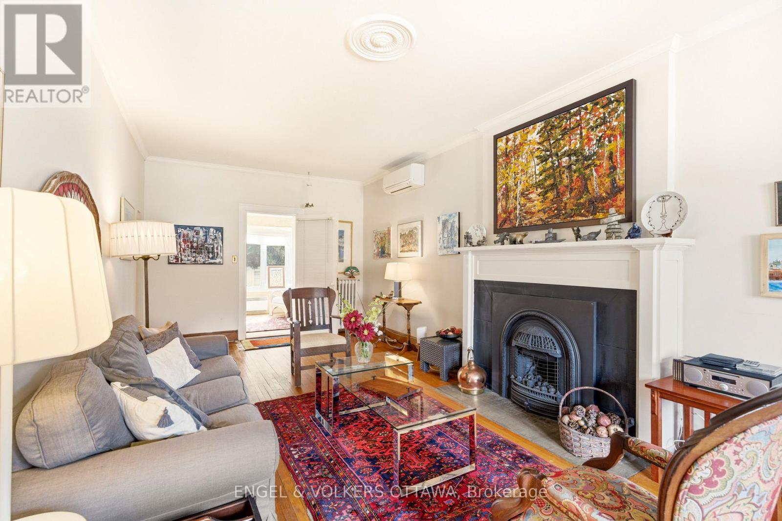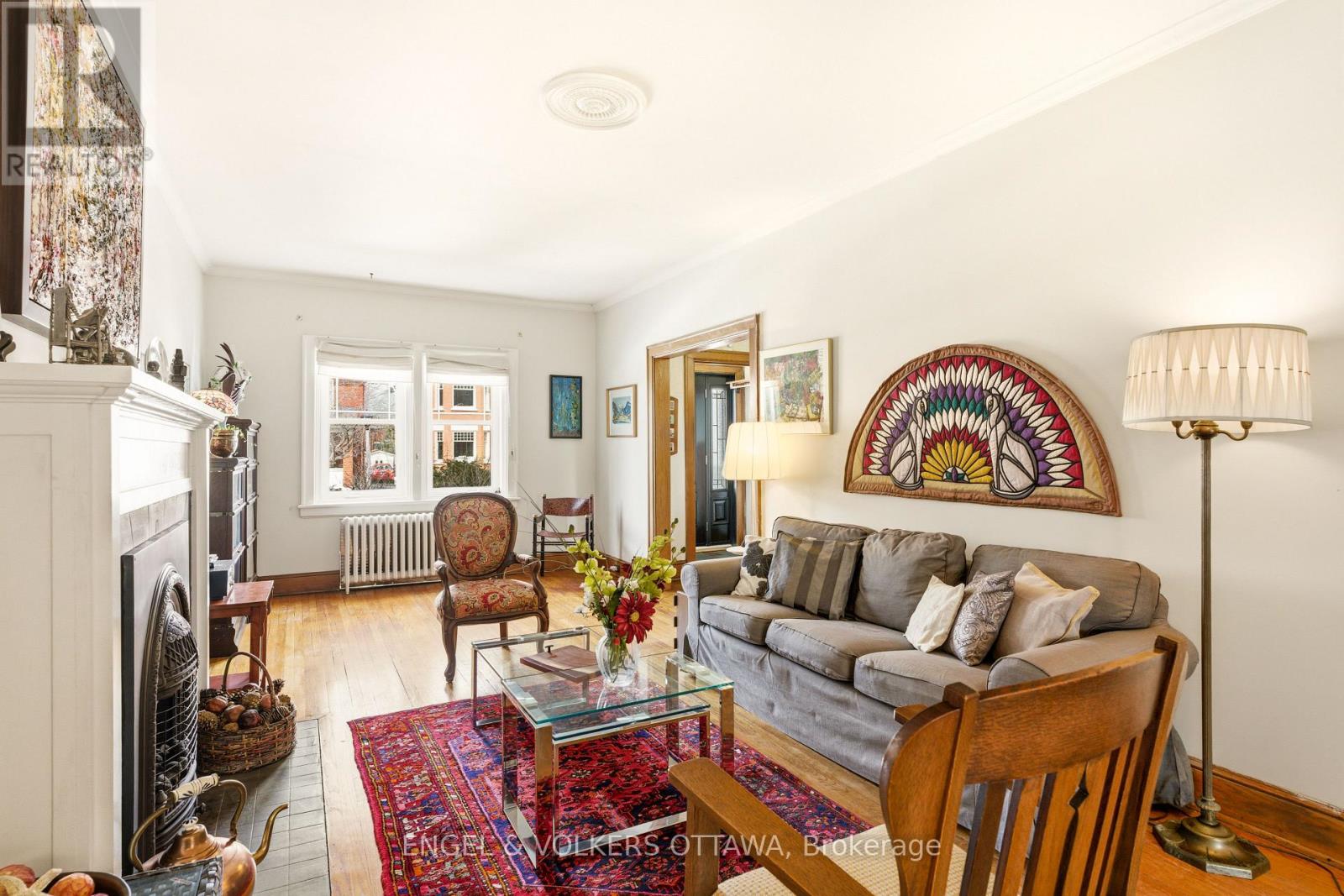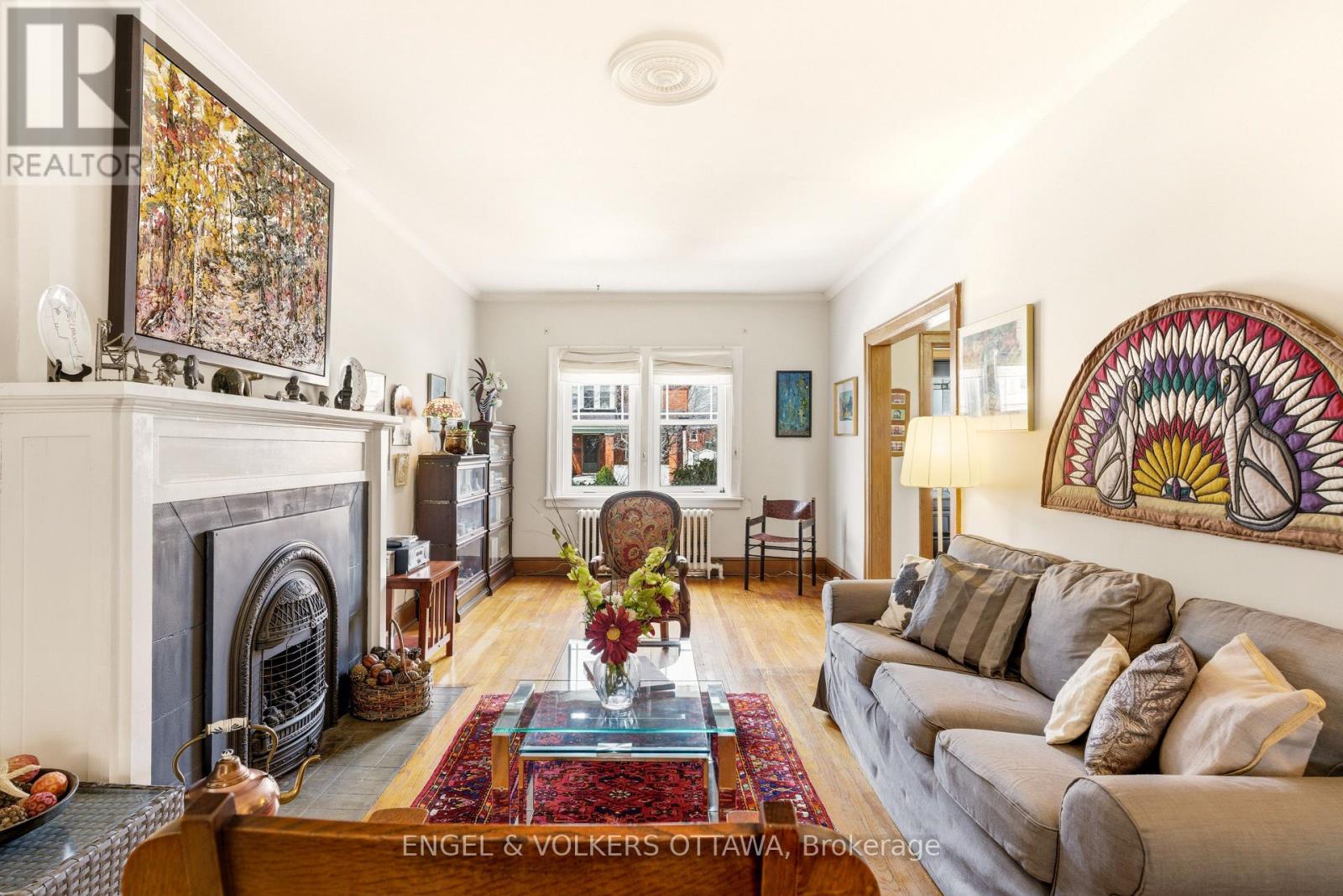 Welcome to this beautiful three-storey five-bedroom Younghusband home in the heart of the Glebe, featuring a classic centre hall floor plan and a seamless blend of timeless character and thoughtful updates. Original wood mouldings and trim, along with hardwood floors, add warmth throughout. The inviting main floor features a spacious living room with gas fireplace, a large dining area, and a renovated kitchen with granite countertops, gas range, and stainless steel appliances. A main floor powder room adds convenience, while the rear sunroom provides a bright, relaxed space with direct access to the expansive Trex deck with remote-controlled awning, the private, beautifully landscaped backyard, and a detached garage with valuable additional storage. The second level includes four well-proportioned bedrooms and an updated full bathroom. The third floor features an additional bedroom with engineered hardwood and skylights, ideal for a private retreat, guest suite, or flexible living area. The finished basement offers excellent versatility with a family room, private den/office, laundry, a full bathroom, and additional storage, along with an electric fireplace. Extensively maintained over the years, with major updates to electrical, windows, roofing, and mechanical systems. Ideally located within walking distance to Bank Street, Lansdowne, the Canal, parks, shopping, restaurants, top-rated schools, & transit. (id:64974)