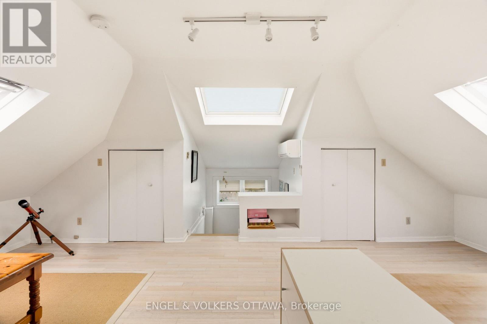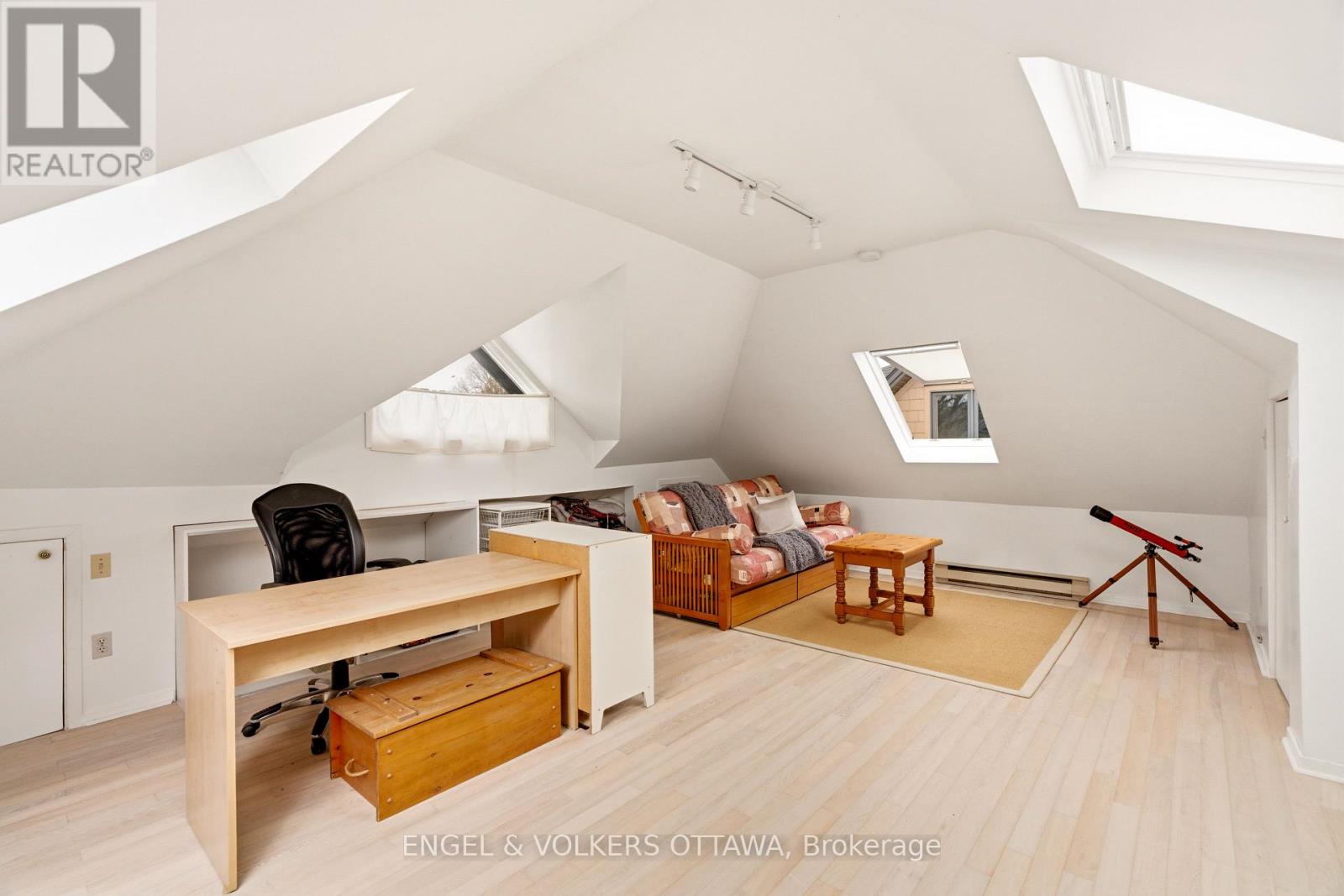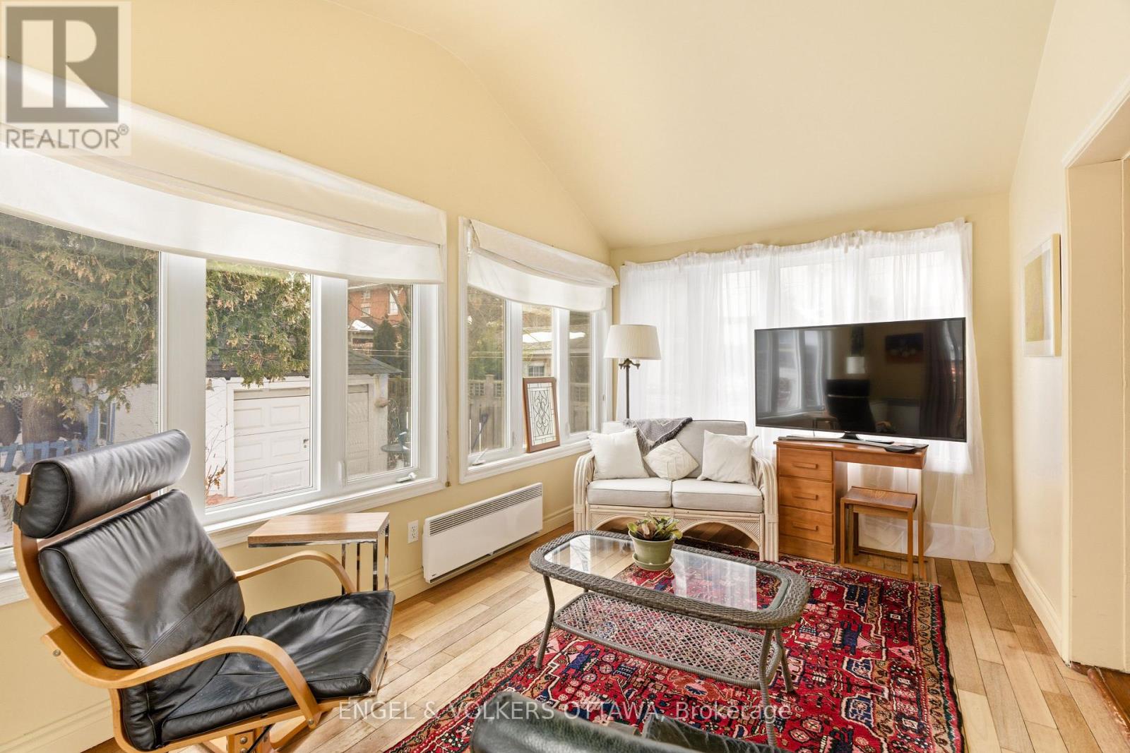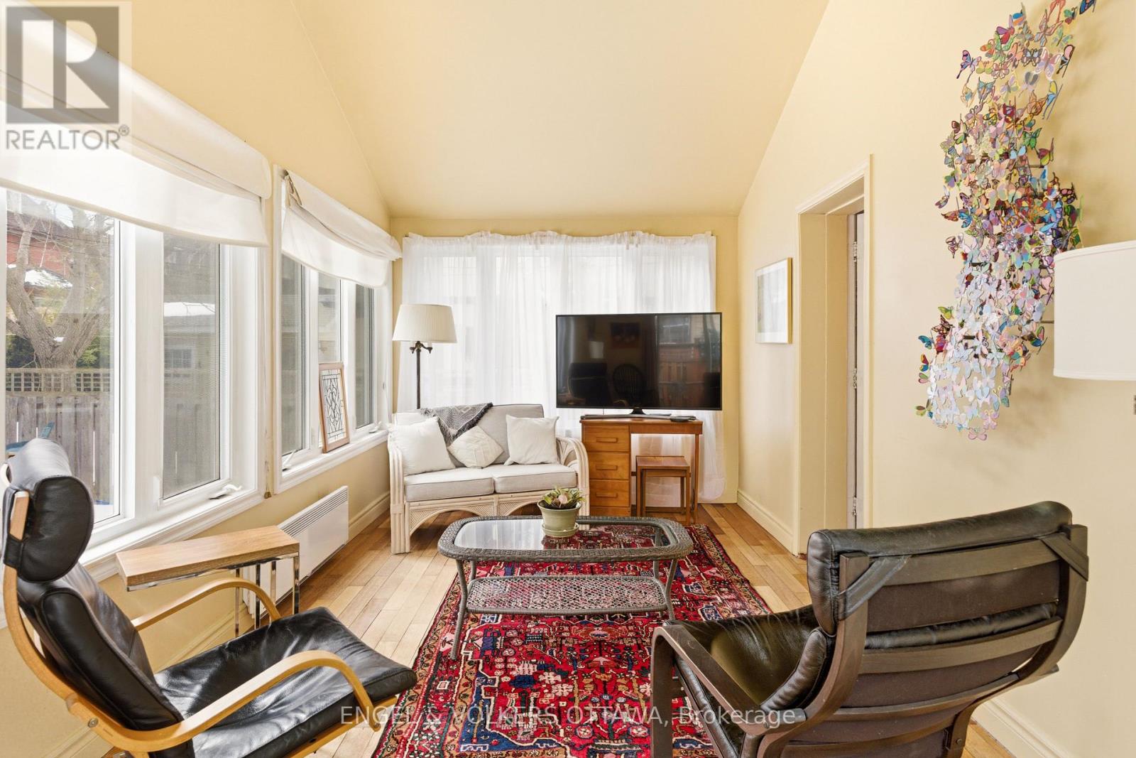 Welcome to this beautiful three-storey five-bedroom Younghusband home in the heart of the Glebe, featuring a classic centre hall floor plan and a seamless blend of timeless character and thoughtful updates. Original wood mouldings and trim, along with hardwood floors, add warmth throughout. The inviting main floor features a spacious living room with gas fireplace, a large dining area, and a renovated kitchen with granite countertops, gas range, and stainless steel appliances. A main floor powder room adds convenience, while the rear sunroom provides a bright, relaxed space with direct access to the expansive Trex deck with remote-controlled awning, the private, beautifully landscaped backyard, and a detached garage with valuable additional storage. The second level includes four well-proportioned bedrooms and an updated full bathroom. The third floor features an additional bedroom with engineered hardwood and skylights, ideal for a private retreat, guest suite, or flexible living area. The finished basement offers excellent versatility with a family room, private den/office, laundry, a full bathroom, and additional storage, along with an electric fireplace. Extensively maintained over the years, with major updates to electrical, windows, roofing, and mechanical systems. Ideally located within walking distance to Bank Street, Lansdowne, the Canal, parks, shopping, restaurants, top-rated schools, & transit. (id:64974)