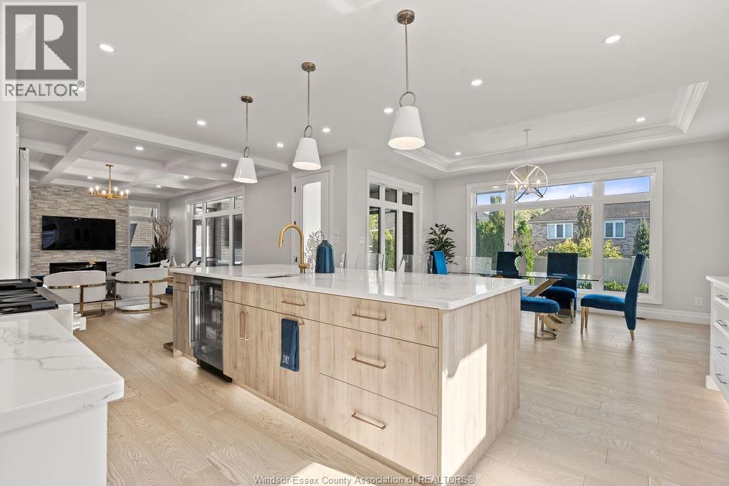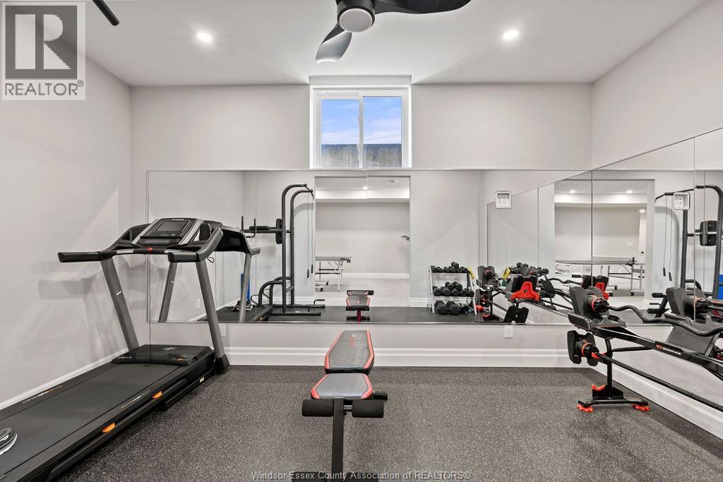Step into luxury living in this absolutely stunning 4+1 BR, 3.1 Bath home by Caster Custom Homes, located on a quiet, professional street in a sought-after, family-friendly neighbourhood, just moment from the water, top-rated schools & Tecumseh amenities. From top to bottom, this home offers tons of finished living space, ultra high-end finishes, & quality construction that truly sets it apart. Inside, the open-concept floor plan flows seamlessly into a spacious family area, both perfectly functional and thoughtfully designed. The custom Cremasco kitchen is a true chef’s dream, featuring an oversized 10-ft island, sleek quartz backsplash, walk-in pantry & top-tier appliances. Upstairs, enjoy generously sized bedrooms, including a luxurious primary retreat complete w/ a spa-inspired ensuite & XL walk-in closet. The second-floor laundry room offers loads of built-in storage & function. Downstairs, the finished basement impresses w/ rare 9-ft ceilings, a dedicated home gym w/ rubber flooring & mirrors, rec area, cozy gas fireplace and an extra bedroom. Outside is your personal resort equipped for year round enjoyment with a heated saltwater inground pool, covered porch w/ gas fireplace and motorized blinds, and a fully fenced yard. The long list of extras incl. motorized window coverings throughout, an oversized garage w/ Gen 3 EV charger, and premium finishes in every corner. Whether you're entertaining friends, raising a family, or simply enjoying the finer things in life, this exceptional home has it all. Don't miss your chance to own a one-of-a-kind property that offers the perfect mix of space, comfort, and quality. (id:64974)