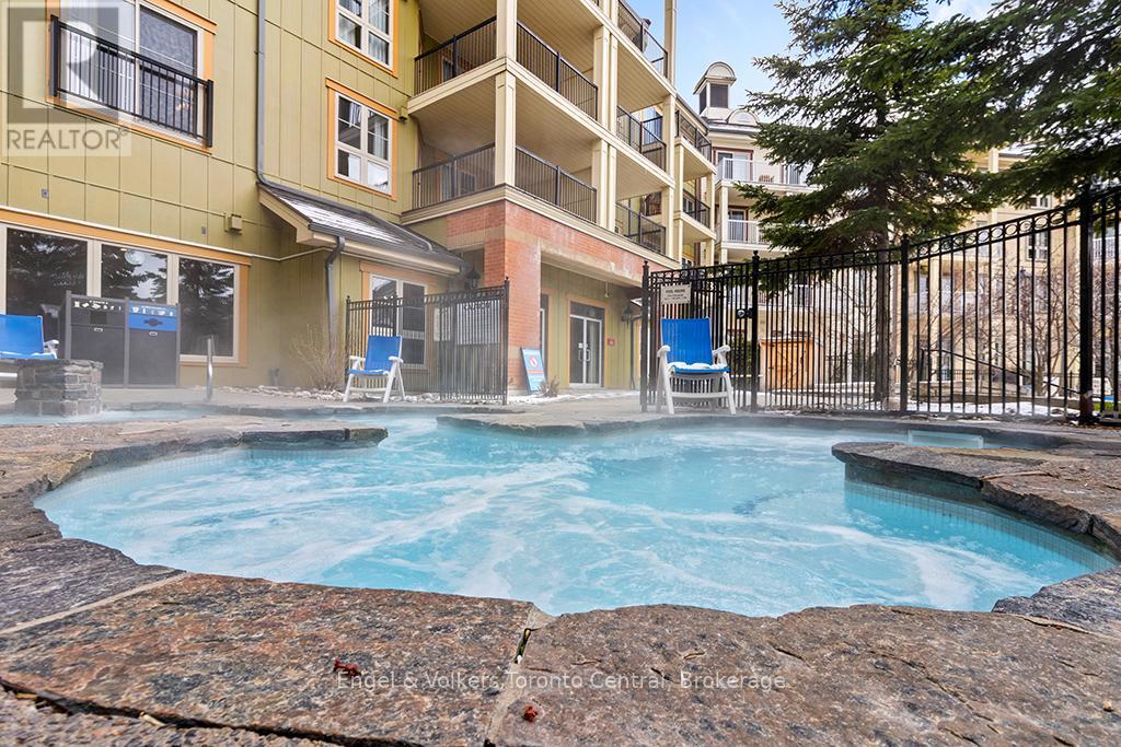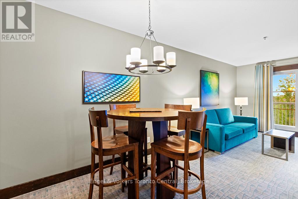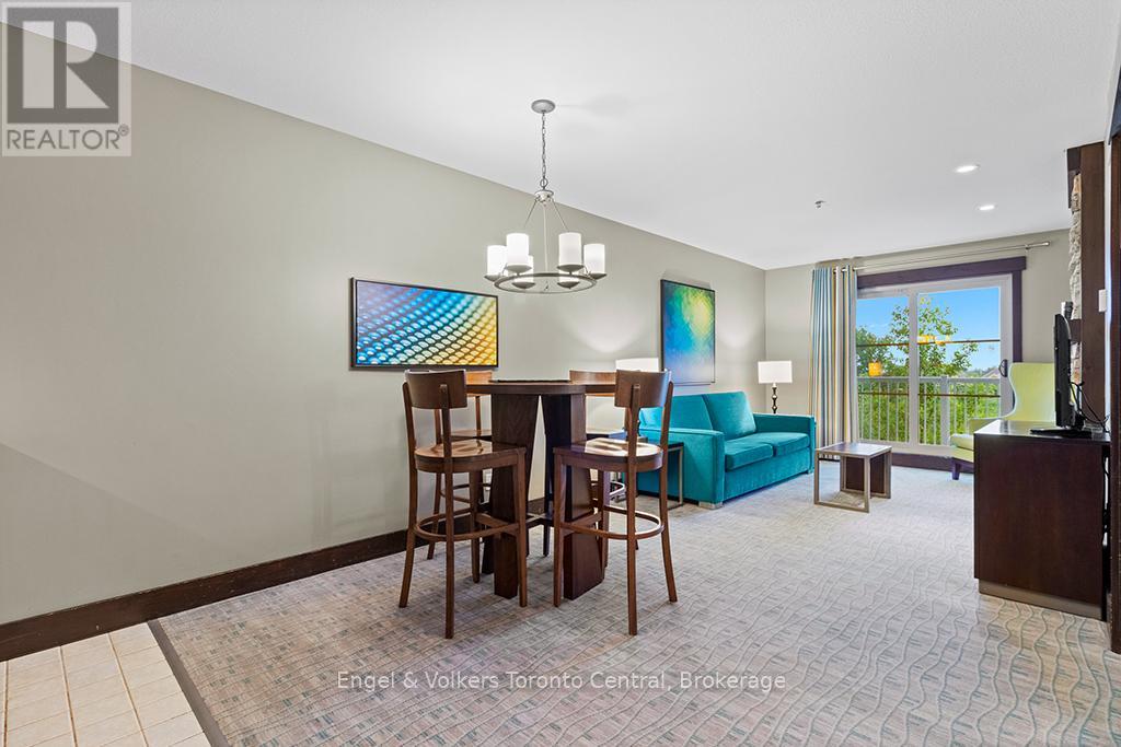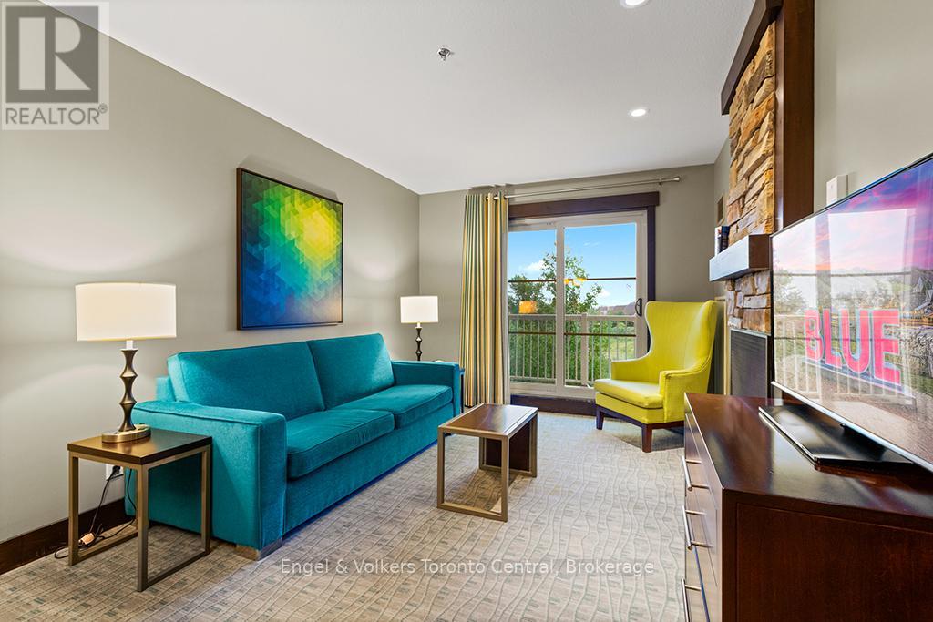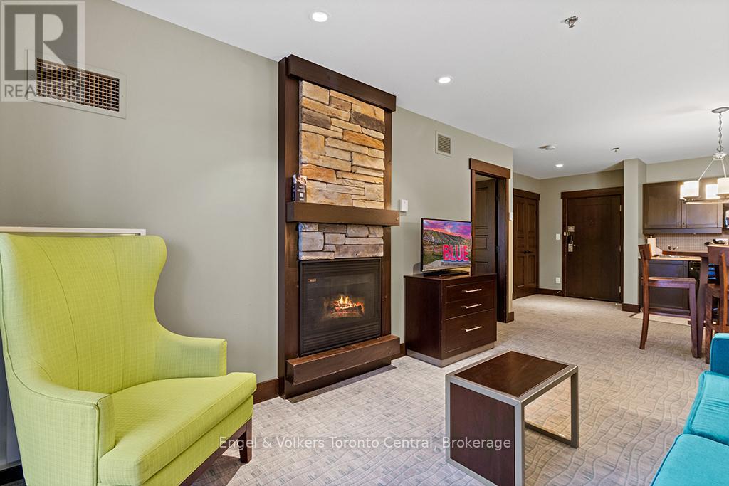 -GREAT OPPORTUNITY to own a beautiful one bedroom one bathroom fully furnished resort condominium located in The Village at Blue Mountain in the boutique-style condo-hotel known as Mosaic at Blue. Steps away from the Silver Bullet chairlift and Monterra Golf Course. Enjoy all the shops and restaurants in Ontario's most popular four season resort. Suite comes fully equipped with a kitchenette with two burners, dining area, pullout sofa, fireplace, appliances, window coverings, lighting fixtures and everything else down to the cutlery. Mosaic at Blue's amenities include a year round outdoor heated swimming pool, hot tub, owner's ski locker room, two levels of heated underground parking, exercise room and private owner's lounge to meet and mingle with other homeowners. Ownership at Blue Mountain includes an optional fully managed rental pool program to help offset the cost of ownership while still allowing liberal owner usage. The condo can also be kept for exclusive usage as a non-rental. 2% Village Association entry fee is applicable. HST is applicable but can deferred by obtaining a HST number and enrolling the suite into the rental pool program. In-suite renovations scheduled for all condominiums in Mosaic sometime in either fall 2025 or spring 2026. This suite will be newly refurbished in March 2026. The Seller has paid the first two payments of $19,706.88 leaving a balance of $59,120 of eight payments remaining. The buyer to pay the remaining amount. (id:64974)