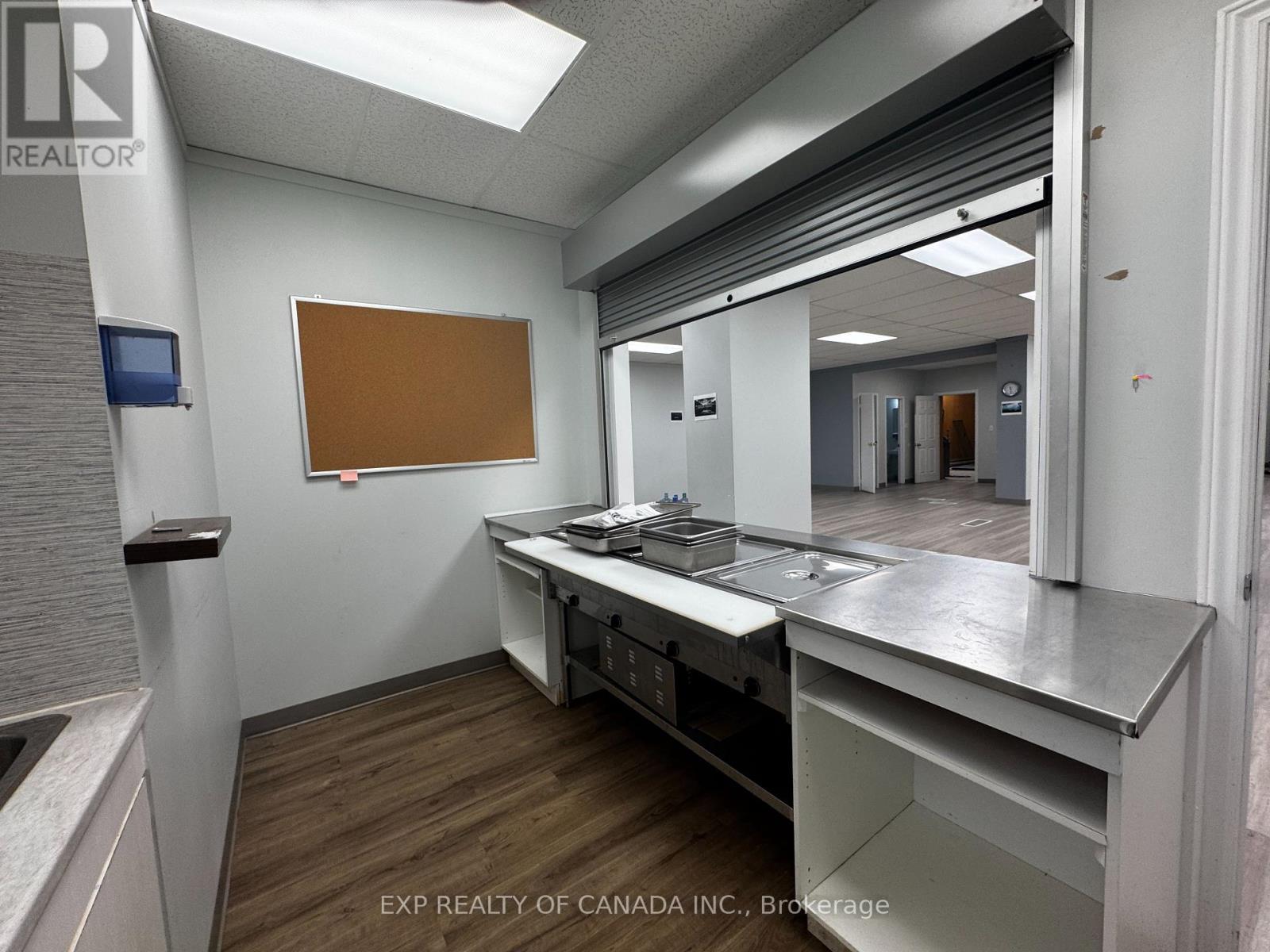 This is a two storey commercial building and a parking area is located downtown , in a high traffic area and near the municipal transit station. The building's second floor has two bathrooms (2 pieces), five offices, a staff room and a waiting room. The building's main floor has a kitchen equipped for two electric ranges, has portable reach in fridges, a stainless steel prep table, a commercial grade triple sink , a 6 feet exhaust hood, an opened concept retail/banquet hall space, a food and beverage service counter, steam table, two bathrooms (2 pieces), one of the bathrooms is fitted for people with mobility restrictions for easier accessibility and enjoyment, a front office and a receiving area off the laneway. The zoning allows for several commercial uses, with endless potential. (id:64974)