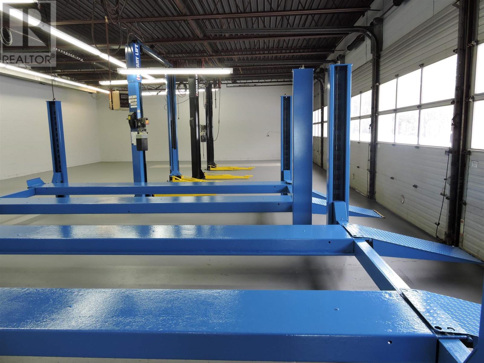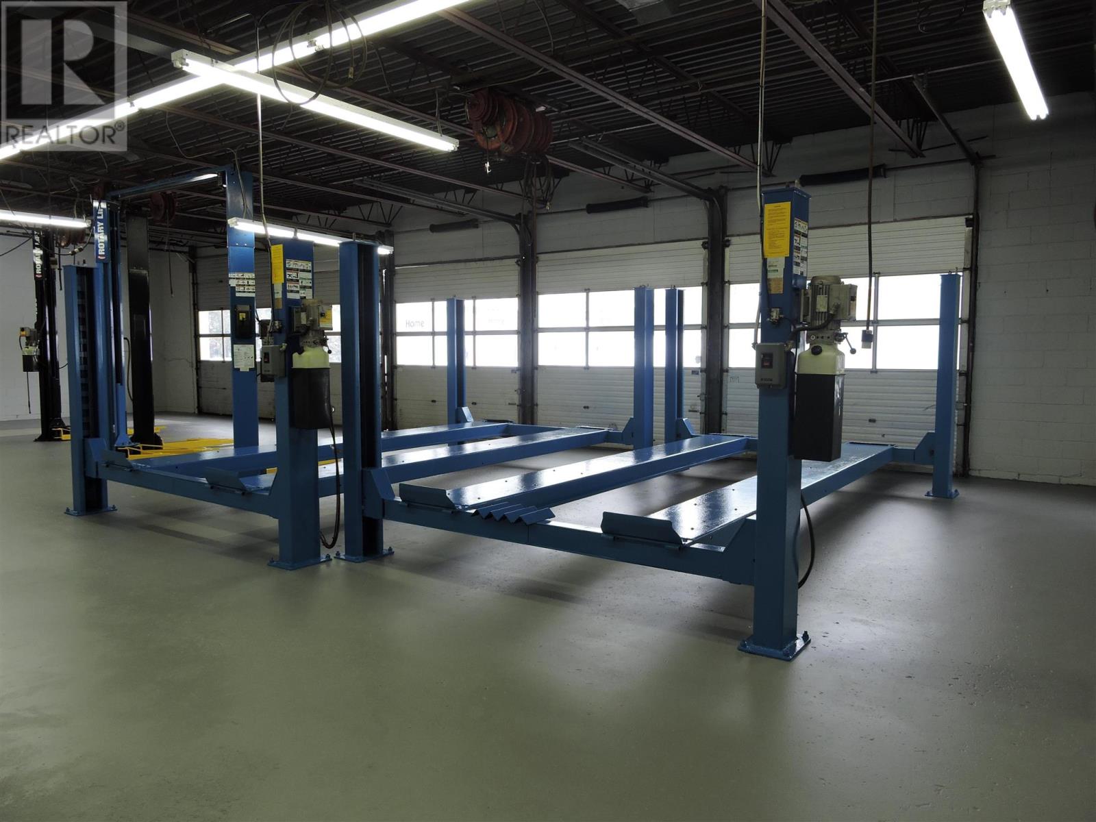 Opportunity to own a solid commercial building in a high traffic/visibility location on Trunk Road in the city's east end. The building is a 5-bay automotive complex plus a reception area, office and 2 bathrooms. Included are 4 automotive car lifts. the building has been extensively upgraded with shop and lifts totally cleaned and freshly painted. The reception and office areas have been thoroughly cleaned and painted as well. This building is totally ready to immediately house an automotive business or the wide open bays area can be repurposed for any number of commercial uses. Make an appointment to personally view this gem for your business. (id:64974)