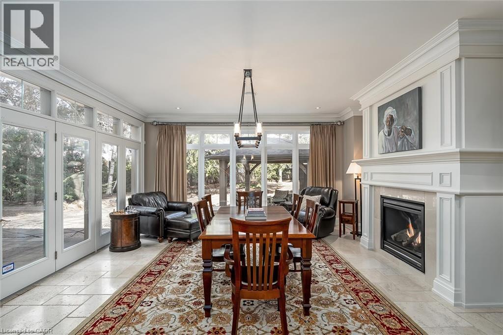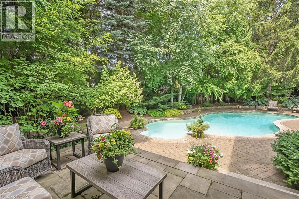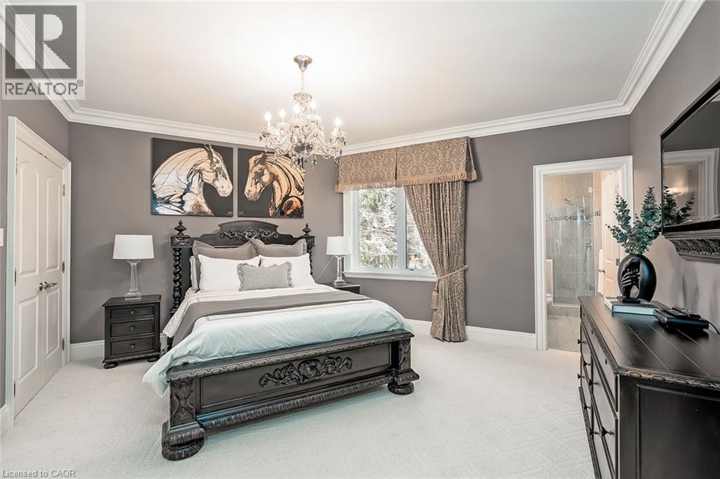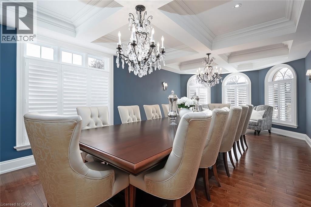 Located in the heart of Burlington’s highly sought-after Roseland community, this stunning 6110 square foot, 7+1 bedroom, 6.5 bath home offers exceptional space and luxury for family living. A grand exterior leads into a spacious interior highlighted by a dramatic two-storey entrance and family room, coffered ceilings in the formal living and dining rooms, and a fully finished lower level complete with a recreation room, wet bar, and games area. Designed with both comfort and functionality in mind, the home features an ensuite or ensuite privilege for every bedroom, a dedicated office, and a convenient main-floor bedroom. The show-stopping kitchen is truly the heart of the home, boasting custom cabinetry, granite countertops, a butler’s pantry, breakfast bar, fireplace, and walkout to the backyard perfect for everyday living and entertaining alike. The primary retreat offers a peaceful escape with cathedral ceilings, his-and-hers closets and a luxurious five-piece ensuite featuring a freestanding jetted tub and double vanities. Equally impressive outdoors, the fully fenced backyard is designed for resort-style enjoyment with an in-ground pool, stone patio, and gazebo, ideal for hosting and family time. Additional premium features include stone countertops throughout, hardwood and stone flooring, high ceilings, plaster moulding on the main and second levels, built-in speakers and dimmers, custom drapery, and a three-car garage equipped with a Tesla charging station. This exceptional Roseland home with 9260 square feet of living space combines elegance and thoughtful design and is an outstanding place to call home and raise a family. (id:64974)