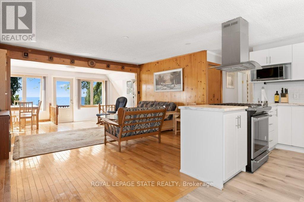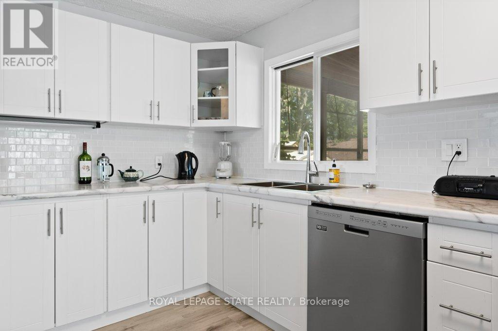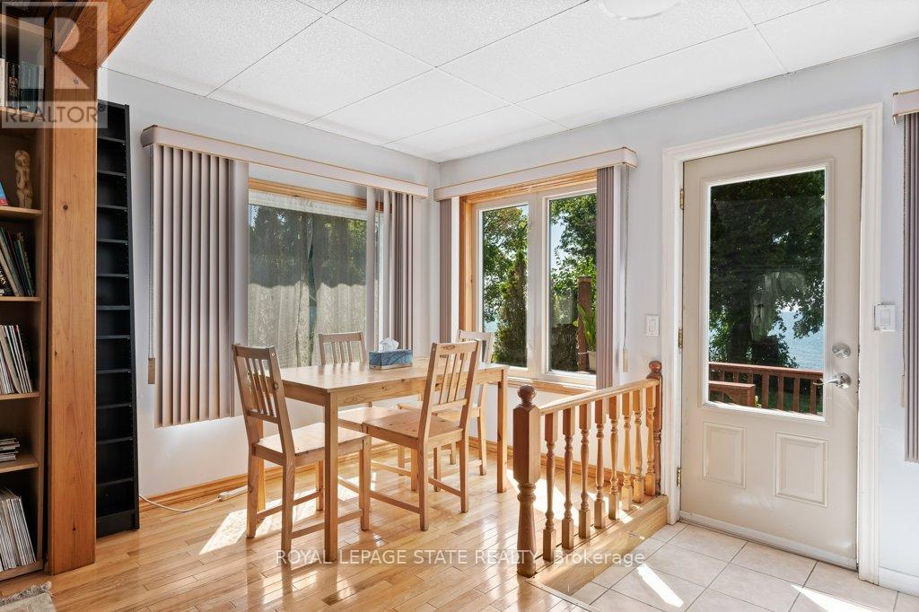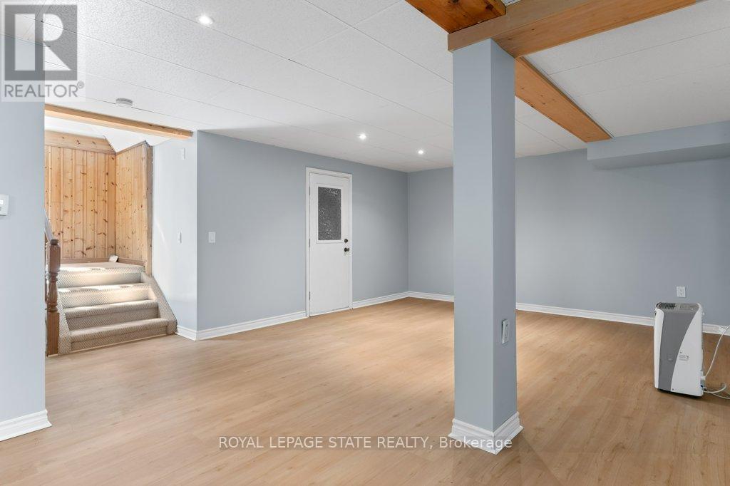 Welcome to the lake! This spacious year round home is nestled on a deep lot and features sandy beach waterfront - perfect for making summer memories. Relax on the concrete patio at the break wall, with metal stairs leading to the soft sand and sparkling water - the gentle slope into the water and sandy beach / bottom make this an ideal location for swimming or launching your paddle board or kayak. Inside the open concept living area is perfect for entertaining friends and family. The kitchen features stainless steel appliances, loads of storage and counter area, and a bright dinette and sunroom spaces to soak in the lake views. The large basement recroom is complete with a cozy fireplace and an additional den or bedroom, an ideal retreat for movie nights or game days. This home boasts thoughtful upgrades including an "Omni" basement system for peace of mind, a durable metal roof, and 1.5 car garage. The paved driveway easily accommodates up to four cars. Step out onto the upper-level deck for your morning coffee, enjoy alfresco dinners on the lower patio, and find serenity at the patio overlooking the lake. Here, every day is a vacation-summer fun, relaxation, and cherished moments await you at the lake! Laundry to be hooked up prior to closing. (id:64974)