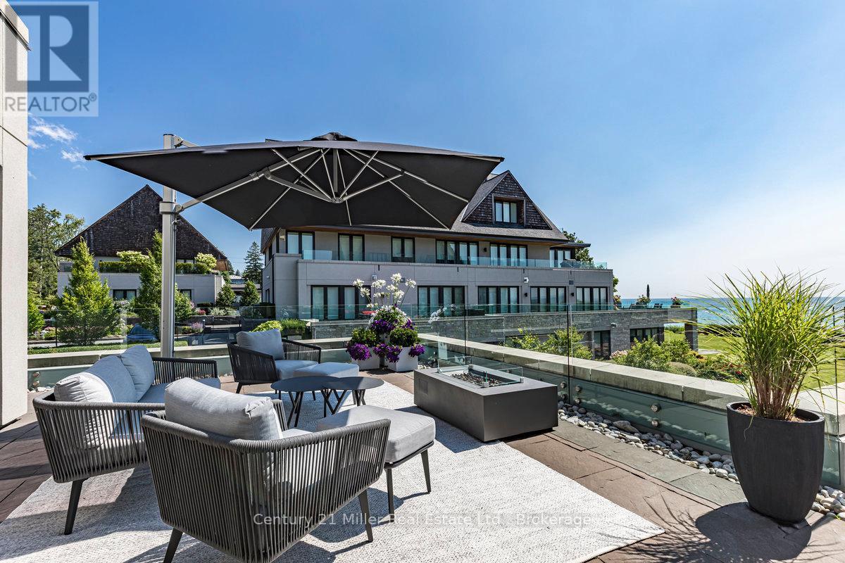 Elegant Lakeside Living in Oakville's Most Exclusive Community. An exquisite luxury residence nestled in one of Oakville's most prestigious enclaves just steps from the lake. This rare offering presents sophisticated single-level living in a boutique community, where timeless architecture meets contemporary comfort. Spanning over 3,000 square feet, this 2-bedroom, 2.5-bath suite offers refined elegance and privacy, featuring soaring ceilings, wide-plank hardwood floors, and oversized windows that flood the space with natural light. The open-concept layout is designed for upscale entertaining and easy everyday living. The gourmet kitchen is a chefs dream, appointed with premium appliances, quartz countertops, custom cabinetry, and a generous island that anchors the heart of the home. The dining and living areas flow seamlessly, complete with a gas fireplace, elegant millwork, and a walkout to a private 1,300+ square foot terrace perfect for morning coffee or evening cocktails. Retreat to the spacious primary suite, showcasing his and her closets as well as a large walk-in closet and a lavish 5-piece ensuite with double vanities, a soaker tub, and a glass-enclosed shower. A well-appointed second bedroom with its own ensuite provides comfort for guests or family. Enjoy direct elevator access to your private vestibule, leading to a two-car garage and dedicated storage room, a rare convenience that enhances the ease of condominium living. This exclusive lakeside community offers a tranquil lifestyle just minutes from downtown Oakville, the marina, waterfront trails, fine dining, and world-class amenities. A refined opportunity for the discerning buyer seeking turnkey luxury in South East Oakville. (id:64974)