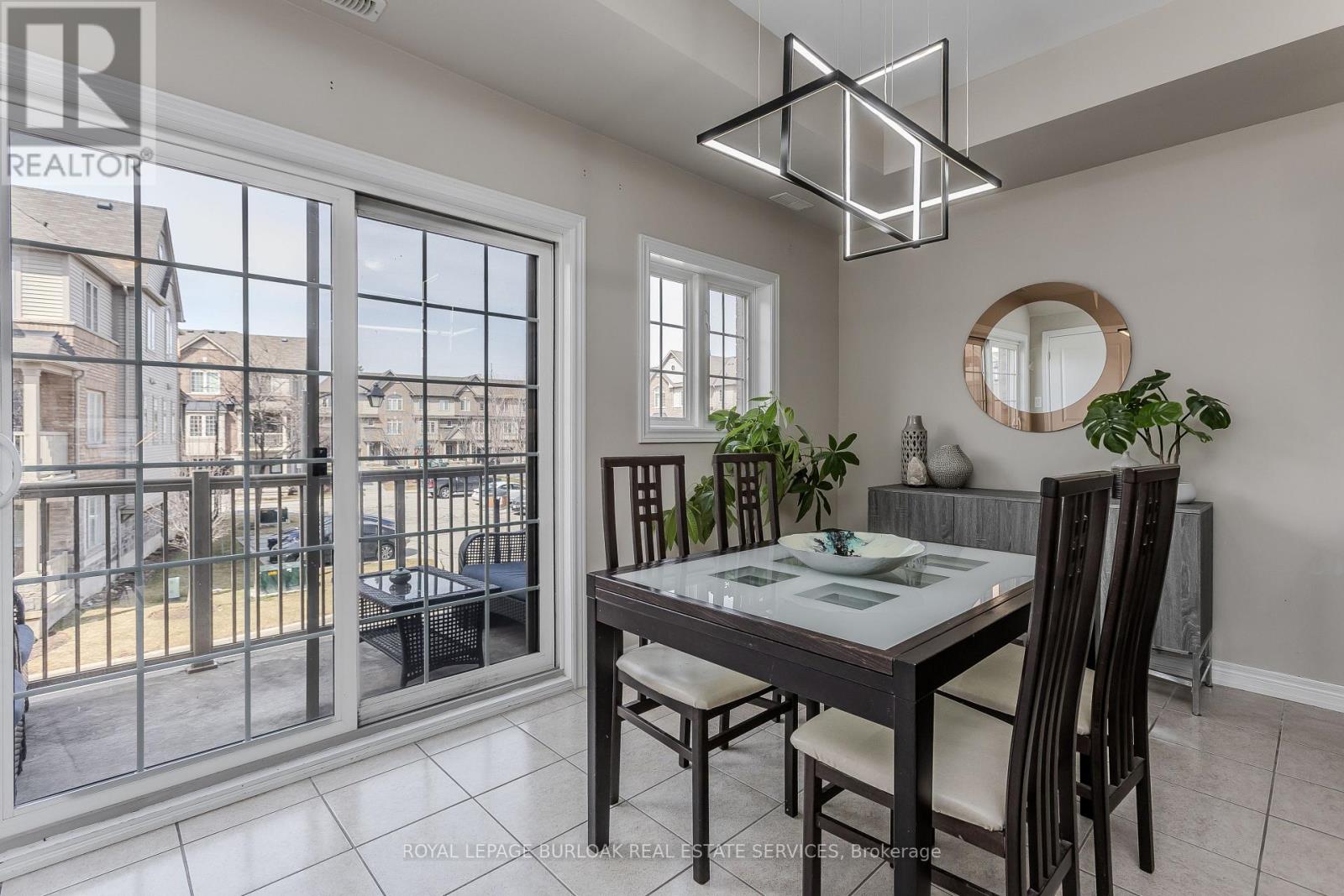Welcome to easy, low-maintenance living in a well-maintained stacked townhouse condo, perfectly suited for first-time buyers, downsizers, or small families looking to enjoy a vibrant lifestyle. Ideally located in a prime Burlington neighbourhood, you're just minutes from the lake, downtown core, shopping, dining, parks, and scenic trails, with quick access to major highways and the GO Station, making daily commuting and weekend outings effortless. This thoughtfully updated home has been freshly repainted throughout and features modern light fixtures, creating a bright and inviting atmosphere from the moment you step inside. The main level offers a welcoming foyer, while the second level showcases a spacious, open-concept layout with hardwood flooring throughout-perfect for both everyday living and entertaining. The expansive living room is filled with natural light and offers plenty of space for cozy movie nights or hosting family and friends. The kitchen is both functional and stylish, complete with stainless steel appliances, rich wood cabinetry, tile backsplash, and a peninsula with ample prep space. The adjoining dining area features a walkout to a private balcony-ideal for enjoying your morning coffee or unwinding at the end of the day. Upstairs, you'll find a spacious primary bedroom with dual closets and a 4-piece ensuite, along with a second well-sized bedroom and an additional full bathroom-perfect for growing families or guests. Convenient bedroom-level laundry adds everyday ease. Enjoy added perks, including a dedicated parking space, visitor parking, and a children's playground right on-site. A fantastic opportunity to step into a connected, lifestyle-driven community with everything you need just moments away. (id:64974)