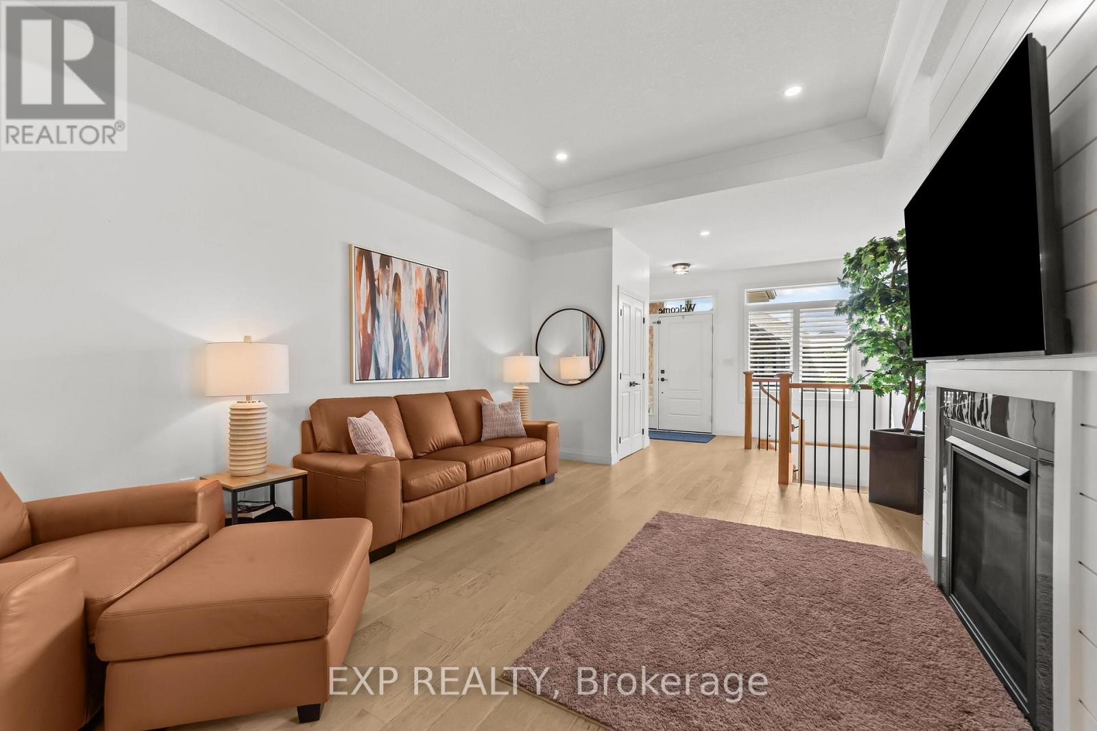Golf course living meets ultimate privacy at 159 Collins Way, Unit 26. This stunning 2+1 bedroom, 3-bathroom condo offers a rare and tranquil setting, backing directly onto a peaceful farmer's field with no rear neighbours. Located just steps from the prestigious Caradoc Sands Golf Course, this home is perfect for those seeking a mix of recreation and serenity. The main floor is bright and inviting, featuring elegant California shutters and an open-concept flow. The fully finished lower level serves as a true retreat, anchored by a massive recreation room with a cozy fireplace. This versatile space includes a dedicated den that is ideal for a home office, as well as a spacious third bedroom featuring fresh paint and updated trim. The basement bathroom has been enhanced with new glass shower doors, and new easy-blinds have been installed throughout the lower level. Even the garage has been meticulously refreshed with all old shelving removed and walls repaired for a clean, like-new finish. Experience a turnkey lifestyle with premium privacy in one of Strathroy's most sought-after locations! (id:64974)