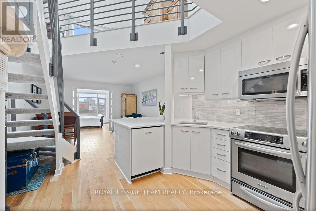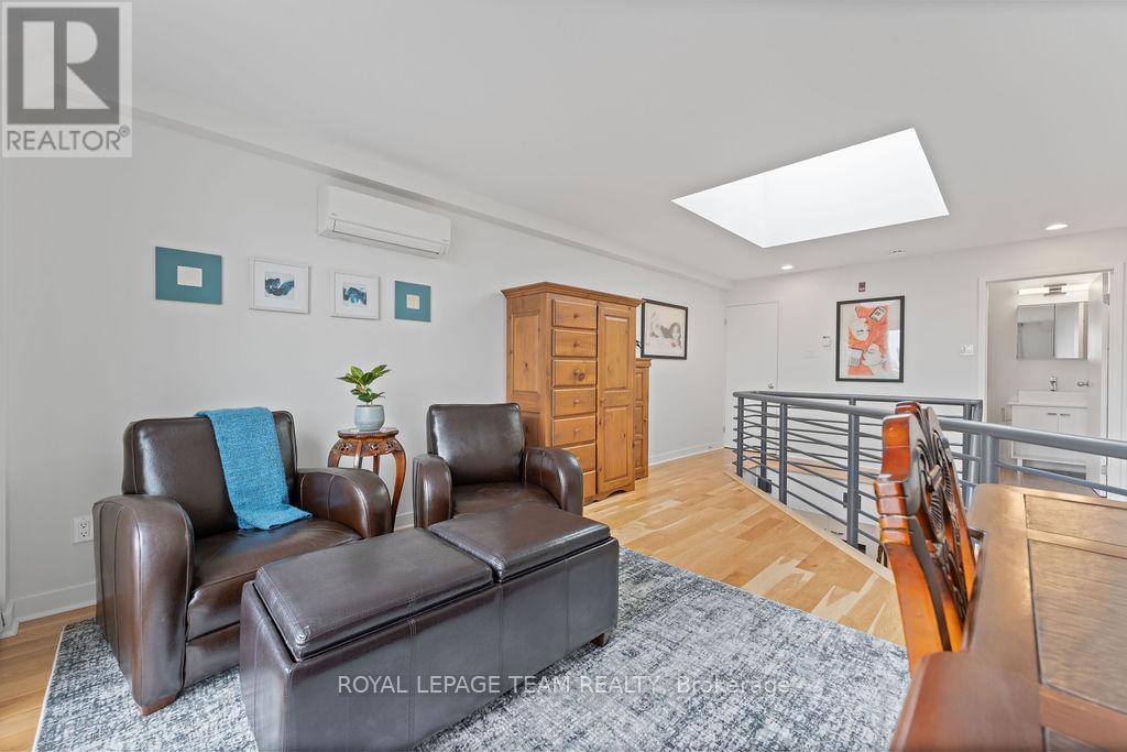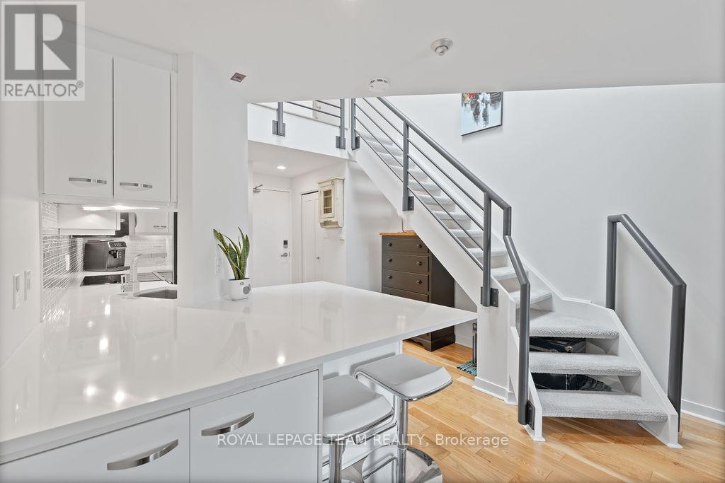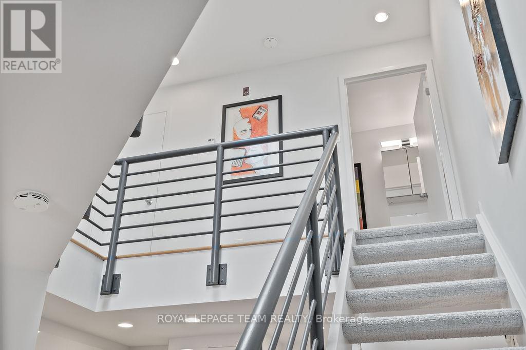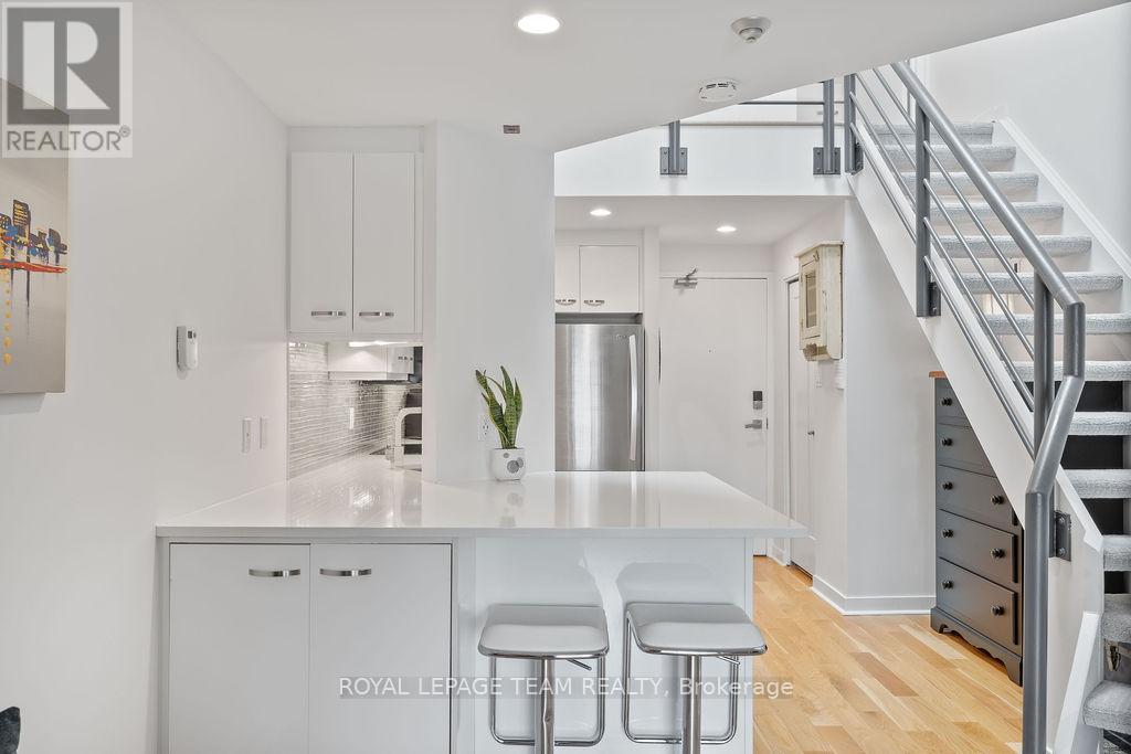 URBAN VIBES - LOFT LIVING! Exactly the lifestyle you've been dreaming of with this rarely available, ultra-stylish two-storey loft condo in the heart of Ottawa. Wake up to soft natural light streaming in and enjoy your morning coffee on a private terrace overlooking the iconic Notre Dame Cathedral Basilica. Right outside your door, explore a neighbourhood that has it all: from gourmet dining to casual bites, boutique shops to a shopping mall, hidden courtyards, art galleries, live music, and vibrant street life. Located steps from the NAC, Rideau Centre and LRT, with easy access to bike paths and public transit, you're truly connected to everything Ottawa's core has to offer. Step inside and feel the good vibes! The space is bright, open, and thoughtfully curated for modern living. Entertain with ease in the airy main level, or unleash your inner chef in the sleek kitchen, finished with quartz countertops. The second bedroom offers flexible functionality perfect as a home office/den, guest suite, additional living space or a cozy reading nook. Upstairs, the lofted primary suite serves as your private urban retreat, complete with a walk-in closet, a stylish 3-piece bathroom, and natural light cascading from a rooftop skylight. Additional highlights include : huge skylight, in-unit all-in-one laundry, heated designated underground parking, hardwood throughout, open and a spacious terrace. This turnkey, low-maintenance, lock-and-leave condo is ideal for professionals, creatives, or anyone seeking the vibrant downtown lifestyle with a refined sense of style. Every detail of this residence is crafted for elevated city living! (id:64974)