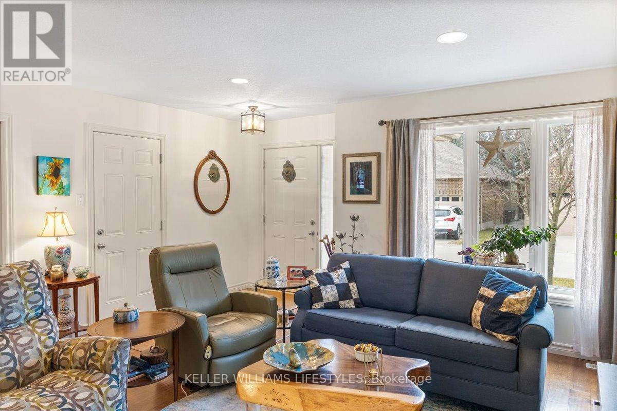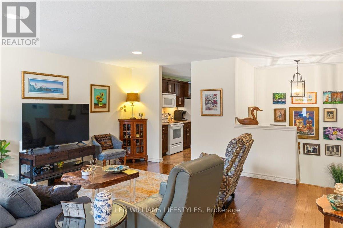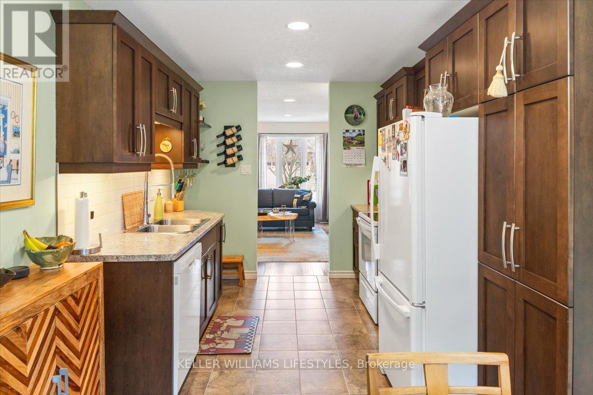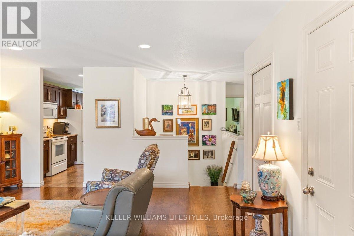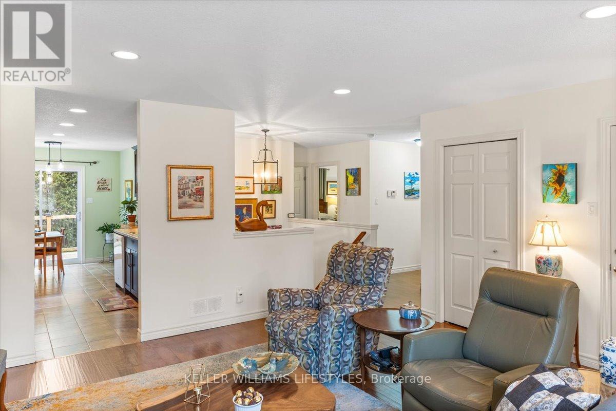 This well-maintained, move-in ready, all-brick vacant land condo has everything you need on one level, including main floor laundry and a bright and inviting living room with stunning engineered hardwood flooring. The kitchen is complete with appliances and boasts plenty of space for cooking and preparing meals. The eating area includes a patio walkout to the backyard with a 10 x12 wood deck, perfect for enjoying summer evenings. The home features two spacious bedrooms, including a primary bedroom with cheater en-suite privileges to the 3 piece bath with wheel-in glass shower. The lower level is finished with a 3pc bathroom and plenty of storage space. Additional features of the home include, single car garage, beautiful landscaping and includes fridge, stove, dishwasher, washer, dryer and backyard storage shed! This is a wonderful opportunity to own a beautiful and low-maintenance home in a great location, with easy access to amenities and all of what lovely Strathroy has to offer, like shopping, the dog park, downtown, the 402 and recreation. This home is truly a must see! Low monthly maintenance fee of $113.95. (id:64974)