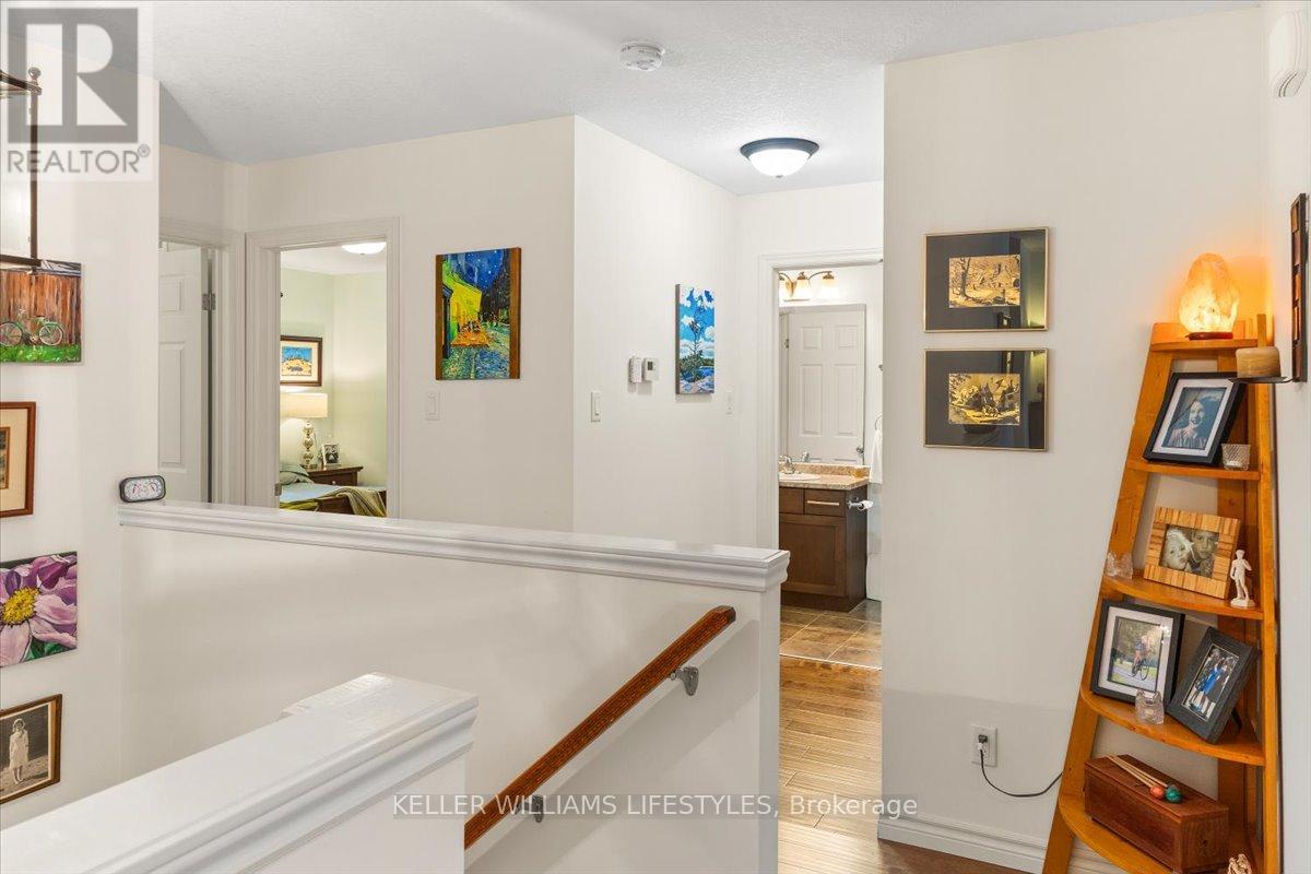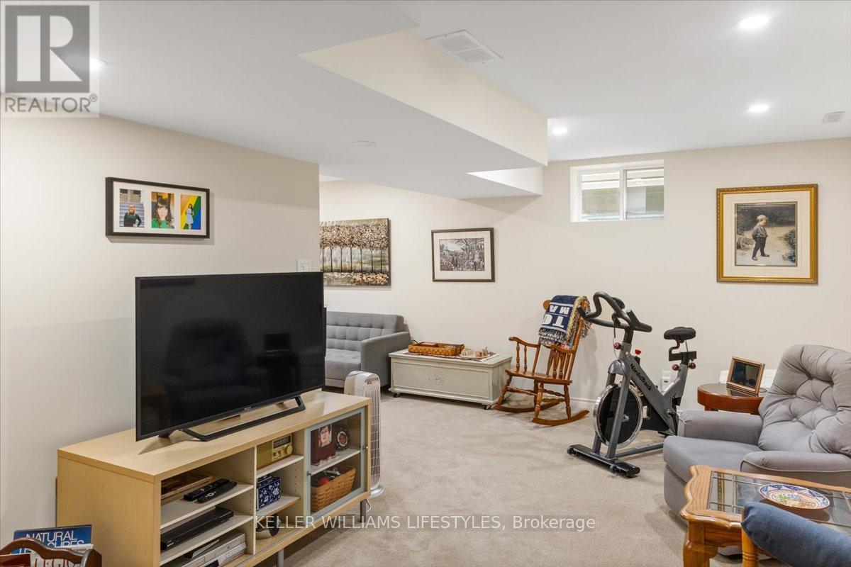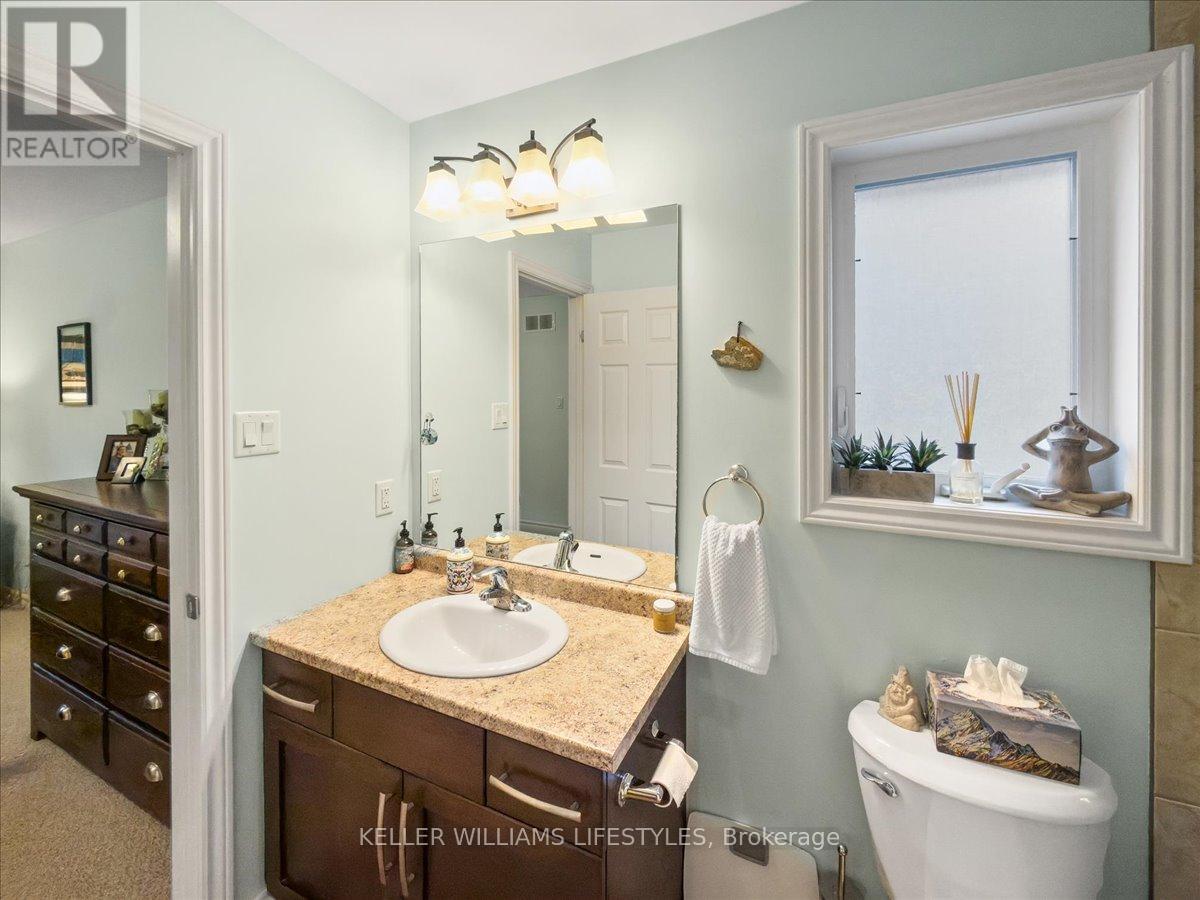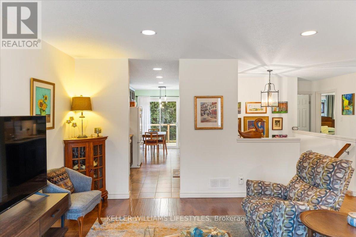 This well-maintained, move-in ready, all-brick vacant land condo has everything you need on one level, including main floor laundry and a bright and inviting living room with stunning engineered hardwood flooring. The kitchen is complete with appliances and boasts plenty of space for cooking and preparing meals. The eating area includes a patio walkout to the backyard with a 10 x12 wood deck, perfect for enjoying summer evenings. The home features two spacious bedrooms, including a primary bedroom with cheater en-suite privileges to the 3 piece bath with wheel-in glass shower. The lower level is finished with a 3pc bathroom and plenty of storage space. Additional features of the home include, single car garage, beautiful landscaping and includes fridge, stove, dishwasher, washer, dryer and backyard storage shed! This is a wonderful opportunity to own a beautiful and low-maintenance home in a great location, with easy access to amenities and all of what lovely Strathroy has to offer, like shopping, the dog park, downtown, the 402 and recreation. This home is truly a must see! Low monthly maintenance fee of $113.95. (id:64974)