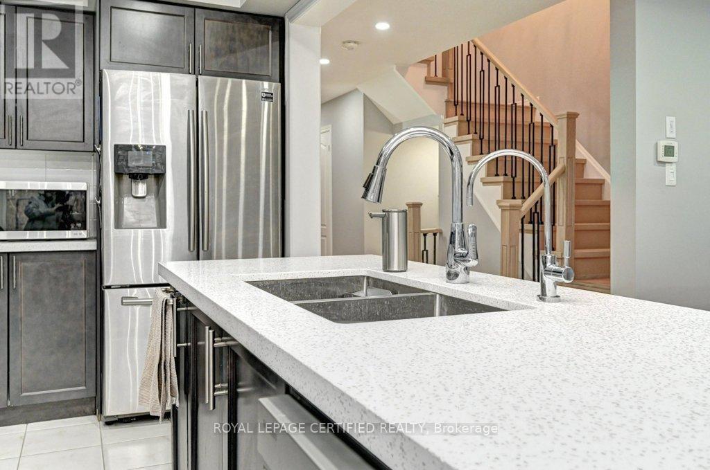 Gorgeous, sun-filled 3-bedroom, 3-bathroom townhouse offering approximately 1,755 sq. ft. of beautifully upgraded living space, ideally situated on a premium ravine lot in a highly sought-after family neighbourhood.Step inside to an open-concept main floor featuring flooring, Leminate Floor Fresh modern paint, and a tastefully decorated interior that exudes warmth and elegance. The upgraded kitchen boasts Quartz countertops, Back Splash , stainless steel appliances, and a centre island overlooking the spacious living and dining areas-perfect for entertaining family and friends.Upstairs, enjoy a luxurious primary bedroom complete with a 4-piece ensuite and a walk-in closet, along with generously sized secondary bedrooms and the convenience of second-floor laundry.Additional highlights include direct access from the home to the garage, modern finishes throughout, and thoughtful upgrades that elevate everyday living.Step outside to your private backyard oasis backing onto a forested ravine, offering breathtaking natural views, enhanced privacy, and tranquility-a rare find! Prime location just minutes to Hwy 401 & Hwy 8, making commuting effortless. Close to parks, trails, the Grand River, shopping, grocery stores, and all essential amenities. Walking distance to Conestoga College (Doon & Cambridge Campuses).Perfect for families, first-time buyers, or investors seeking a move-in-ready home in a high-demand area. (id:64974)