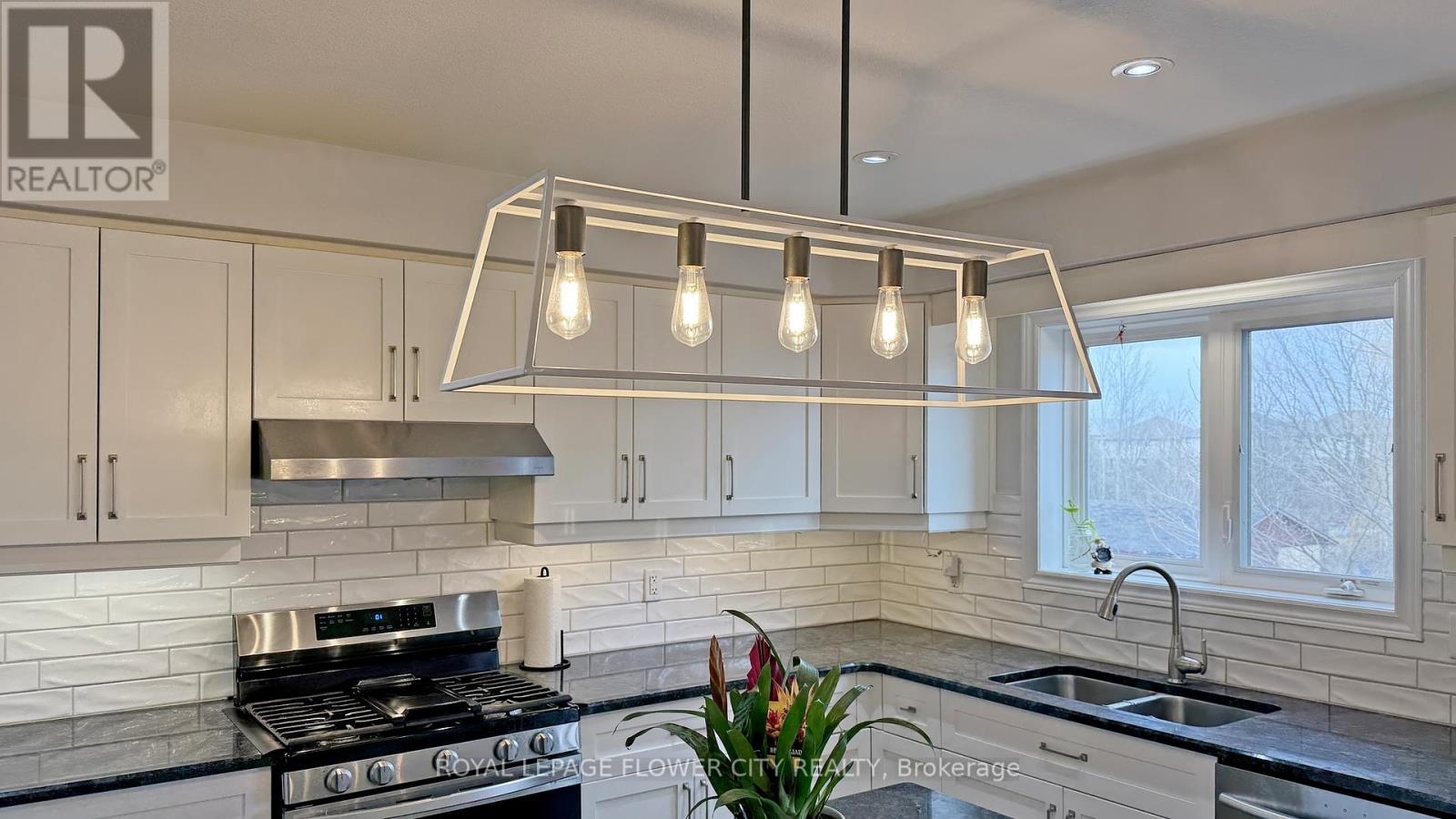 Executive condo townhouse in the modern Natura complex, offering move in ready living with clear pride of ownership. Built in 2016, this home features a spacious eat in kitchen with granite countertops, upgraded backsplash, stainless steel appliances, and a new 2025 gas stove. The dinette opens to a lovely deck overlooking the backyard. The bright living room includes hardwood floors and large windows, with a convenient powder room on the main level. Upstairs is a spacious, carpet-free primary bedroom with a walk in closet, massive windows, hardwood floors, and a 4 pc ensuite, plus two additional bedrooms and a 4 pc main bath. The finished walkout basement adds a bright recreation room with access to the fenced yard. Recent upgrades include zebra blinds (2025) and a new water heater (2025). Located on a quiet, family oriented street near parks, schools, grocery stores, LCBO, Victoria Road Rec Centre, East Guelph Medical Clinic, Guelph Lake, and transit routes 13, 17, and 18. (id:64974)