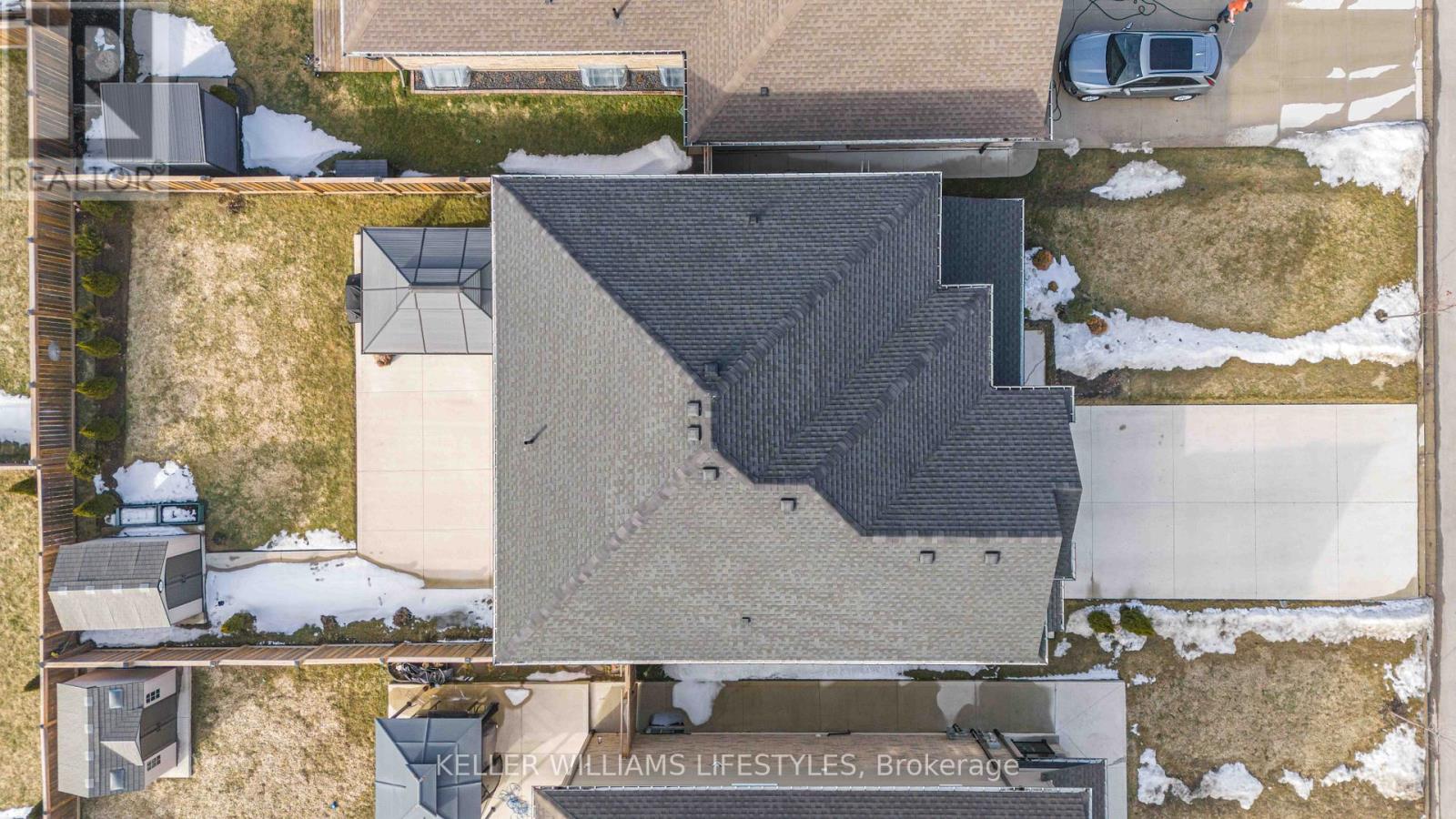 Welcome to 26 Ambrosia Path in St. Thomas, a beautifully upgraded 2021-built home by Collier Homes offering over 2,500 sq. ft. of above-grade living space designed for modern family living. From the moment you step inside, you're greeted by soaring ceilings, abundant natural light, and a thoughtfully designed layout that perfectly balances style and functionality. The main floor features a dedicated office ideal for working from home and a stunning open-concept kitchen, dining, and living area that feels both spacious and inviting-perfect for everyday living and entertaining. The large kitchen offers ample counter space, upgraded high-end appliances with features such as a built-in air fryer, and a convenient walk-in pantry for excellent storage, while elegant California shutters throughout the main floor add a refined touch of style and privacy. Upstairs you'll find four generously sized bedrooms, including a spacious primary retreat complete with a luxurious 5-piece ensuite and two walk-in closets. Two of the remaining three bedrooms also feature walk-in closets, offering exceptional storage, while second-floor laundry provides everyday convenience right where you need it. Step outside to the beautifully landscaped backyard featuring a large concrete patio ideal for summer gatherings, a charming gazebo for relaxing evenings, and a storage shed for added functionality. The exterior upgrades continue with custom lighting, a 4-car concrete driveway, and a concrete walkway leading to the backyard. The basement is already framed and includes high ceilings and oversized windows that allow plenty of natural light, creating the perfect blank canvas to easily finish to suit your needs. With quality construction, thoughtful upgrades, and incredible space inside and out, this move-in ready home offers an exceptional opportunity to enjoy comfortable modern living in one of St. Thomas' most sought-after and growing family-friendly communities. (id:64974)
