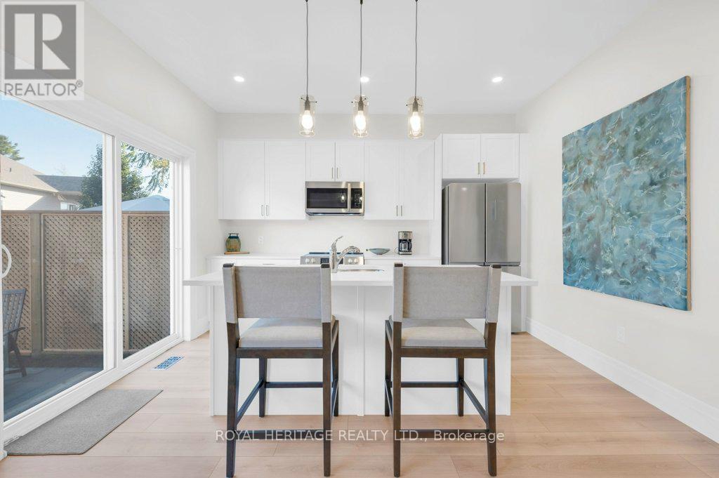 Welcome to this pristine, sun-filled corner townhouse unit in one of Picton's newer communities, just steps to vibrant Main Street. Offering modern style, added privacy, and an unbeatable location, this freehold townhome has no monthly fees and is move-in ready. Spanning approximately 1,200 sq. ft. across two bright storeys, the home features 3 spacious bedrooms and 3 bathrooms, including a private 3-piece ensuite. The thoughtfully designed staircase to the second level includes an intermediate landing, creating an easier, more comfortable ascent. The open-concept main floor boasts 9-foot ceilings, creating an airy, light-filled living space. The contemporary kitchen is finished with upgraded quartz countertops and newer stainless steel appliances, including fridge, stove, dishwasher, and built-in microwave. Step outside to your private backyard retreat, complete with a new privacy fence and custom wooden garden beds-perfect for relaxing or gardening. As an end unit, enjoy extra windows, more natural light, and yard space. The second floor offers 3 generously sized bedrooms and convenient laundry. The unfinished basement is roughed-in for a future bathroom, providing excellent potential for added living space. Ideal for families, downsizers, or investors, this turnkey home is set in sought-after Prince Edward County, known for its wineries, beaches, breweries, and relaxed lifestyle. With the Millennium Trail steps away and downtown Picton's shops, cafs, and amenities within walking distance, this home offers the perfect blend of comfort and convenience. (id:64974)