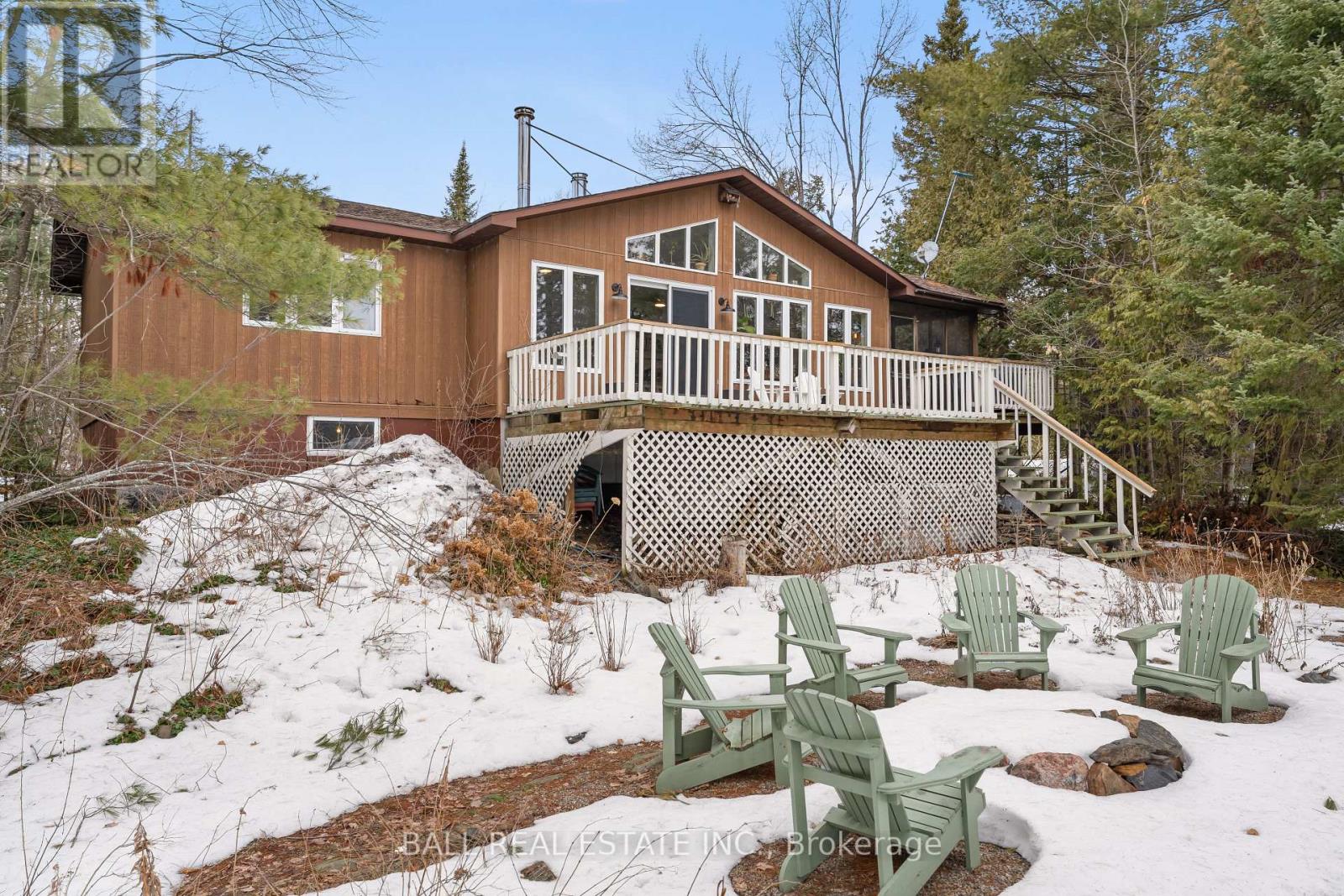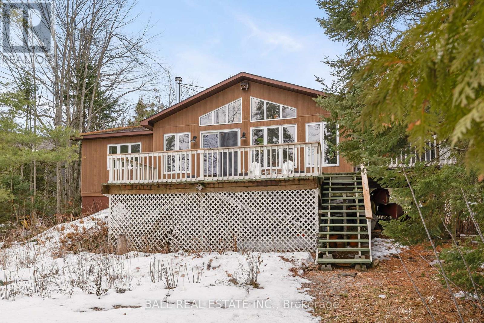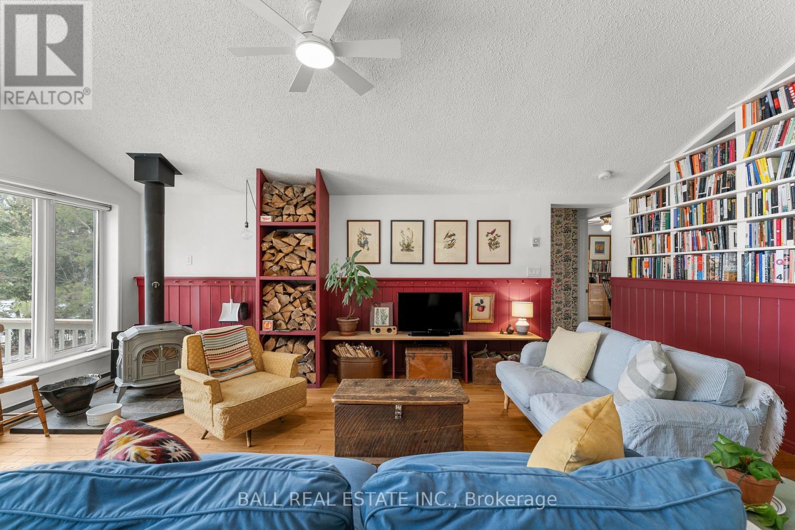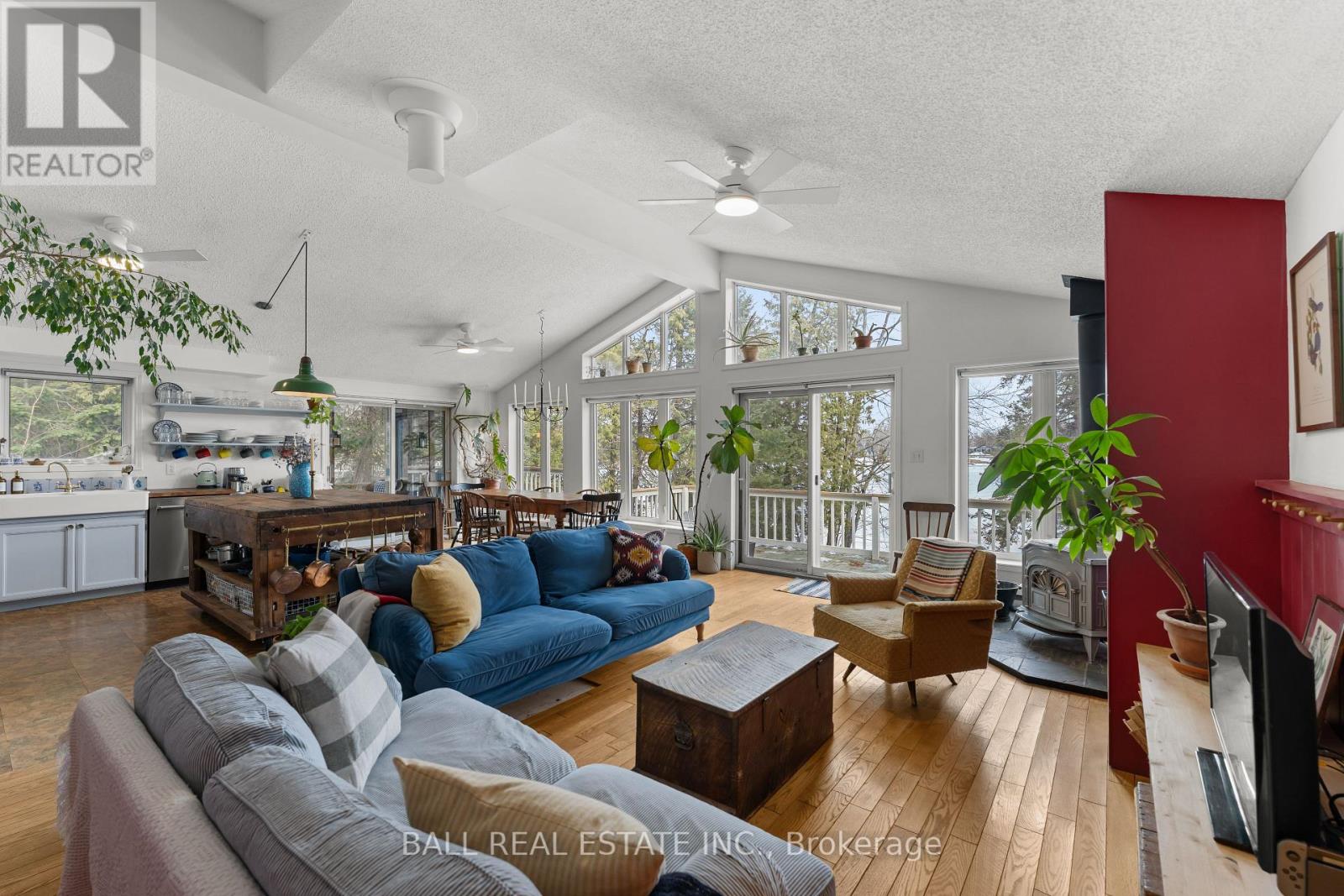 Welcome to this inviting four-season home or cottage on the Trent-Severn Waterway, ideally located just 15 minutes from both Bobcaygeon and Buckhorn. Set on a municipally maintained year-round road, this Royal Home raised bungalow offers 110 feet of sandy waterfront on Big Bald Narrows, connecting Little Bald Lake and Big Bald Lake-perfect for boating, swimming, and enjoying cottage country living. The main level features a bright open-concept kitchen, living, and dining area designed for easy entertaining. The living room is anchored by a Vermont Castings wood stove and patio doors that lead to a lakeside deck, creating a warm and welcoming space to relax after a day on the water. The dining area opens into a charming screened-in room, ideal for enjoying quiet evenings outdoors. Three bedrooms, including a spacious primary bedroom, and a four-piece bathroom complete the main floor. Built with energy efficiency in mind, the home features R-2000 insulation. The full, unfinished basement provides laundry, utilities, and excellent potential for additional living space or storage. Outside, the beautifully landscaped property features perennial gardens connected by thoughtfully designed garden paths, creating a peaceful outdoor setting. A fire pit area provides the perfect spot to gather with family and friends under the stars. In the spring and summer months, the mature trees surrounding the property offer exceptional privacy and create a unique "treehouse-like" feeling from the elevated home. An existing dock makes it easy to get out and explore the Trent-Severn Waterway. Serviced by a drilled well, septic system, and owned water treatment system, this wonderful waterfront property is ready for its next owners to enjoy year-round. (id:64974)