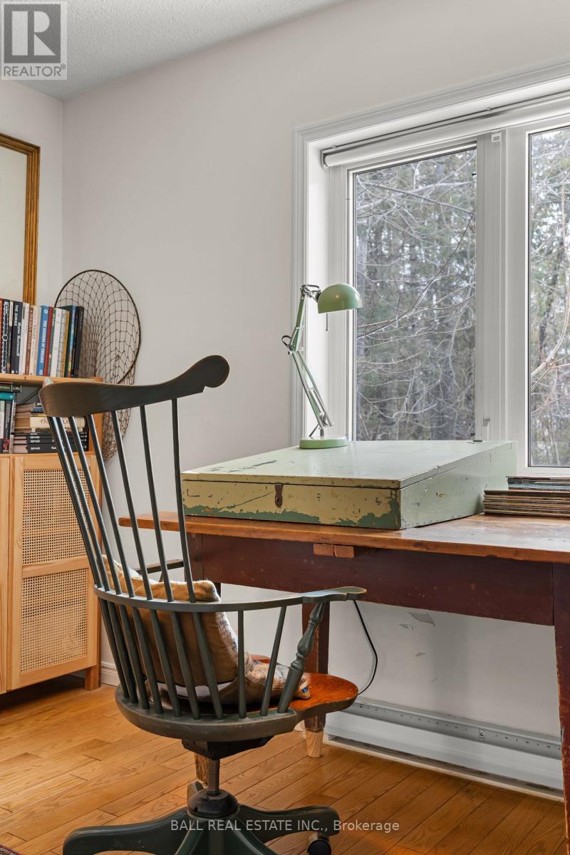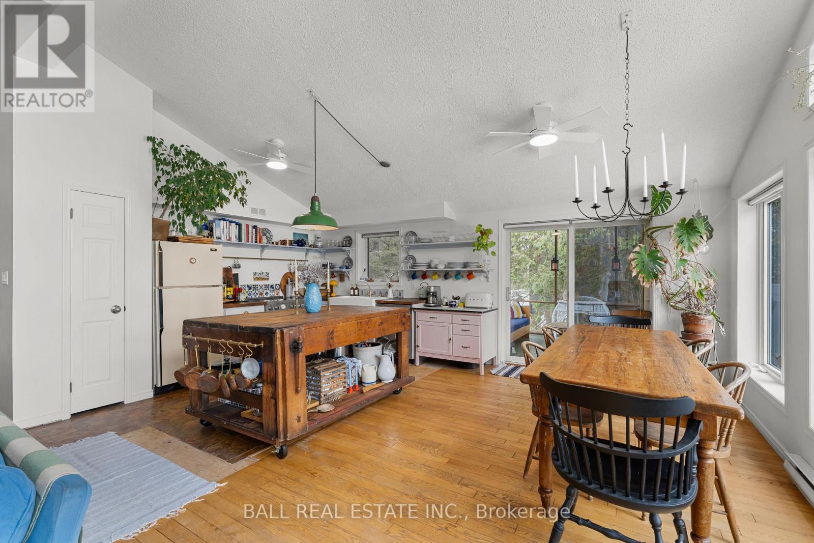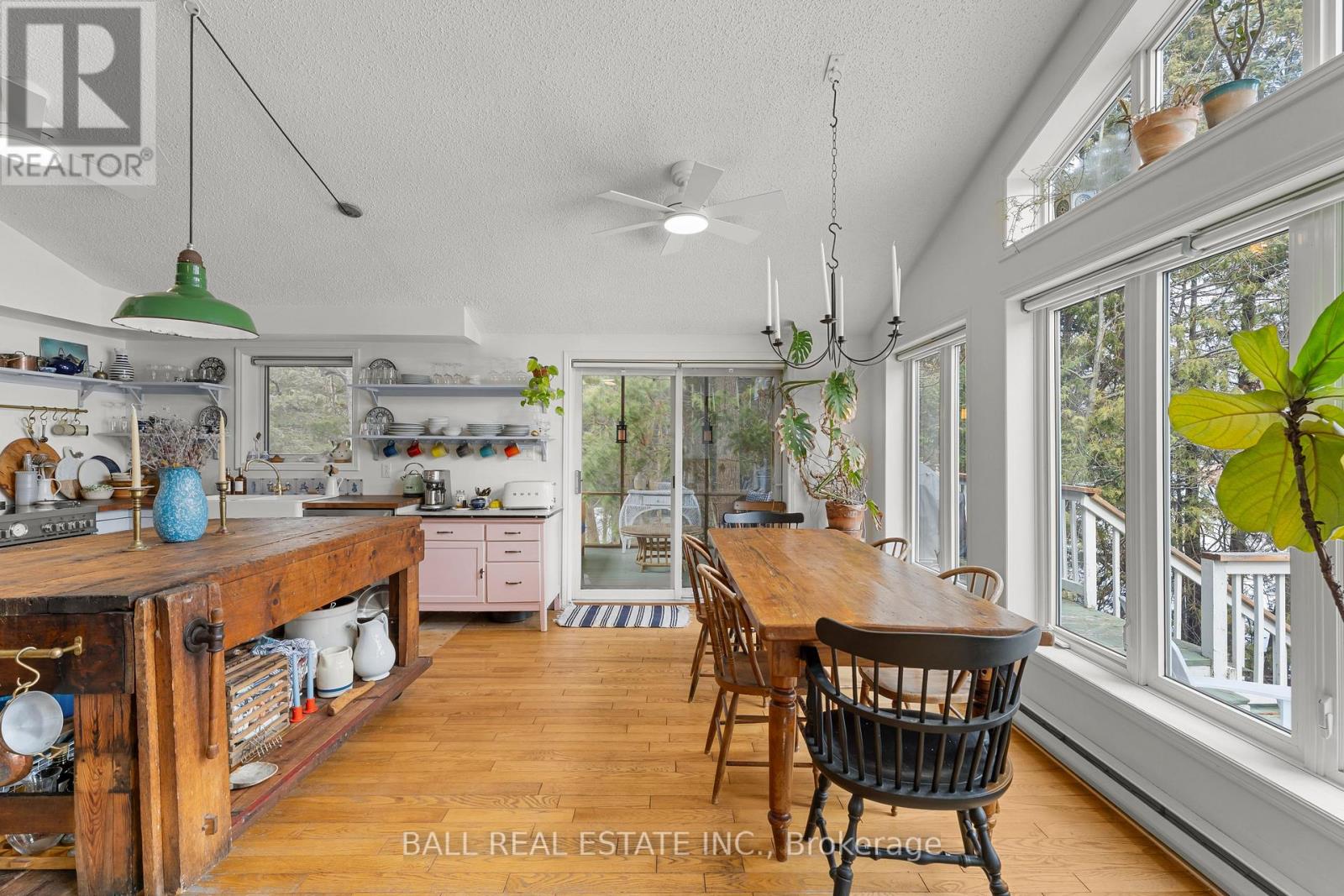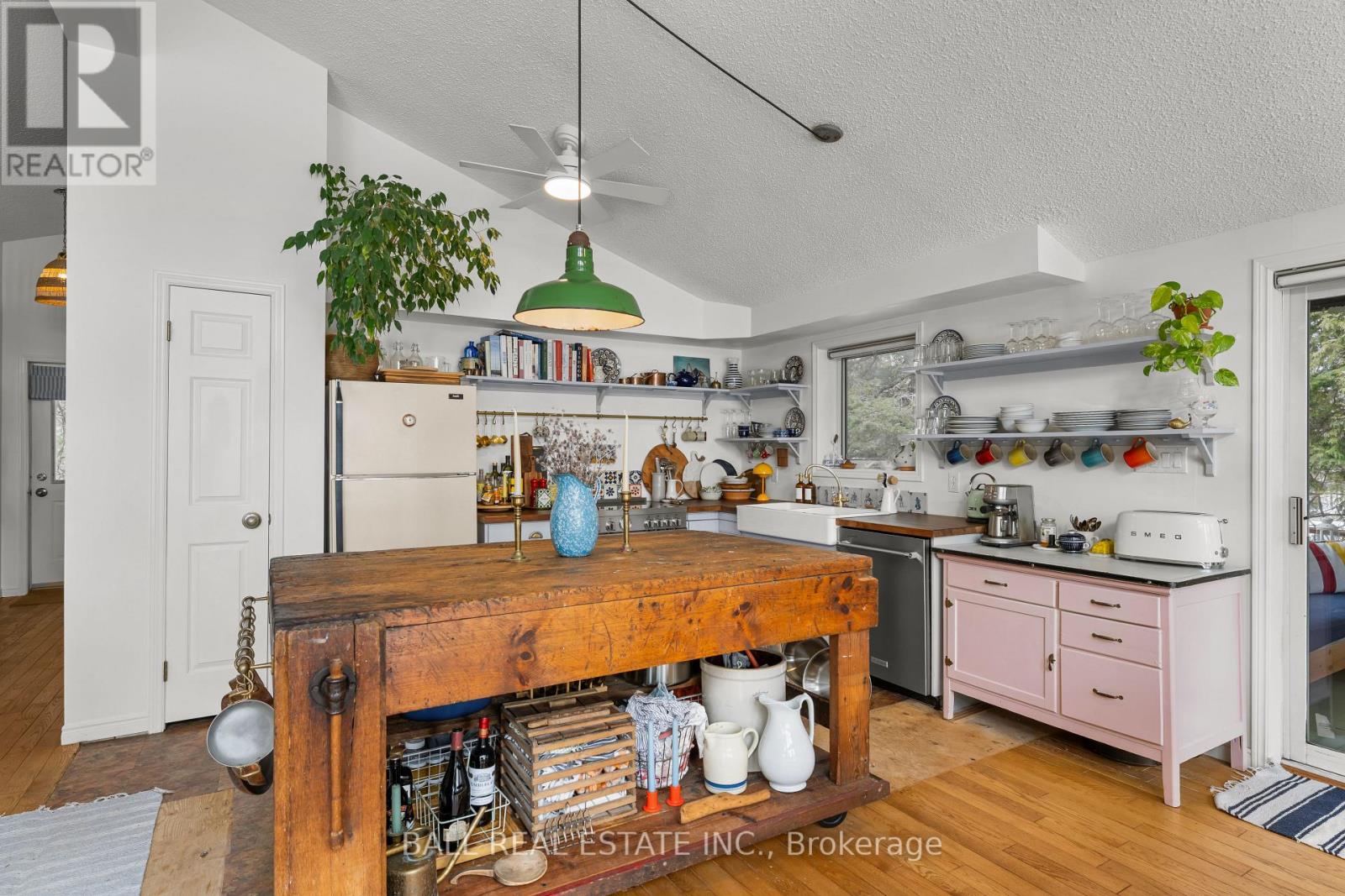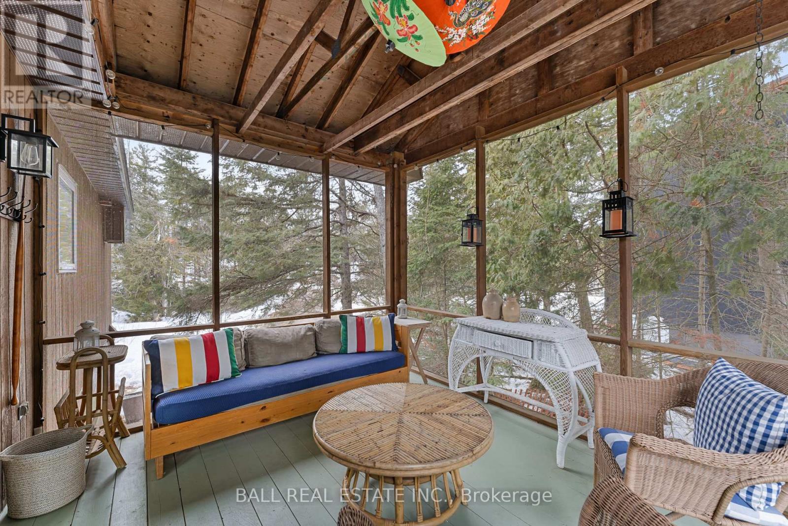 Welcome to this inviting four-season home or cottage on the Trent-Severn Waterway, ideally located just 15 minutes from both Bobcaygeon and Buckhorn. Set on a municipally maintained year-round road, this Royal Home raised bungalow offers 110 feet of sandy waterfront on Big Bald Narrows, connecting Little Bald Lake and Big Bald Lake-perfect for boating, swimming, and enjoying cottage country living. The main level features a bright open-concept kitchen, living, and dining area designed for easy entertaining. The living room is anchored by a Vermont Castings wood stove and patio doors that lead to a lakeside deck, creating a warm and welcoming space to relax after a day on the water. The dining area opens into a charming screened-in room, ideal for enjoying quiet evenings outdoors. Three bedrooms, including a spacious primary bedroom, and a four-piece bathroom complete the main floor. Built with energy efficiency in mind, the home features R-2000 insulation. The full, unfinished basement provides laundry, utilities, and excellent potential for additional living space or storage. Outside, the beautifully landscaped property features perennial gardens connected by thoughtfully designed garden paths, creating a peaceful outdoor setting. A fire pit area provides the perfect spot to gather with family and friends under the stars. In the spring and summer months, the mature trees surrounding the property offer exceptional privacy and create a unique "treehouse-like" feeling from the elevated home. An existing dock makes it easy to get out and explore the Trent-Severn Waterway. Serviced by a drilled well, septic system, and owned water treatment system, this wonderful waterfront property is ready for its next owners to enjoy year-round. (id:64974)
