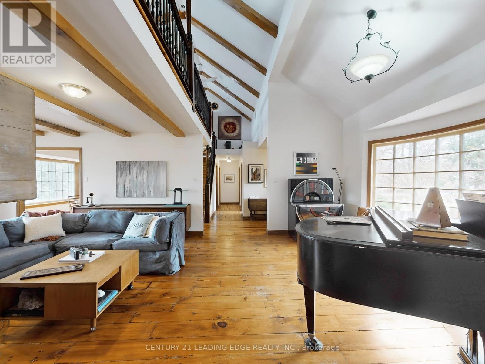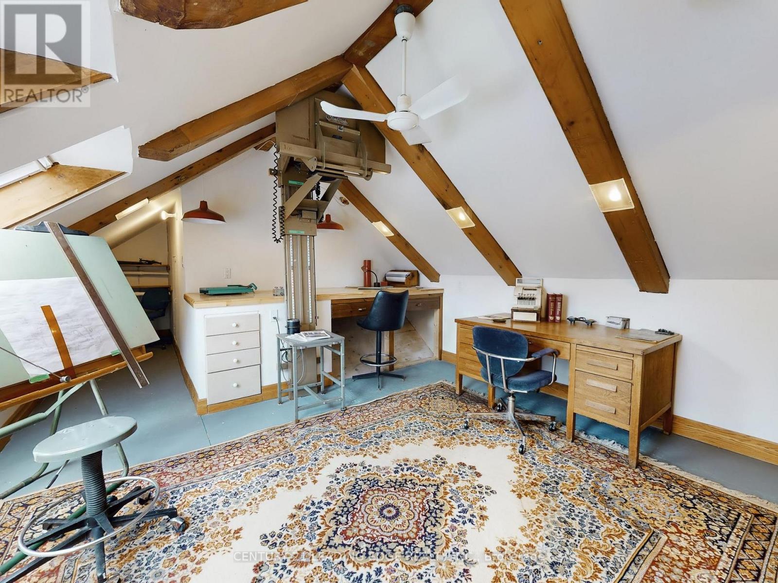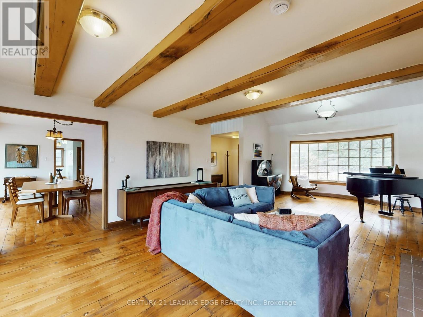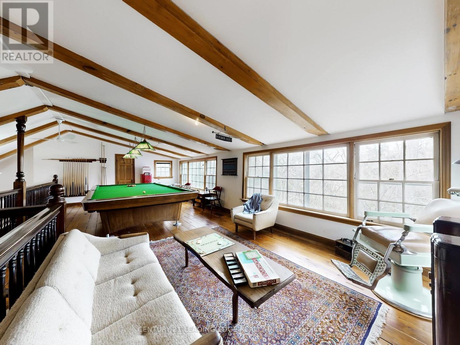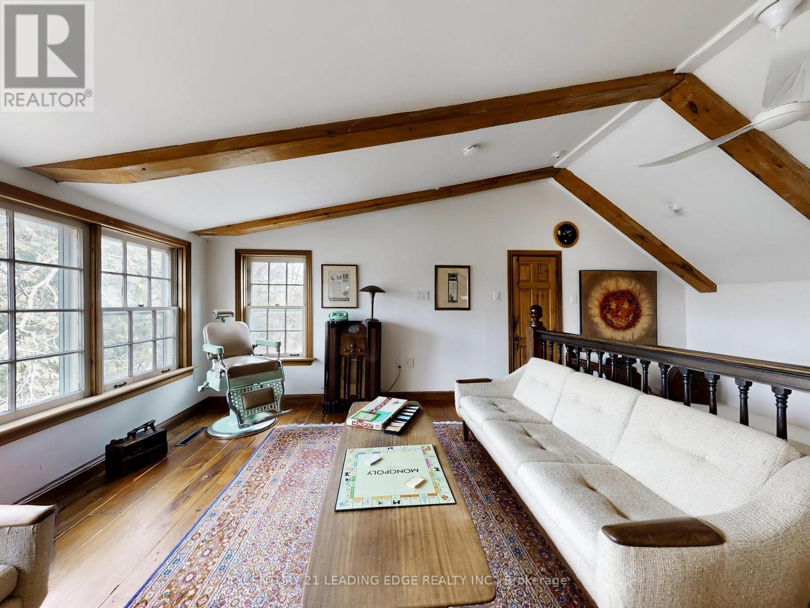 Welcome to 26 Church Lane, affectionately known as The Cranberry House, a truly special residence in historic Thornhill. Set on a secluded lot backing onto a picturesque, wooded ravine overlooking the golf course, this remarkable home offers approximately 3,022 sq ft of elegant main floor living surrounded by lush greenery and complete privacy. Located within the Thornhill Heritage Conservation District, the property carries a rich legacy tied to Sir Robert Watson-Watt, inventor of radar, and features beautifully curated English-style gardens designed by Roland Barnsley.The thoughtfully designed main level offers 4 spacious bedrooms and a convenient combined laundry and powder room. The primary retreat includes a 3-piece ensuite and his-and-hers closets, while the second bedroom features a charming double-sided wood-burning fireplace. A bright eat-in kitchen walks out to a serene private garden with tranquil ravine views-perfect for relaxing or entertaining. The upper loft provides versatile space for entertaining, with potential for a study or home office. Additional highlights include a built-in 2-car garage and a detached 3-car garage with loft-ideal for a workshop, studio, or creative space. Ideally located minutes to parks, golf, top-rated schools, community centres, Yonge Street amenities, transit, and highways 407/404.A rare offering blending history, nature, and refined living-this is a home unlike any other. **Reference Plan Available Under Attachments ** (id:64974)