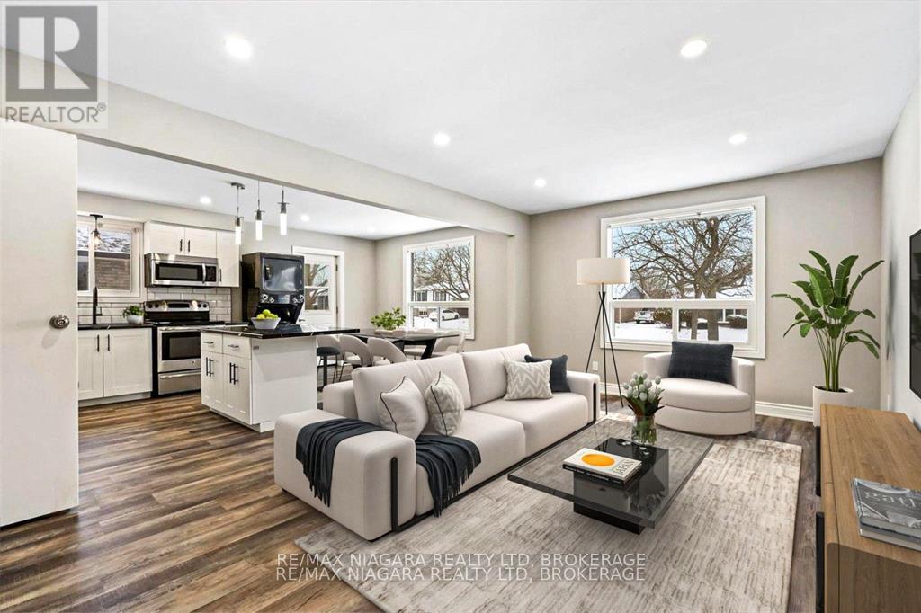 Welcome to this stunning 4-level backsplit located in Welland. A perfect single family or investment property. Featuring 3+1 bedrooms, 2 kitchens and 2 full bathrooms. This spacious and thoughtfully upgraded home offers the perfect blend of comfort, functionality, and style. Step inside to a bright open-concept main floor, complete newer flooring throughout, a spacious living and dining area with large windows, and a large modern kitchen featuring stainless steel appliances and sleek finishes. Upstairs, you'll find three bright and inviting bedrooms and a full bathroom, perfect for families of all sizes. The separate lower level offers incredible versatility with a cozy family room, an additional bedroom, a 3-piece bath, and a convenient walk-out to the backyard, ideal for in-laws, guests, or a home office. Enjoy outdoor living with a spacious deck overlooking a large backyard, perfect for relaxing or entertaining. The home also includes an asphalt driveway and a welcoming curb appeal. *6 photos are virtually staged. (id:64974)