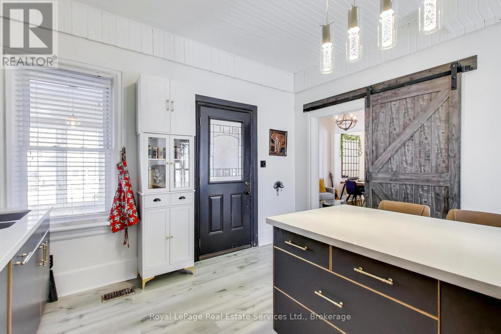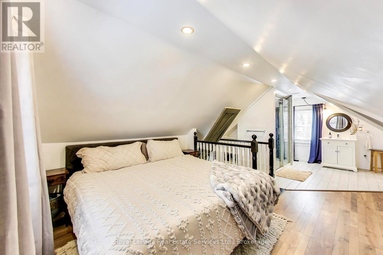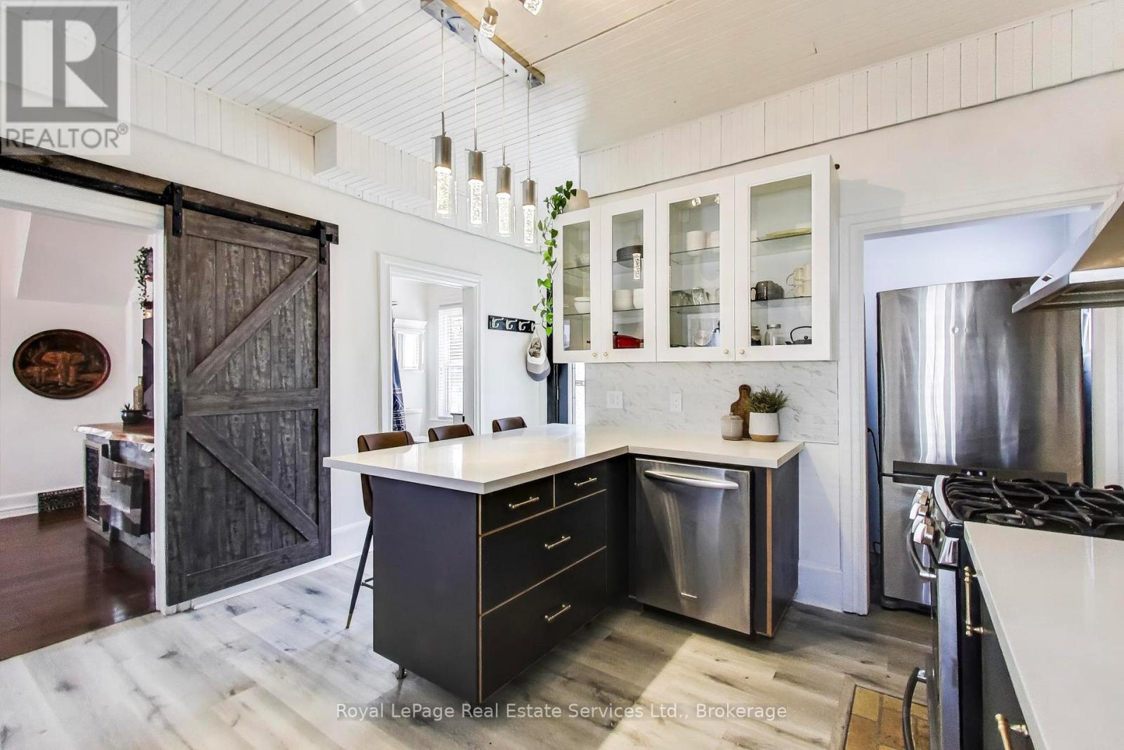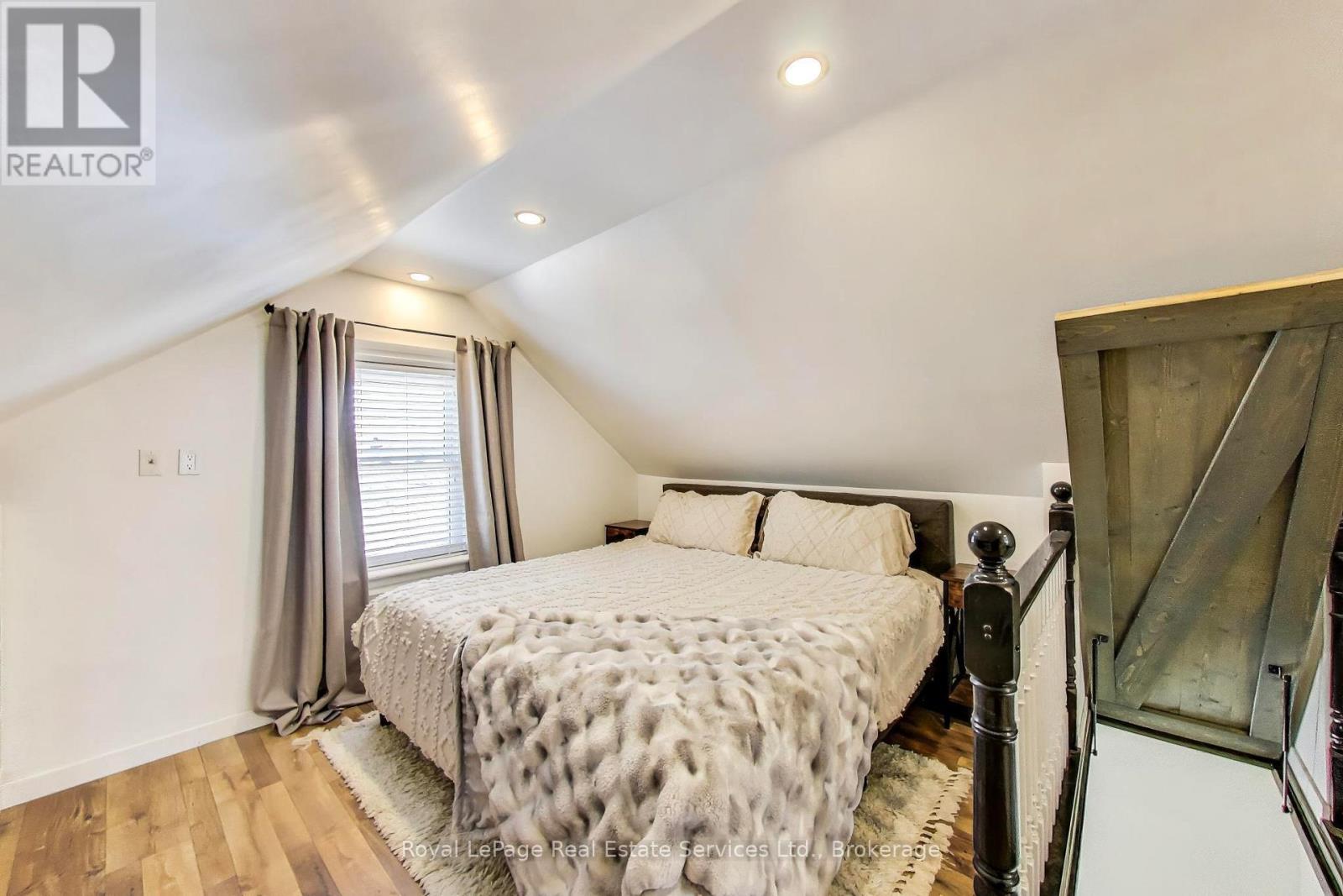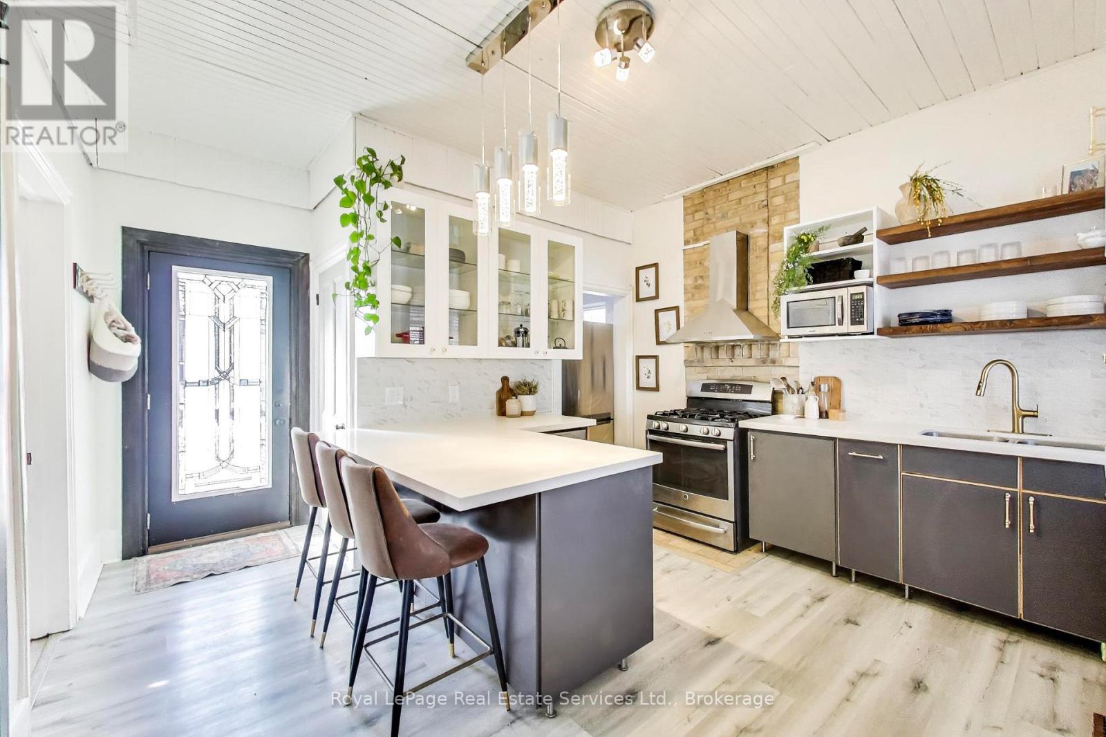 Victorian gem in West Galt. Easy walk to the Gaslight District, Downtown Galt, Foundry Tavern, Restaurants and University of Waterloo Architecture School. Renovated from top to bottom using a great mix of traditional and modern finishes. Living Room has classic bay window and crown molding plus a custom slate fireplace/tv cabinet. Separate Dining Area. Newly updated Kitchen with floating shelves, brick accent wall, custom backsplash, quartz counters, breakfast bar and stainless steel appliances. Walk in Pantry. Enclosed Front Porch with slate floor. Unique, loft style Primary Suite has space for a King Sized Bed, fireplace, built-in cabinets, huge walk-in closet and 3 pce ensuite bath. Bedroom # 2 has a new custom Murphy Bed for maximum flexibility. Large main Bathroom with freestanding tub and shower. Basement/cellar with Laundry Area and ample storage space. Appx 1,353 sq ft + basement. Large, newly landscaped property with 2 car parking. Incredible, fully fenced backyard has outdoor Kitchen/BBQ area, Deck, new Pergola, Patio and 3 Sheds. Appliances included. New high efficiency furnace and water heater 2021. Shingles replaced 2024. Must be seen! (id:64974)