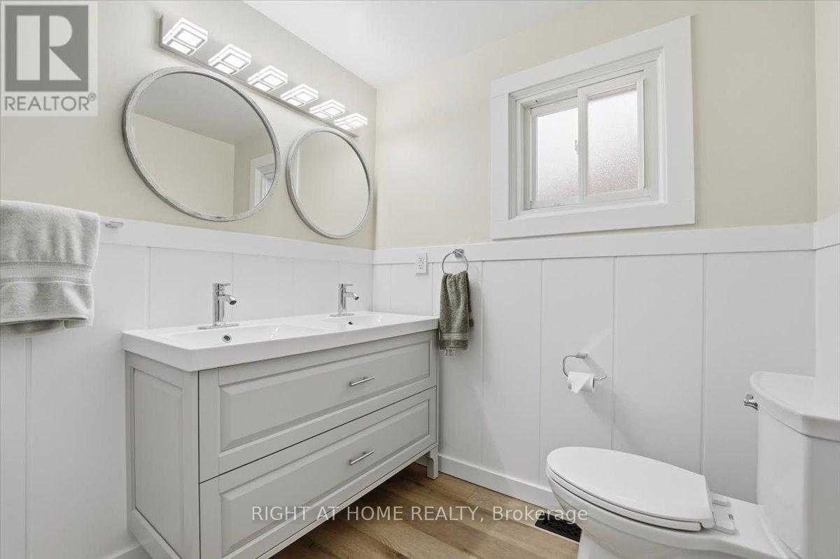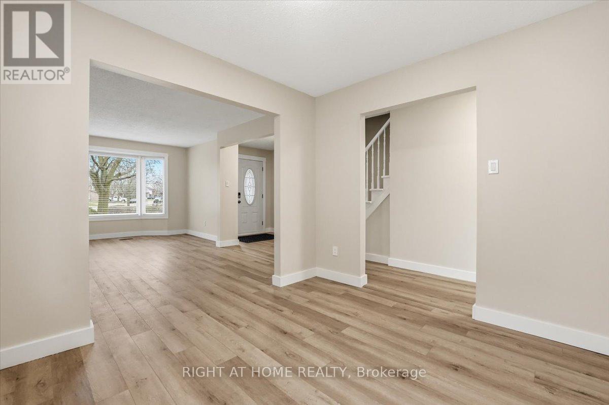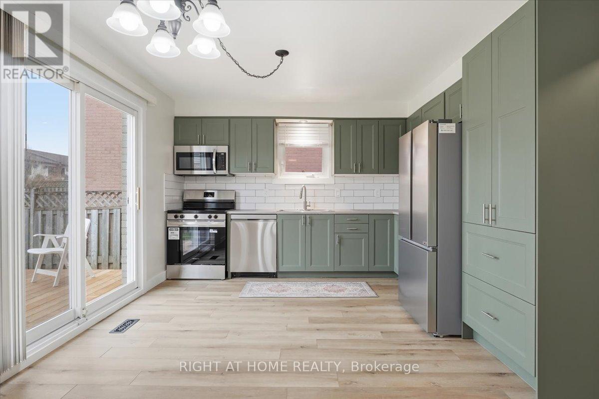 This completely renovated 4-bedroom family home is a true turn-key opportunity. Beautifully updated and move-in ready. Step inside to a bright and welcoming main floor. At the front of the home, you'll find a formal living room and a separate formal dining room, ideal for entertaining family and friends. Heading toward the back of the main floor, the spacious eat-in kitchen overlooks the generous backyard and features fresh sage green cabinetry, new counters, stainless steel appliances, and a stylish white subway tile backsplash. Just off the kitchen sits a comfortable fireplace room - a perfect spot to relax or keep an eye on the kids. A convenient powder room completes the main level. Upstairs, four generous bedrooms provide plenty of space for family and guests. The primary bedroom enjoys its own private 4-piece ensuite, while a second full 4-piece family bathroom serves the remaining three bedrooms. Recent updates include new flooring throughout, fresh neutral paint, modern light fixtures, fully renovated ensuite bathroom, and a brand new deck right off the kitchen. The backyard is fully fenced with room for play, and the clean, dry basement offers laundry facilities plus excellent storage potential. Located in a quiet, family-friendly Stoney Creek neighbourhood, you're only minutes to schools, parks, shopping, Confederation Go Station and easy access to the Red Hill and QEW. This is the one you've been waiting for. (id:64974)