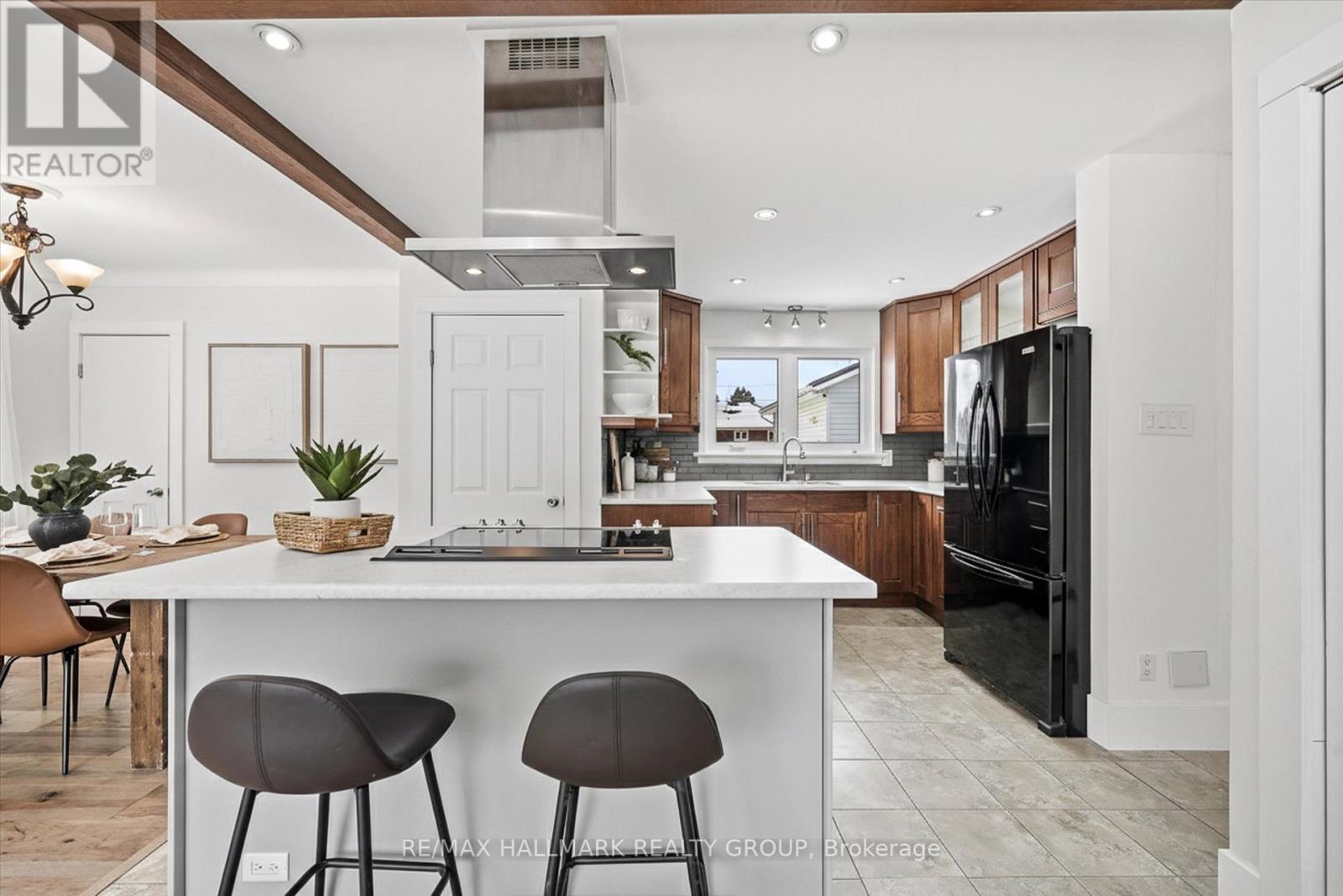 Welcome to this beautifully updated 2+2 bedroom, 2 full bathroom bungalow situated on a spacious corner lot in the desirable Cardinal Heights neighbourhood. As you walk into the home, you will notice the bright open-concept layout featuring engineered hardwood throughout the main floor, an updated kitchen with a stand-alone island and decorative wood beam, as well as a sun-filled living and dining room. The main level also offers 2 bedrooms and a stunning remodelled 5-piece bathroom with granite countertops, double sinks, soaker tub and glass shower. The lower level, with its separate entrance, functions perfectly as an in-law suite or income-generating unit. The lower area offers a cozy living space along with 2 bedrooms, a full 4-piece bathroom, and its own kitchen, providing excellent flexibility for multi-generational living or investment potential. This versatile property also features a 20'x 24' detached garage with a 10-ft-wide door, ideal for tradespeople or hobbyists. It is insulated and equipped with an electric heater, excellent lighting, a durable metal roof, and a 60-amp panel-making it perfect for a home-based business or for storing boats, tools, and recreational equipment. Conveniently located within walking distance to CSIS, National Research Council, La Cité collégiale, and the Blair O-Train station, this home offers unmatched accessibility to major employers, transit, and amenities. A rare opportunity in a prime location - don't miss your chance to make it yours! (id:64974)
