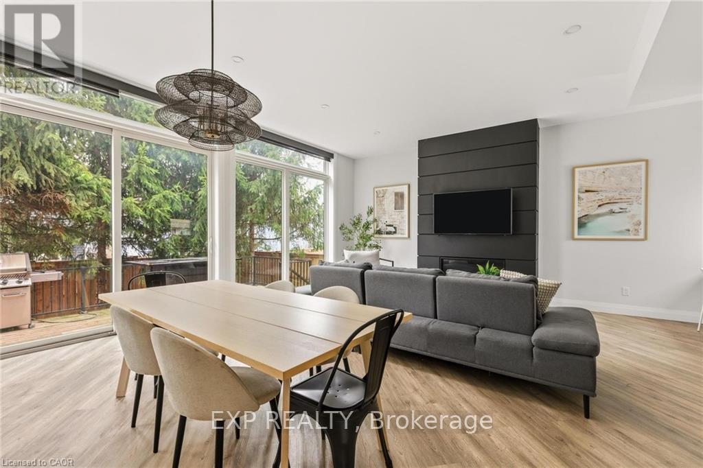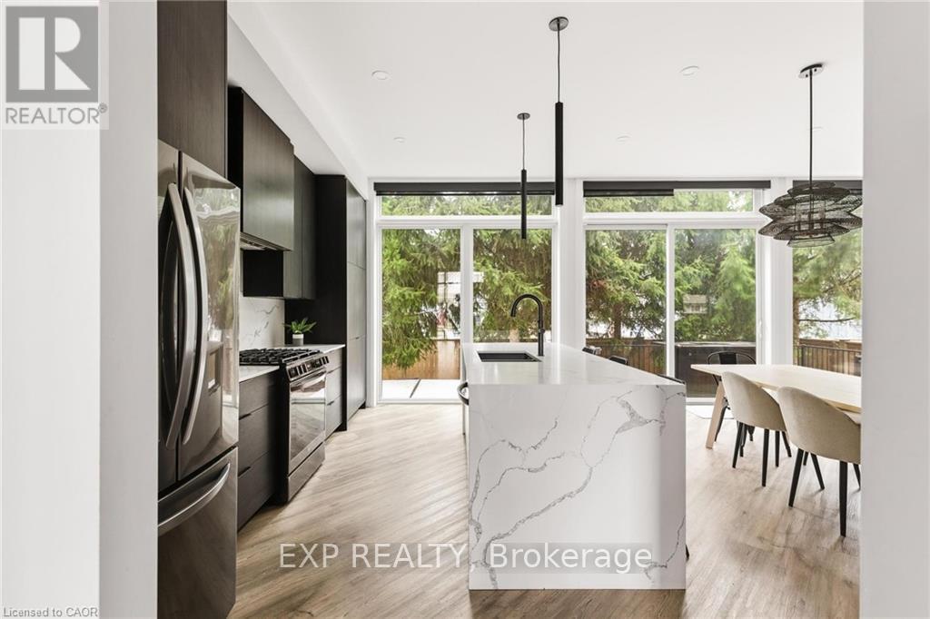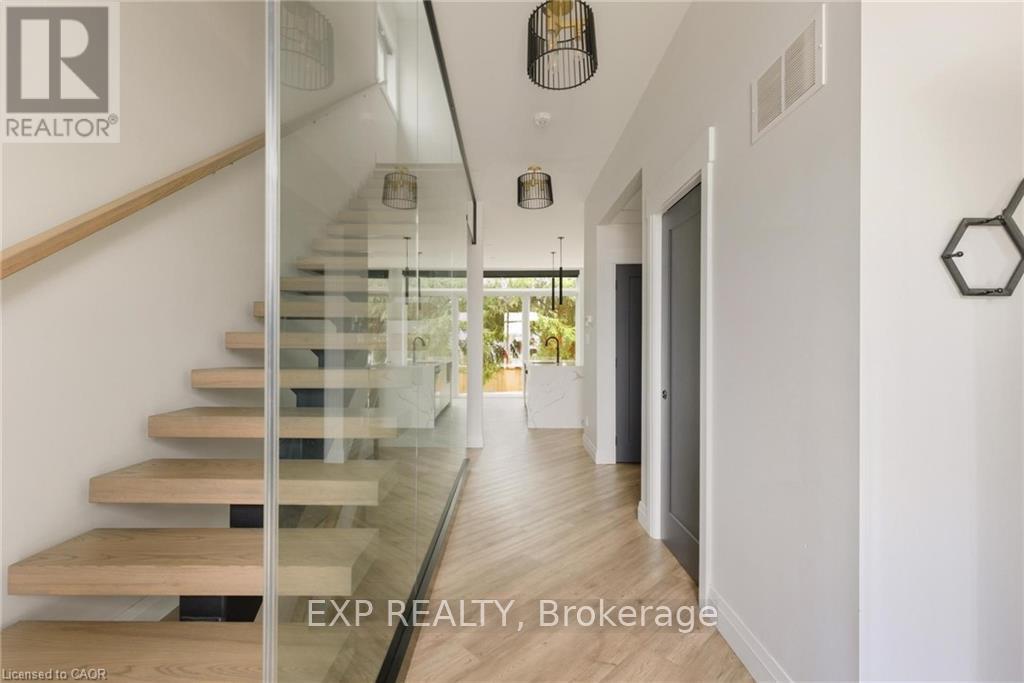 Welcome to 26 Huron Street, Grand Bend-a modern coastal luxury home offering 7 bedrooms, 5 bathrooms, and an unbeatable lifestyle just a one-minute walk to the beach, complete with water views from the upper balconies. Wrapped in contemporary elegance, this 2022 build greets you with an oversized foyer flooded with natural light, soaring 20-ft ceilings with a view of the catwalk above, and a striking floating hardwood staircase encased in glass, setting the tone for the refined style throughout. The main floor features a two-piece powder room, single-car garage ,and a beautifully designed open-concept living space highlighted by a chef's kitchen with waterfall marble-quartz counters, matching backsplash, gas stove, stainless steel LG appliances, undercabinet lighting and a hidden hood range. A gas fireplace, floor-to-ceiling windows with automated drapery, a bar/coffee nook with mini fridge, and a built-in desk create an atmosphere that is both luxurious and effortlessly comfortable. The fully fenced backyard extends the living space with a spacious deck, hot tub, and gas BBQ hookup-perfect for relaxing after a day by the water. The finished basement offers two bright bedrooms with egress windows and a three-piece bathroom. The second-floor features three bedrooms, convenient laundry, a three-piece bath, the serene primary suite is complete with floor-to-ceiling windows, a walk-in closet, and a spa-inspired ensuite with dual sinks, stand-up shower, and freestanding tub. The top-level loft adds even more versatility with two additional bedrooms, a cozy living area, a three-piece bath, a window that opens into a balcony, plus an additional balcony with a view of the lake. Thoughtfully designed and bathed in natural light, this home blends luxury, comfort, and location-just steps from the beach and moments from Grand Bend's vibrant amenities. (id:64974)