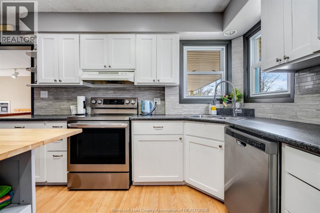 This solid brick bungalow offers a functional and versatile layout, perfect for families or those seeking additional living space. Featuring 3+2 bedrooms and 2 full bathrooms, this home delivers a comfortable blend of space, flexibility, and everyday functionality. The main level includes a bright open-concept kitchen and dining area, along with a welcoming living room complete with a cozy wood burning fireplace - ideal for relaxing evenings at home. A fully finished basement expands your living space even further, offering additional bedrooms and flexible areas perfect for guests, a home office, or multigenerational living. Situated on a desirable corner lot, the property features a fully fenced backyard with a patio and storage shed. Additional highlights include a concrete interlocking double-width driveway, single attached garage, and a location close to all amenities - just steps away from Leamington Hospital - offering both convenience and everyday practicality. (id:64974)