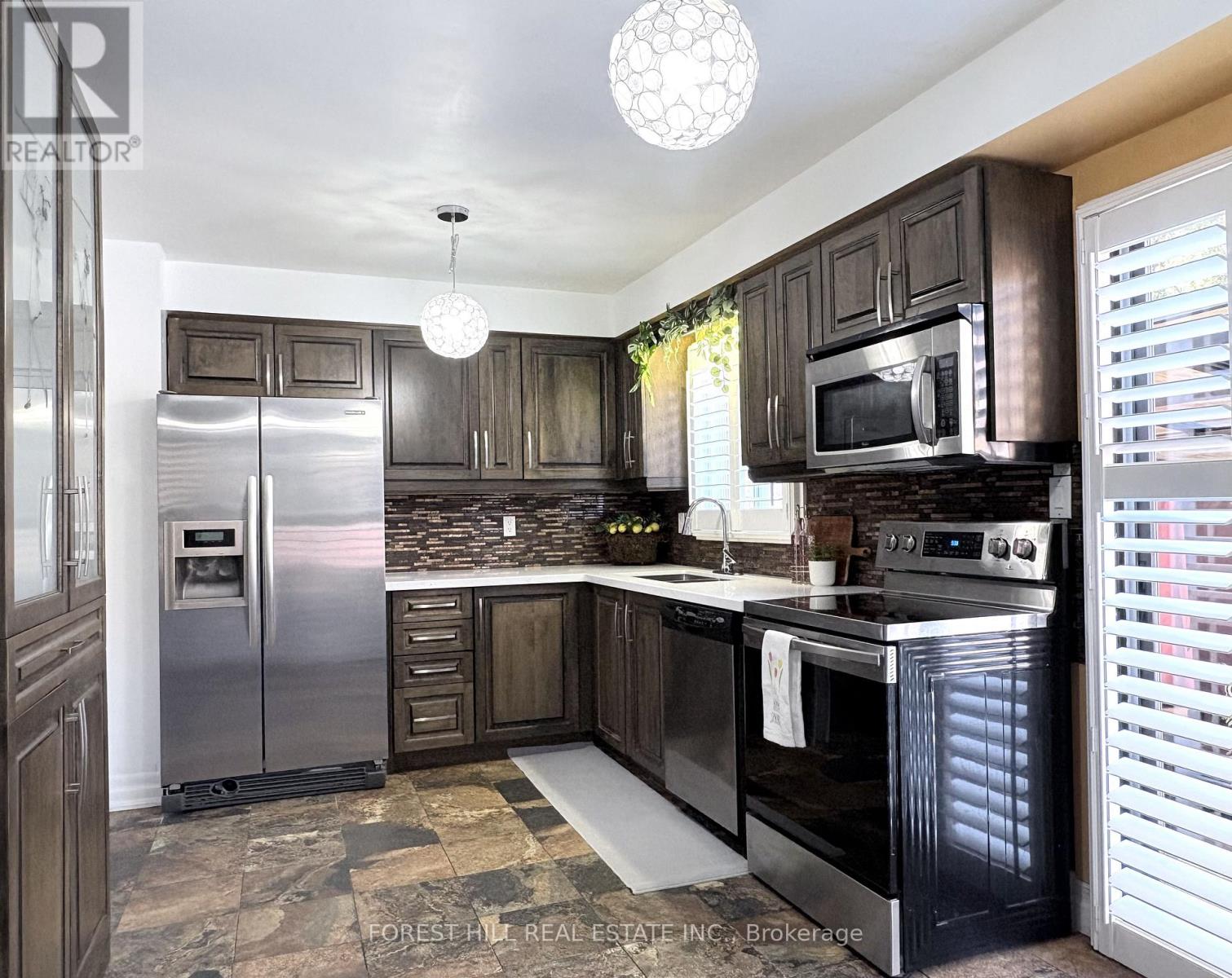 Welcome to this beautifully maintained 3-bedroom, 2-bathroom home located on a quiet court in the highly sought-after Glen Shields community of Vaughan. Perfect for first-time buyers or growing families, this home offers comfort, functionality, and a wonderful family-friendly neighbourhood.Step inside to a bright and inviting layout featuring large windows that fill the home with natural light, hardwood floors, pot lights, and California shutters throughout. The spacious eat-in kitchen features new quartz stone countertop, new double sink+faucet, with modern tile backsplash, and plenty of room for family meals and gatherings. From the kitchen, walk out to a gazebo covered concrete patio area-perfect for summer barbecues, entertaining, or simply relaxing outdoors. Steps away is Glen Shields Park, featuring a splash pad, multiple playgrounds, baseball diamond, tennis courts, and scenic trails perfect for walking, running, or biking. Close proximity to excellent schools, places of worship, shopping, restaurants, gyms, community centre, public transportation, and easy access to major highways. A wonderful opportunity to settle into a well established neighbourhood and create lasting memories in a place you'll be proud to call home. ** This is a linked property.** (id:64974)