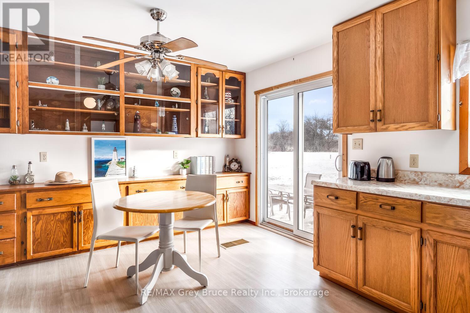 ONE ACRE property in the direct Tobermory area with well-maintained 3 bedroom, 2 bathroom home or cottage and attached garage! It has seen many recent updates including newer flooring throughout, refreshed bathrooms, freshly painted throughout, a newer hot water tank, roof reshingled in 2019, and more! The open-concept large kitchen, dining, and living area is bright and functional with patio walkout to the backyard. The primary bedroom includes a private 4-piece ensuite and overlooks the large backyard. All bedrooms are generously sized with full closests. All furnishings are included! A great opportunity for a full-time home, cottage, or turn-key rental! Quiet neighbourhood location with quick access to Tobermory, Bruce Peninsula National Park, Singing Sands Beach, and all local attractions as well as amenities! (id:64974)