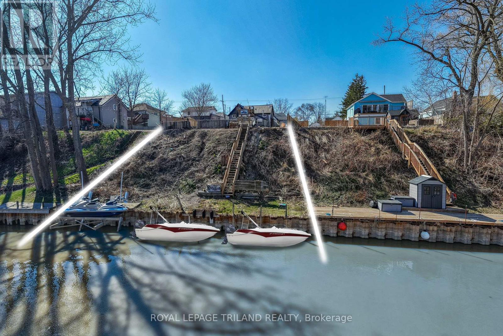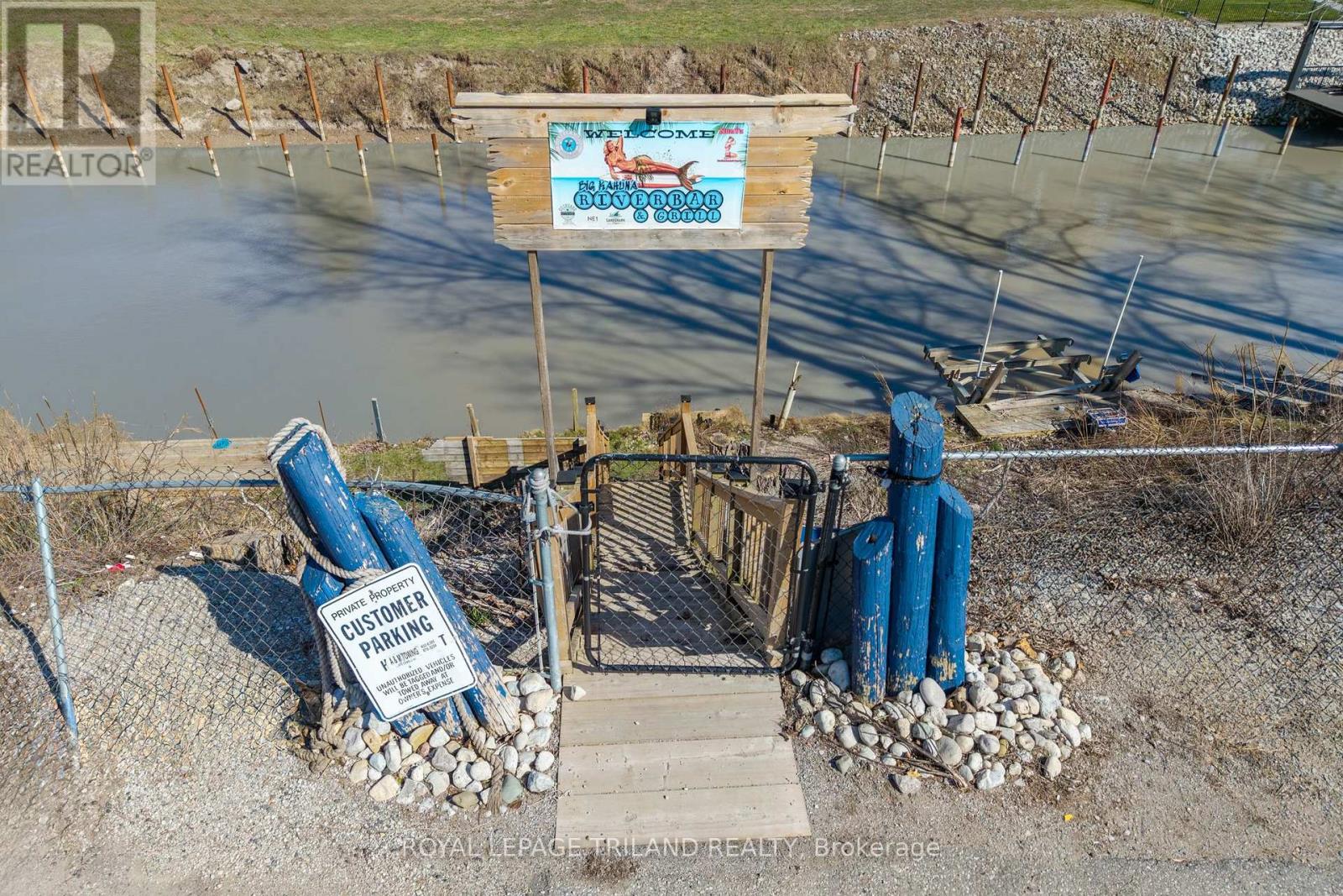 RARE RIVERFRONT COMMERCIAL OPPORTUNITY IN THE HEART OF GRAND BEND | 68.4 FT OF BOAT PRIVATE DOCKAGE | RESTAURANT/RETAIL SPACE + RESIDENTIAL APARTMENT! Welcome to 26 Ontario Street South, a truly exceptional mixed-use property in one of Ontario's fastest growing year round beach destinations. Perfectly positioned just steps from the beach with approximately 68+ feet of private river frontage and boat docking, this is your chance to establish-or expand-your dream business in an iconic, high-traffic location. The main level offers approximately 620 sq ft of restaurant / bar / retail space, previously licensed for 40 patrons, complete with men's and women's washrooms and a commercial kitchen (equipment included AS-IS). The kitchen was updated in 2018, featuring a NEW walk-in cooler and a new 5.5-ton A/C & heat pump, with forced-air gas heating on the restaurant level. There's also a partially completed outdoor patio, plus additional exterior space presenting an untapped opportunity for future expansion and enhanced patio licensing. Above the commercial space is a self-contained residential apartment or office, with its own private entrance, full residential kitchen, 3-piece bathroom, and an outstanding 21' x 11' sun deck overlooking the river. This would be an inspiring place to live, work, or host & could offer some premium AirBnB / short term rental income. The upper unit is heated with a newer A/C & heat pump, & the 360 virtual tour will show you the apartment (for restaurant, just refer to photos). Whether you envision a bar, restaurant, café, retail boutique, or a live-work waterfront business, this established location offers visibility, lifestyle appeal, and long-term upside in a community that continues to thrive beyond the summer months. With on site parking + enough dockage for 2 boats & a jet ski + the residential unit, this site can earn! PROPERTY IS BEING SOLD AS-IS / WHERE-IS: Inquire with your Realtor for further details and viewing opportunities. (id:64974)